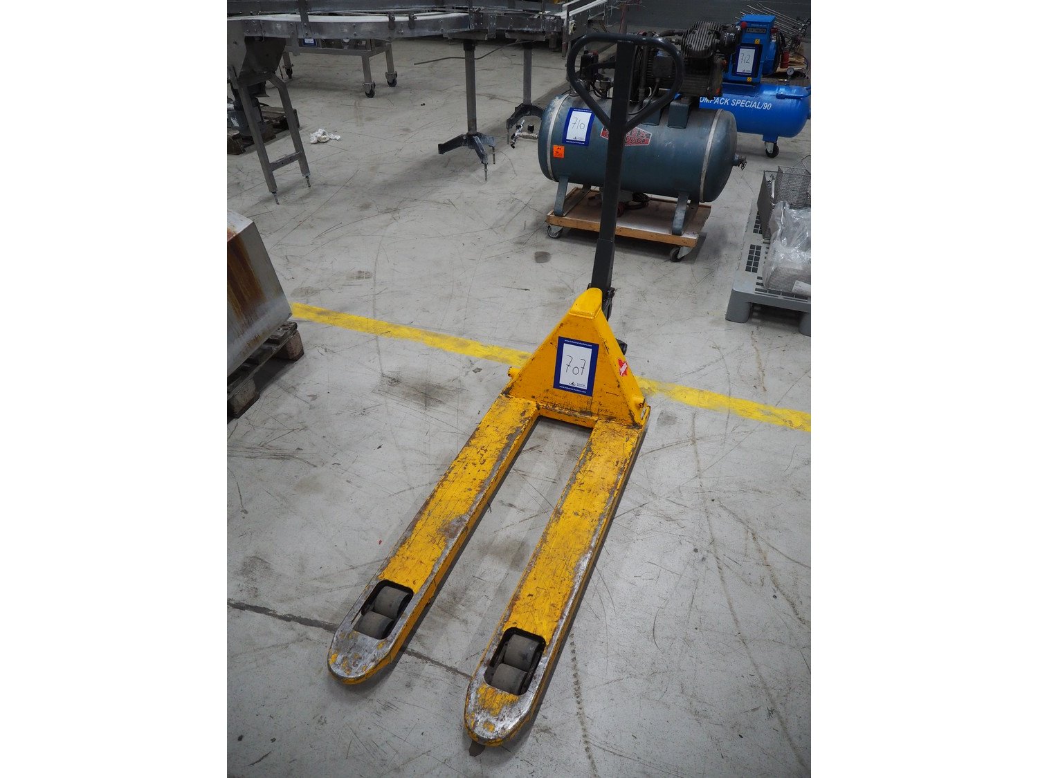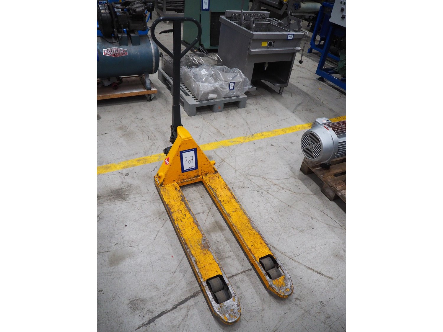 Jungheinrich steel pallet lifter, type: HPT-A20, serial number: 763921006/0058, year of construction: 2015, capacity: 2000 kg, fork length: 1150 mm, total dimensions: 1550 mm x 520 mm x 1350 mm.