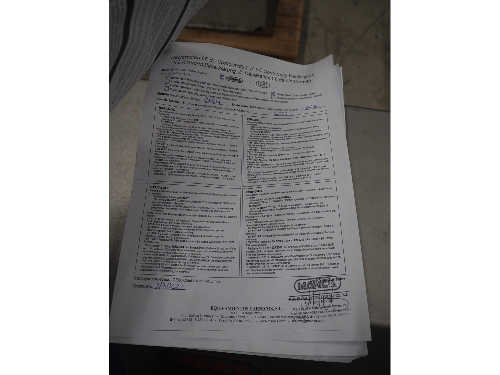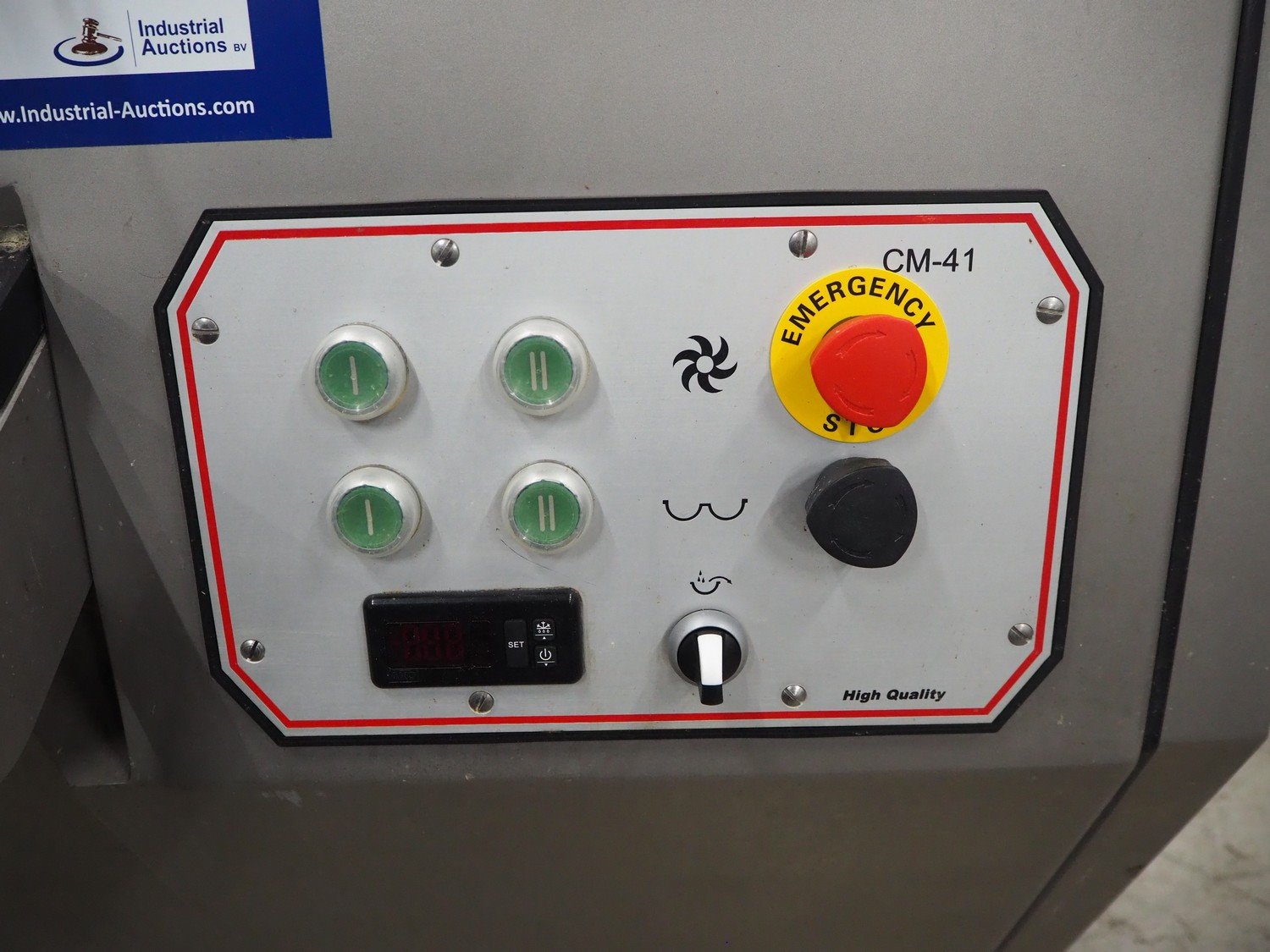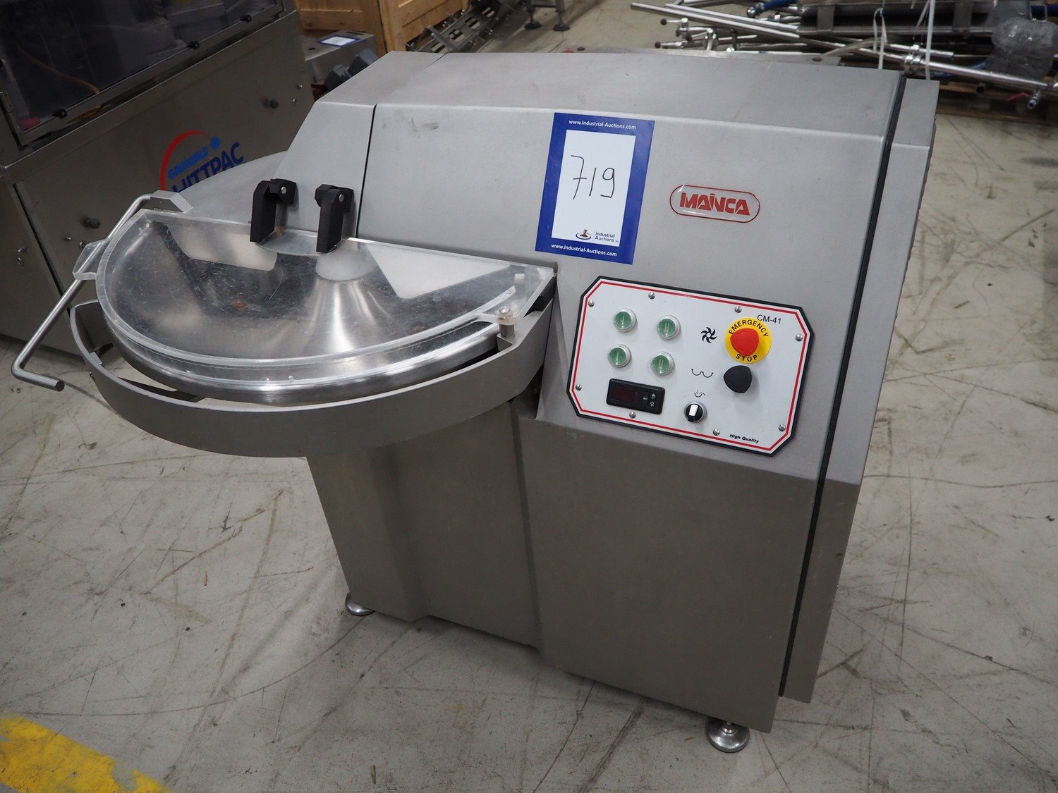 Mainca cutter, model: CM-41, serial number: CM41223846, year of construction: 2022, 400 V, 3 Ph, 50 Hz, 19 A, 8.6 kW, s/s bowl, volume bowl: 41 liter, s/s knives, dimensions: 1280 mm x 840 mm x 1100 mm.