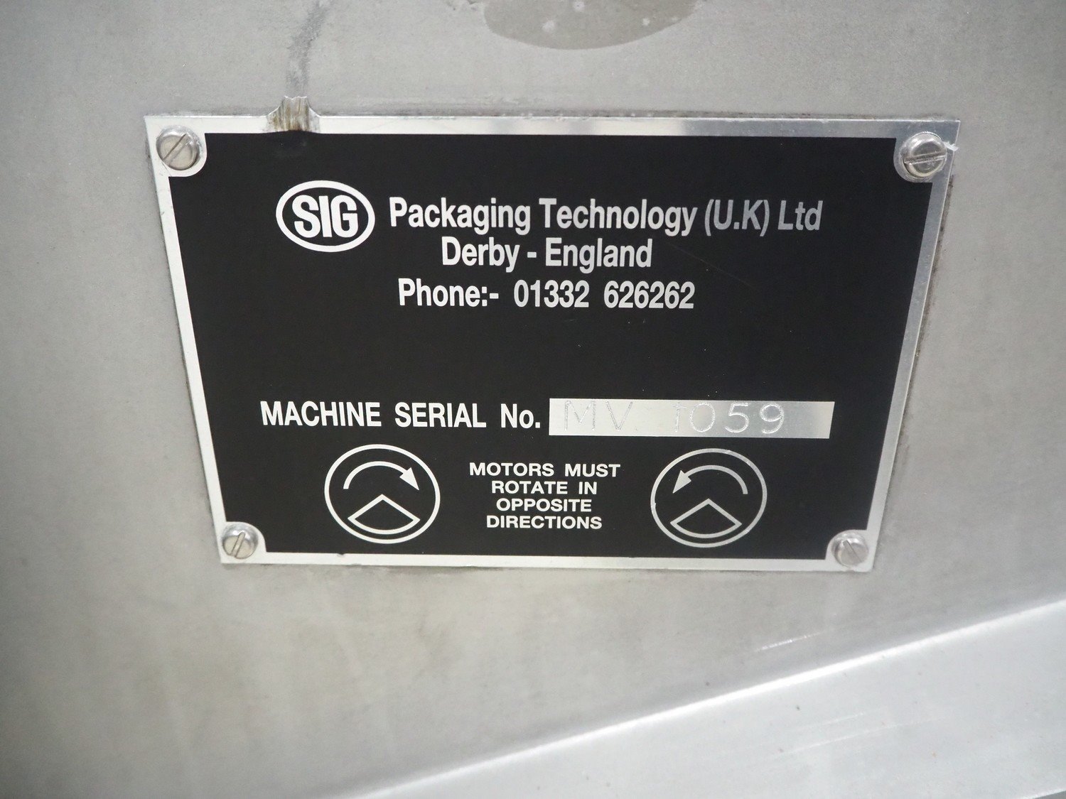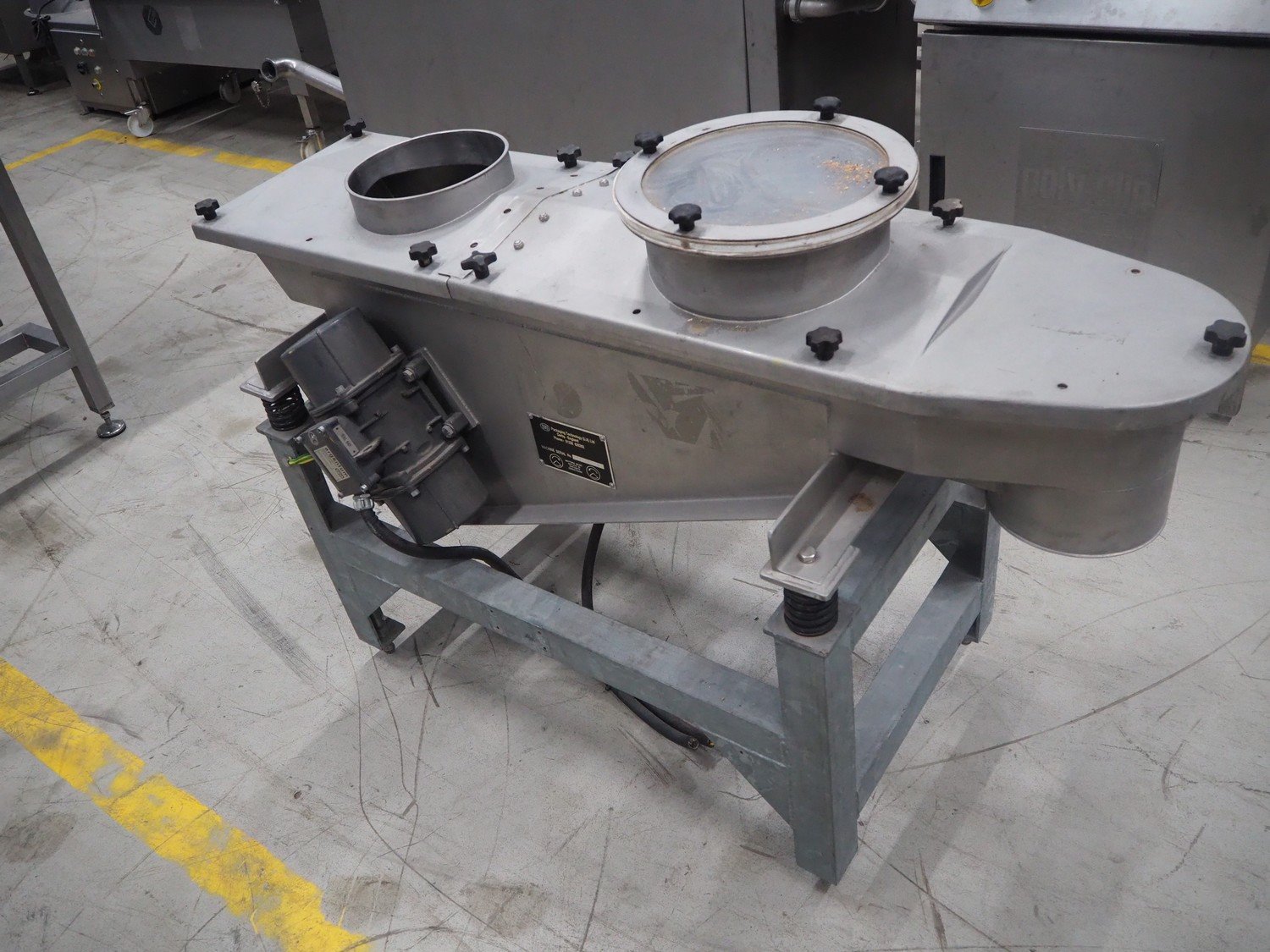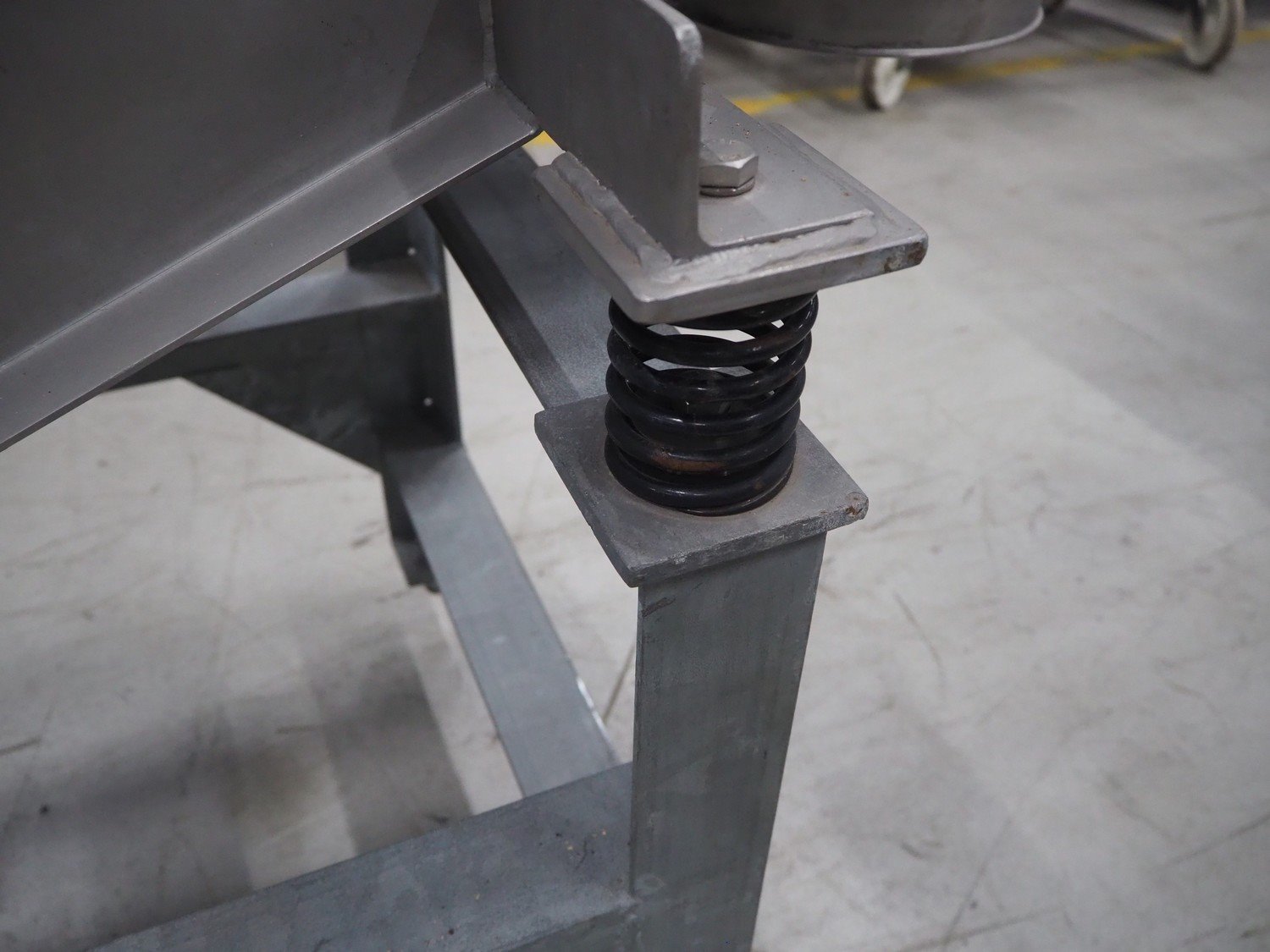 SIG Packaging Technology s/s vibrating gutter, serial number: MV 1059, gutter width: 300 mm, total dimensions: 1600 mm x 800 mm x 950 mm.