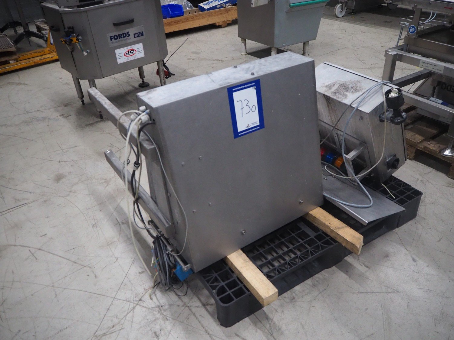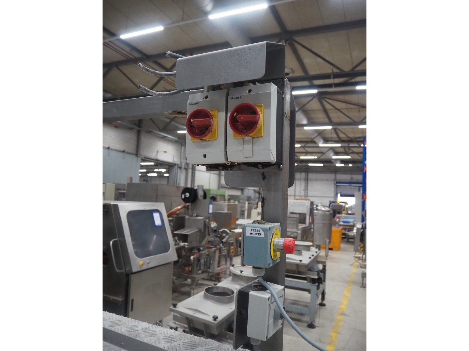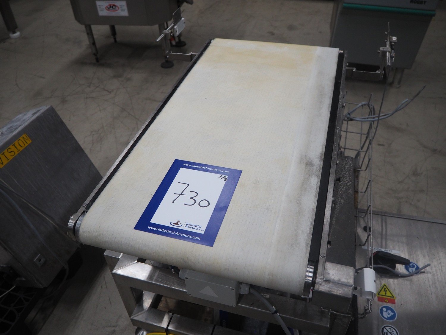Mettler-Toledo Garvens GmbH checkweigher with scanner, type: C 2351, fabrication number: 1456891930010, year of construction: 2023, 230 V, 1 Ph, 50-60 Hz, 4.3 A, temperature range: 0-40 °C, weighing range: 0-15 kg, plastic belt, belt width: 450 mm, total dimensions: 850 mm x 700 mm x 1700 mm. Screen broken, already dismantled.