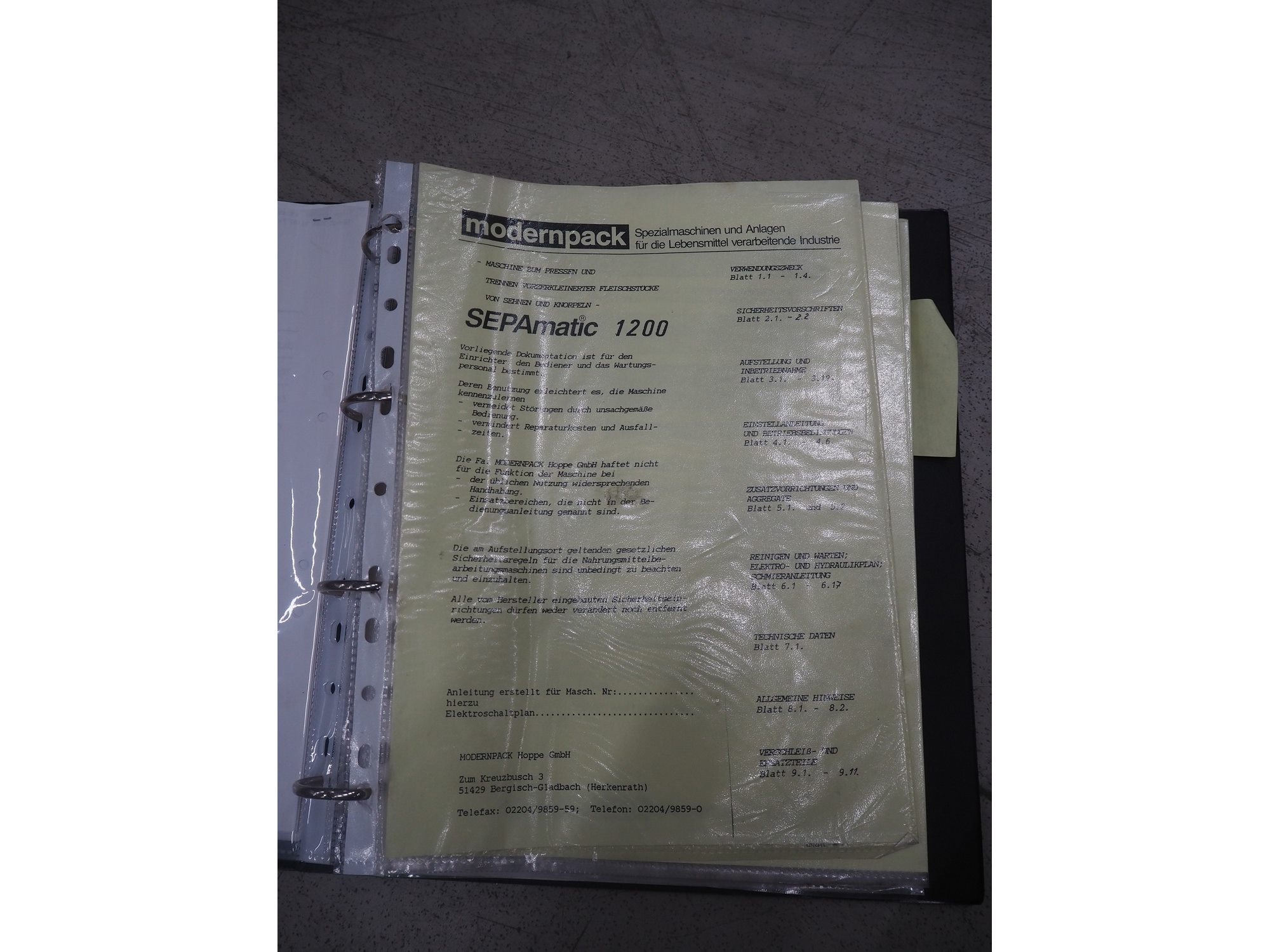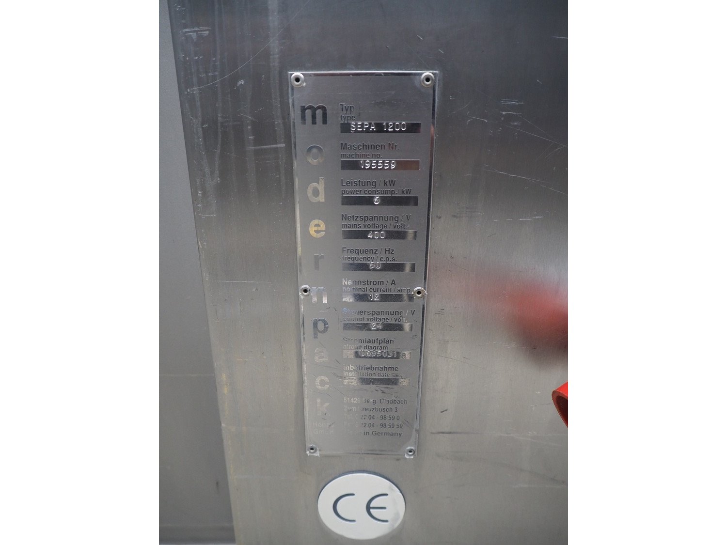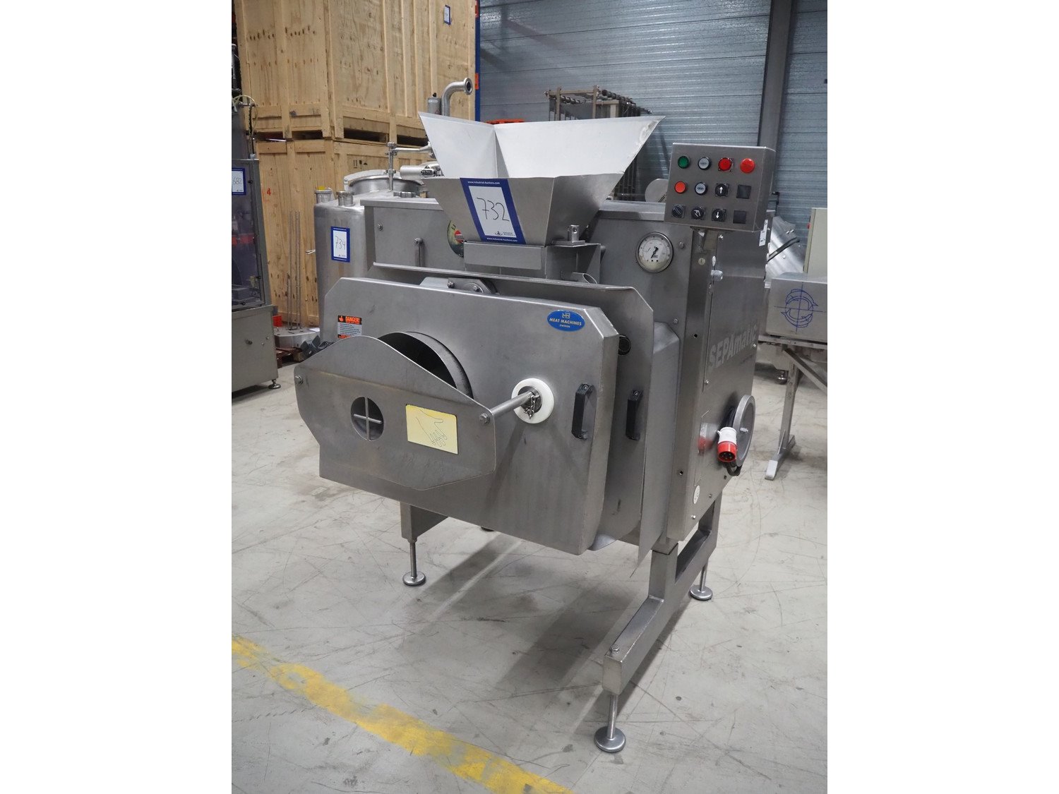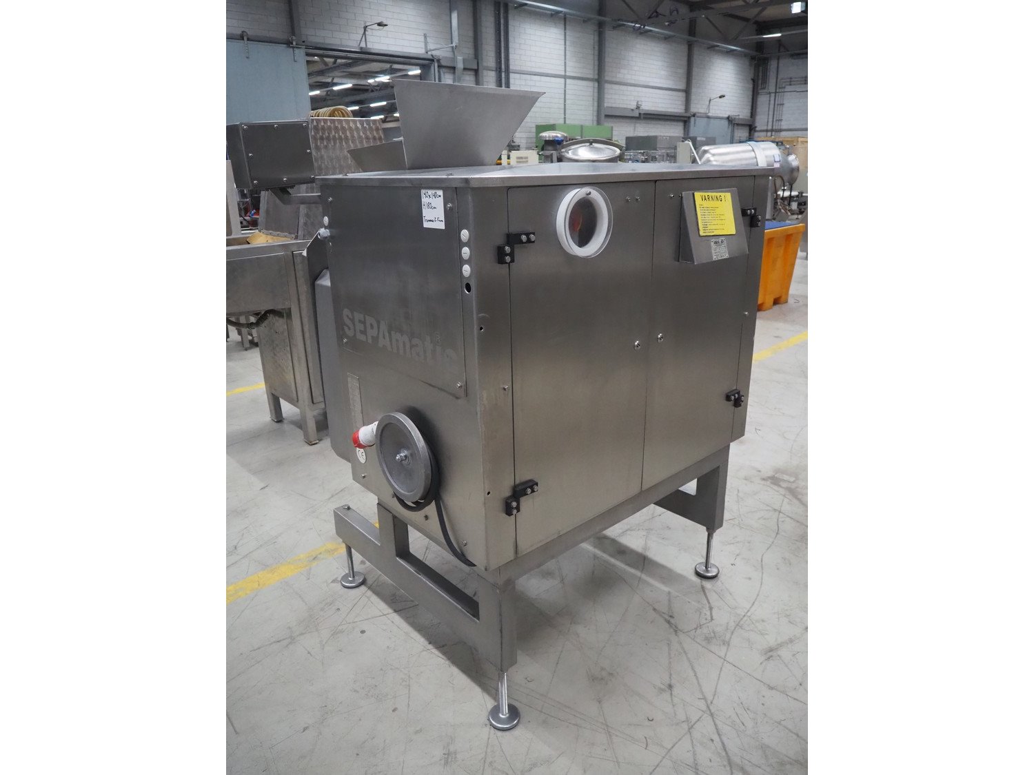 Sepamatic separator, type: SEPA 1200, machine number: 195559, 400 V, 50 Hz, 6 kW, diameter drum: 300 mm, diameter perforations: 2 mm, total dimensions: 1300 mm x 1170 mm x 1800 mm.