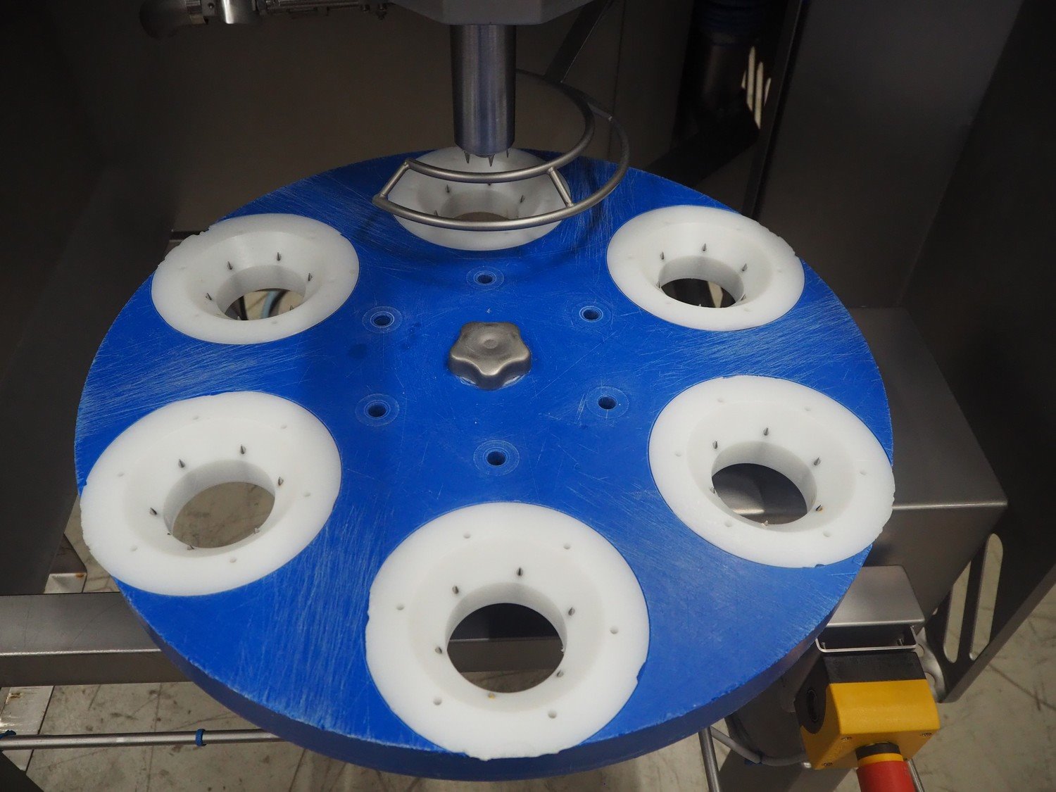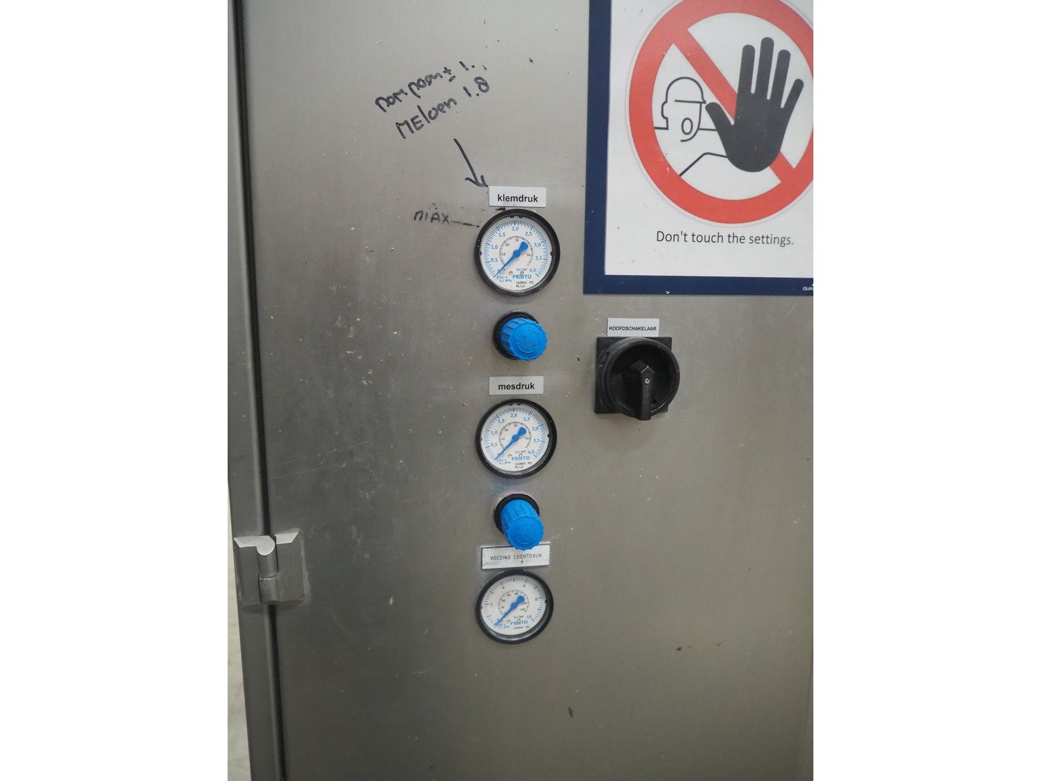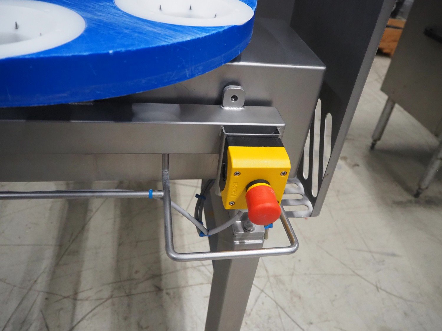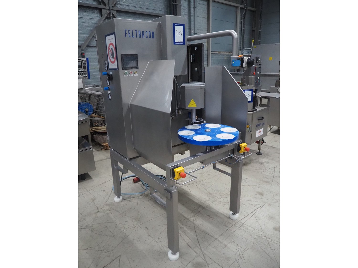 Feltracon melon peeler for 6 melons, type: 61M, number: 3615-61M1, year of construction: 2009, 230/400 V, 0.6 kW, diameter each station: 105 mm, total dimensions: 1450 mm x 980 mm x 2050 mm.