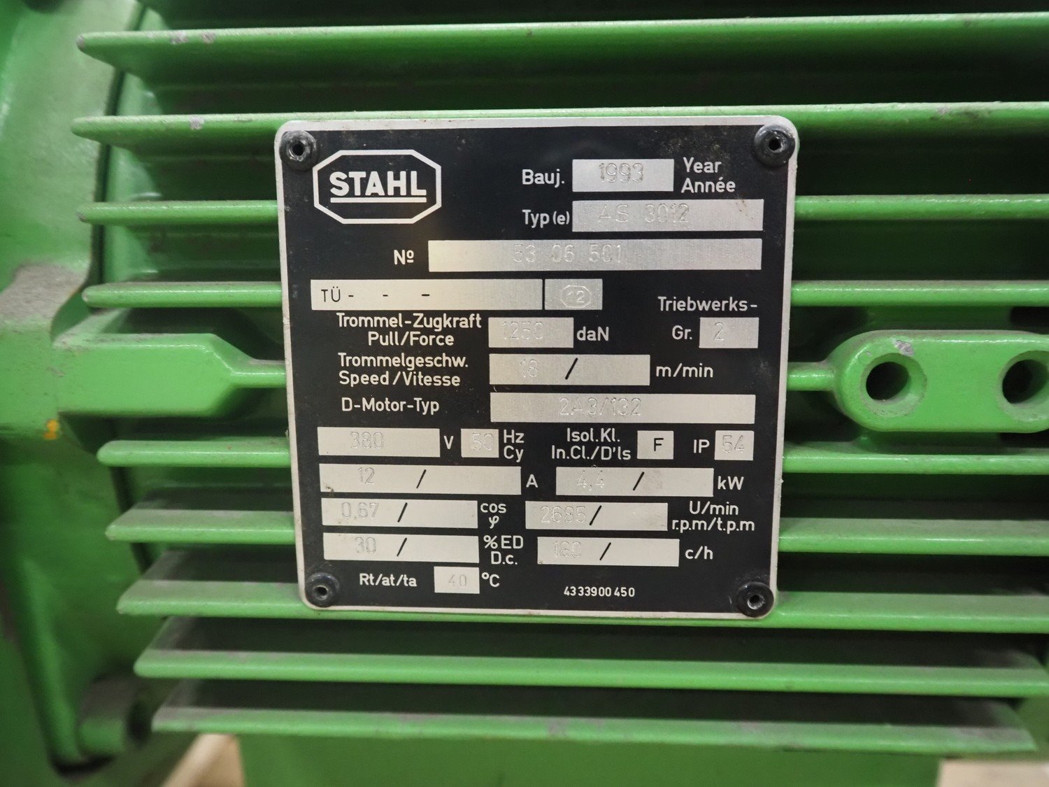 Stahl hoist, type: AS 3012, number: 53 06 501, year of construction: 1993, capacity: 5000 kg, dimensions: 1200 mm x 750 mm x 335 mm.