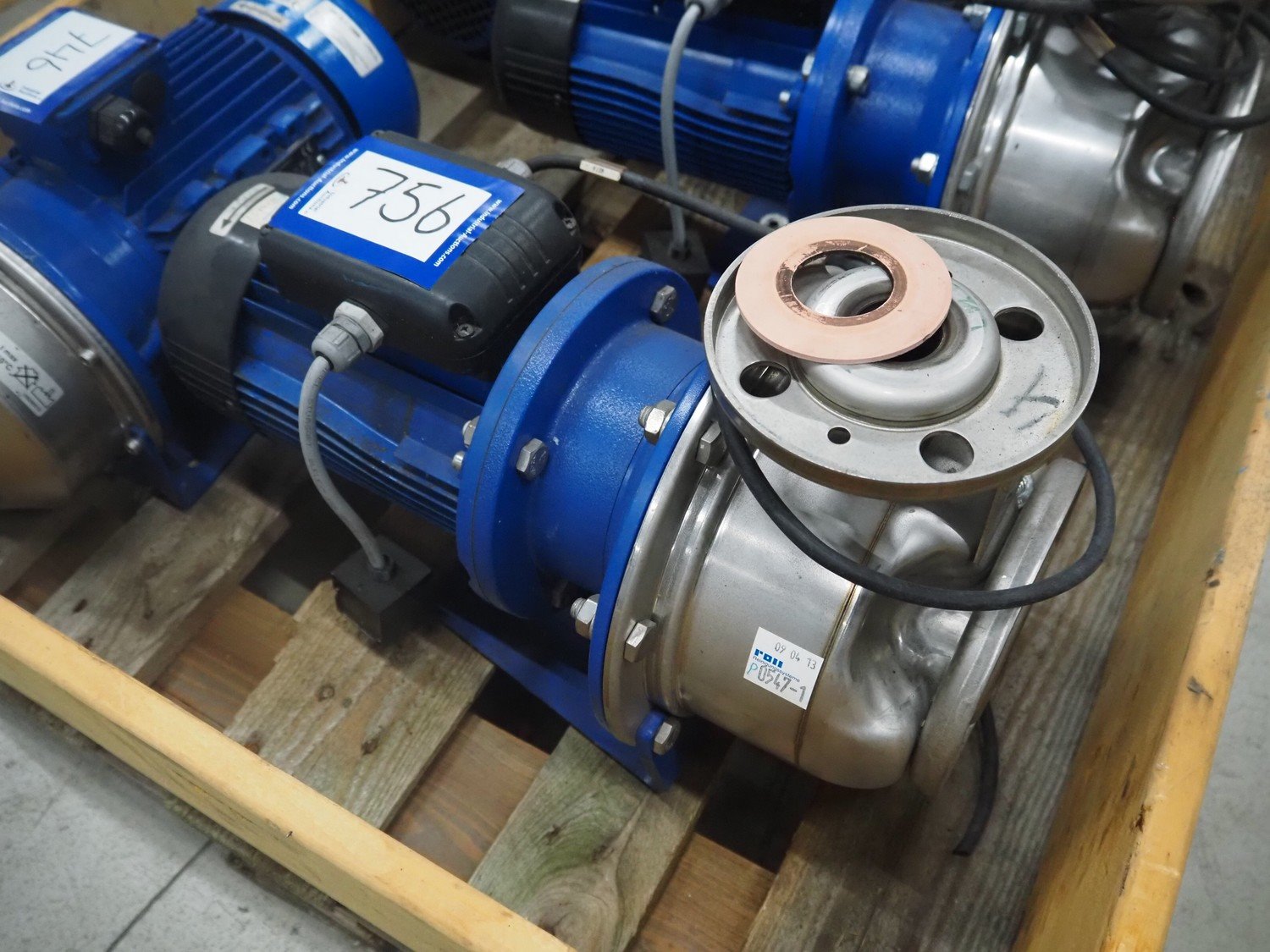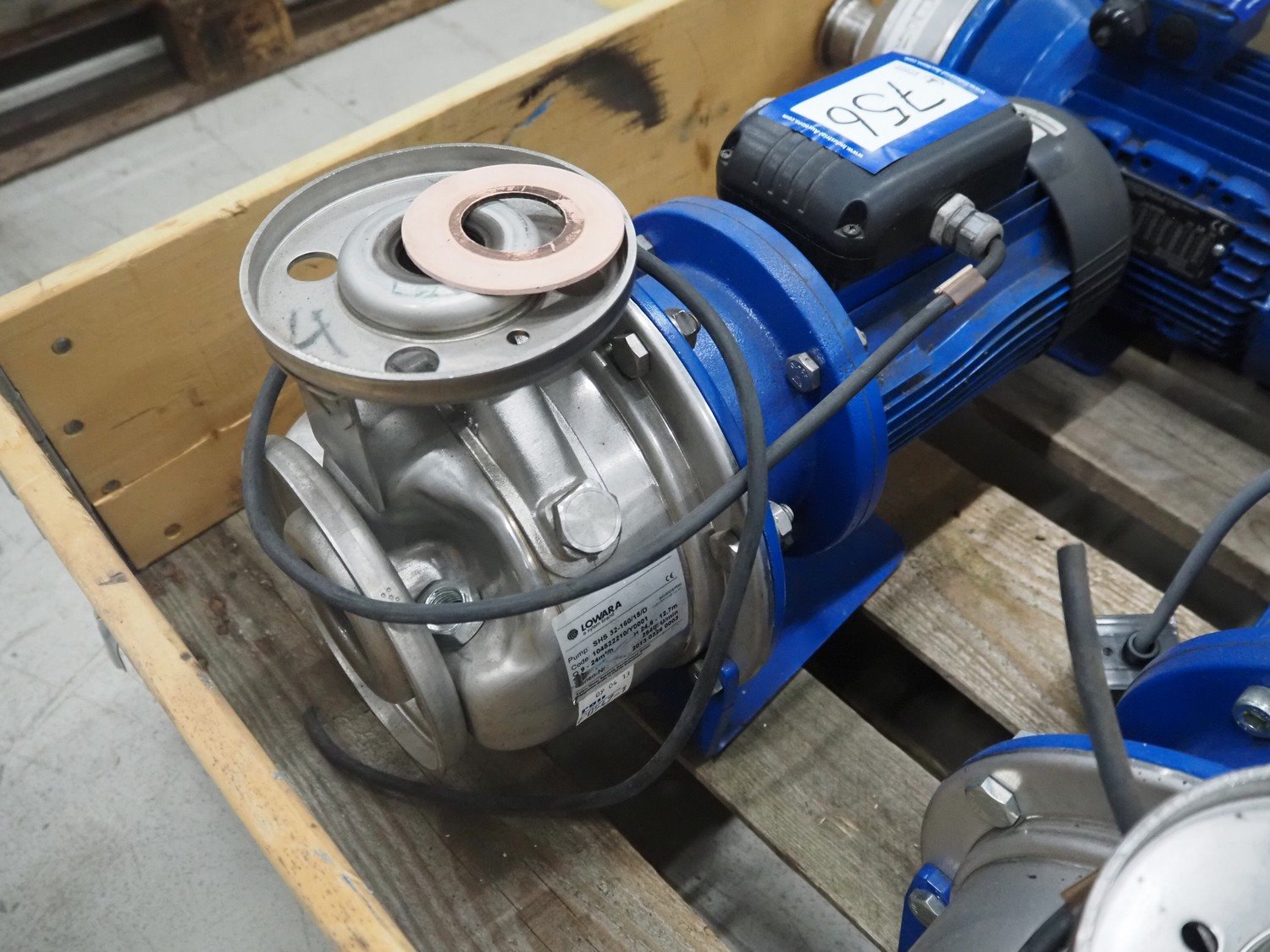 Lowara centrifugal pump, type: SHS 32-160/15/D, serial number: 2013 0326 0003, capacity: 9-24 m³ per hour, dimensions: 490 mm x 250 mm x 300 mm.