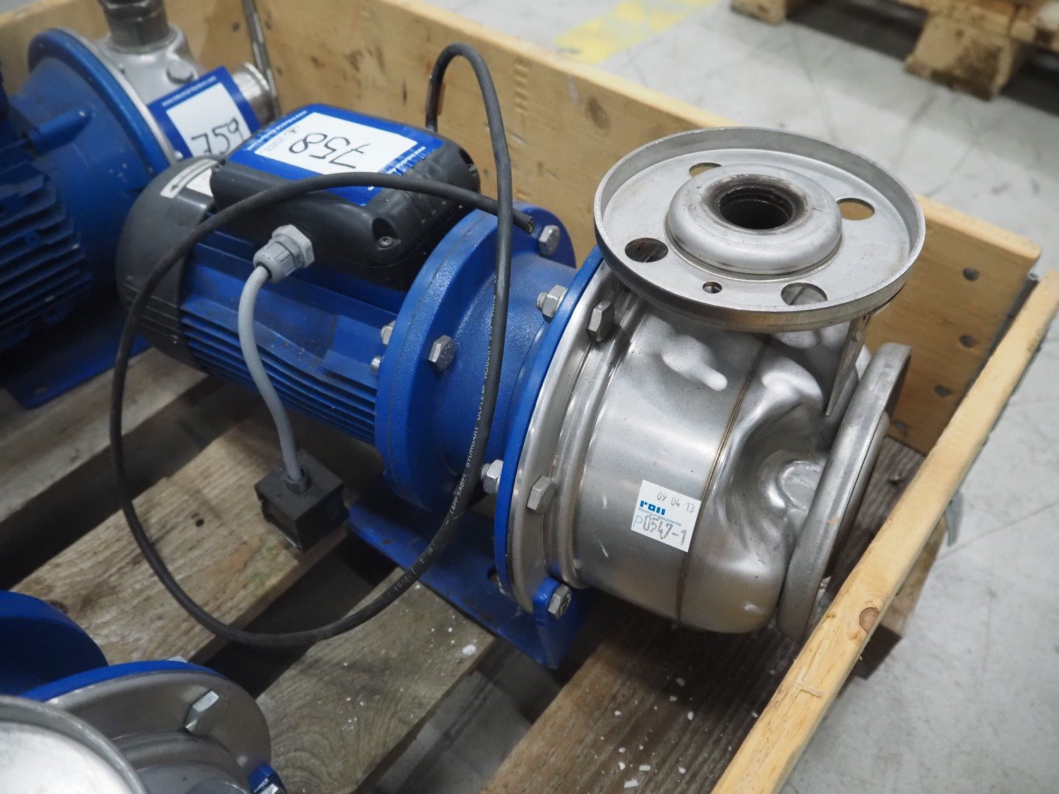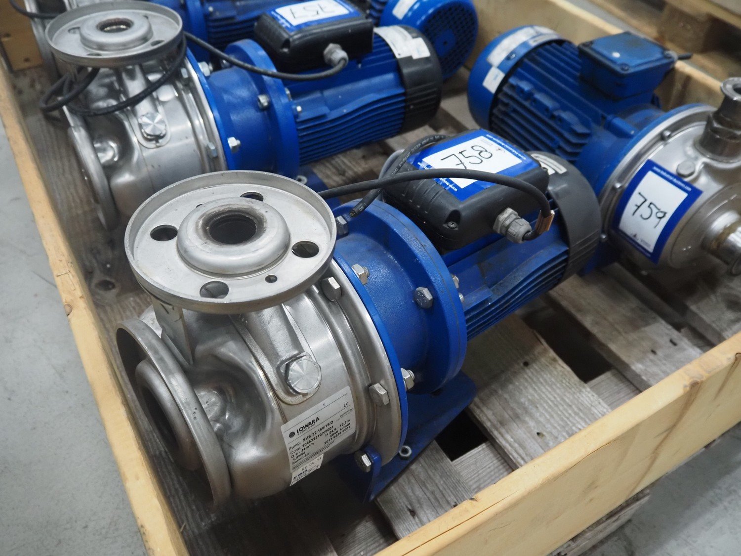 Lowara centrifugal pump, type: SHS 32-160/15/D, serial number: 2013 0326 0001, capacity: 9-24 m³ per hour, dimensions: 490 mm x 250 mm x 300 mm.