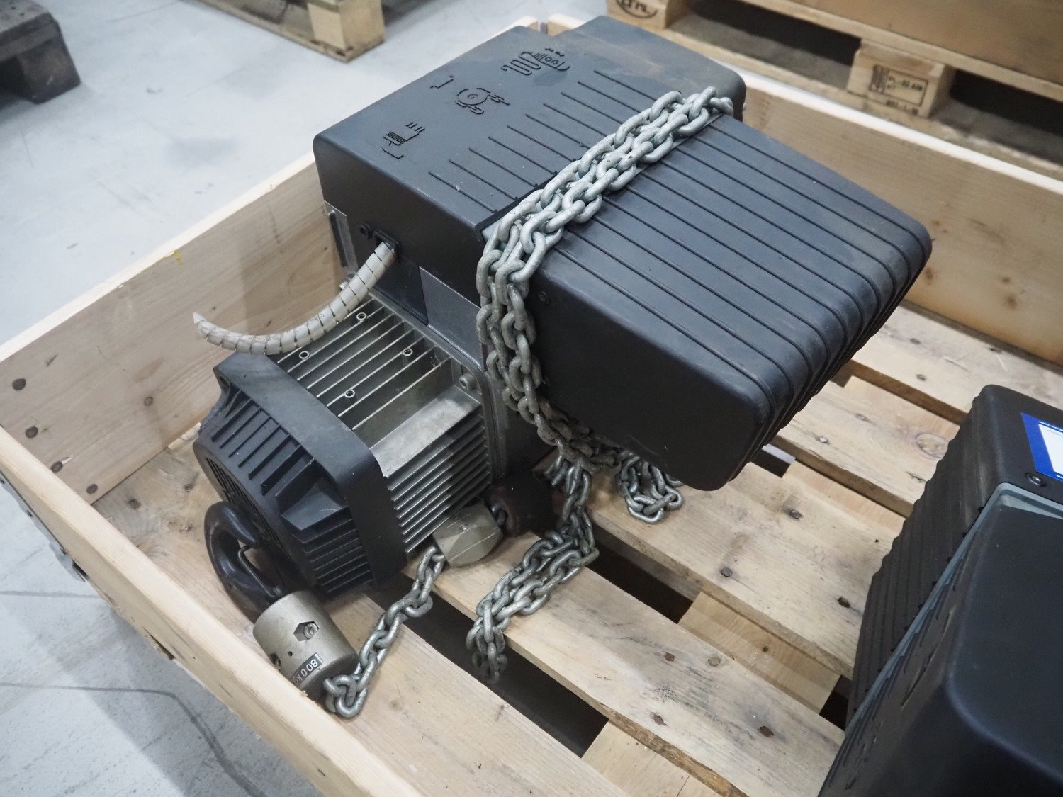Demag hoist, capacity: 800 kg, dimensions: 570 mm x 550 mm x 340 mm.