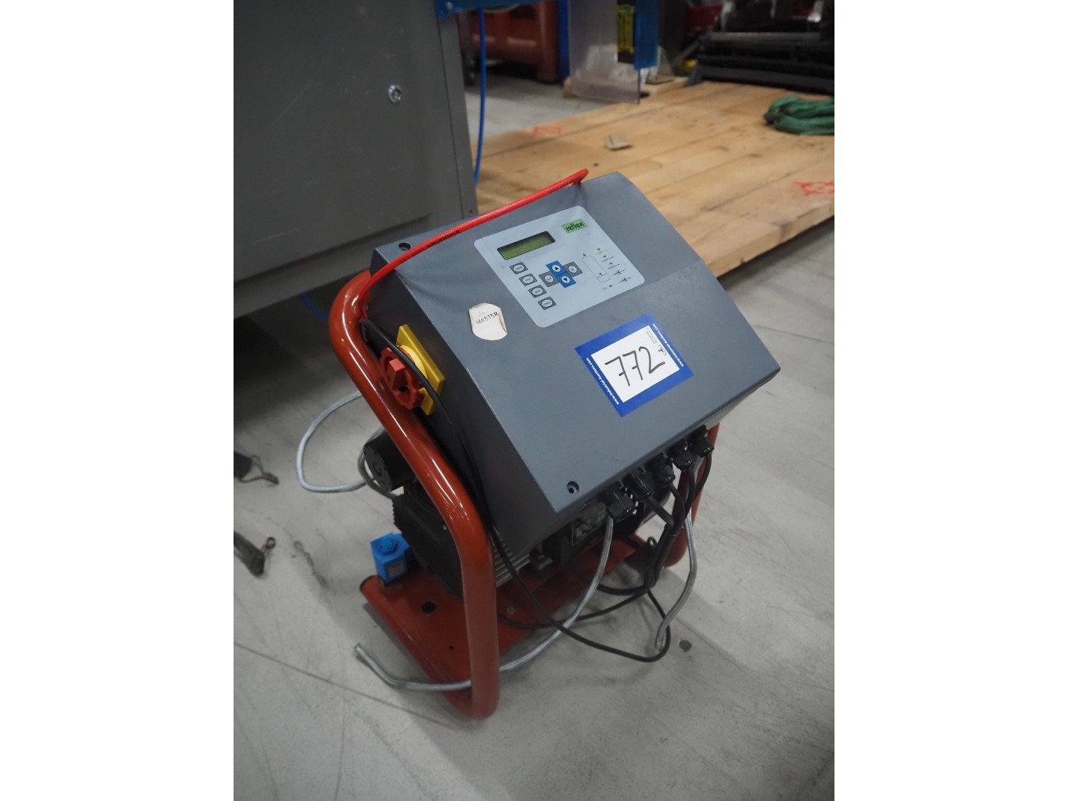 Reflex Winkelmann GmbH control unit, type: GSM 150, number: 202 153 0000, year of construction: 2008, 400 V, 50 Hz, 3.1 A, 1.1 kW, dimensions: 410 mm x 390 mm x 610 mm.
