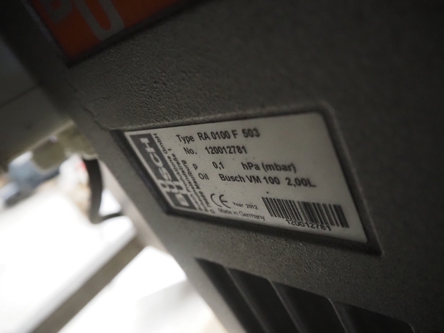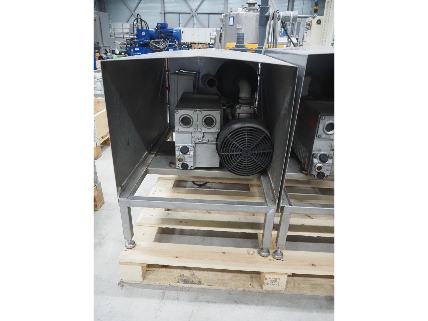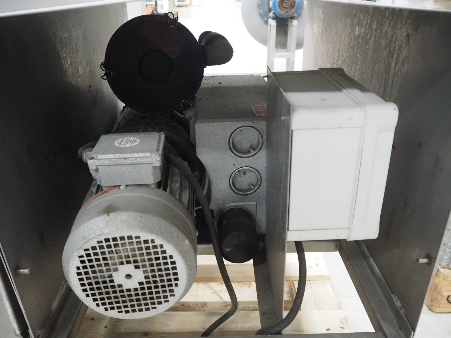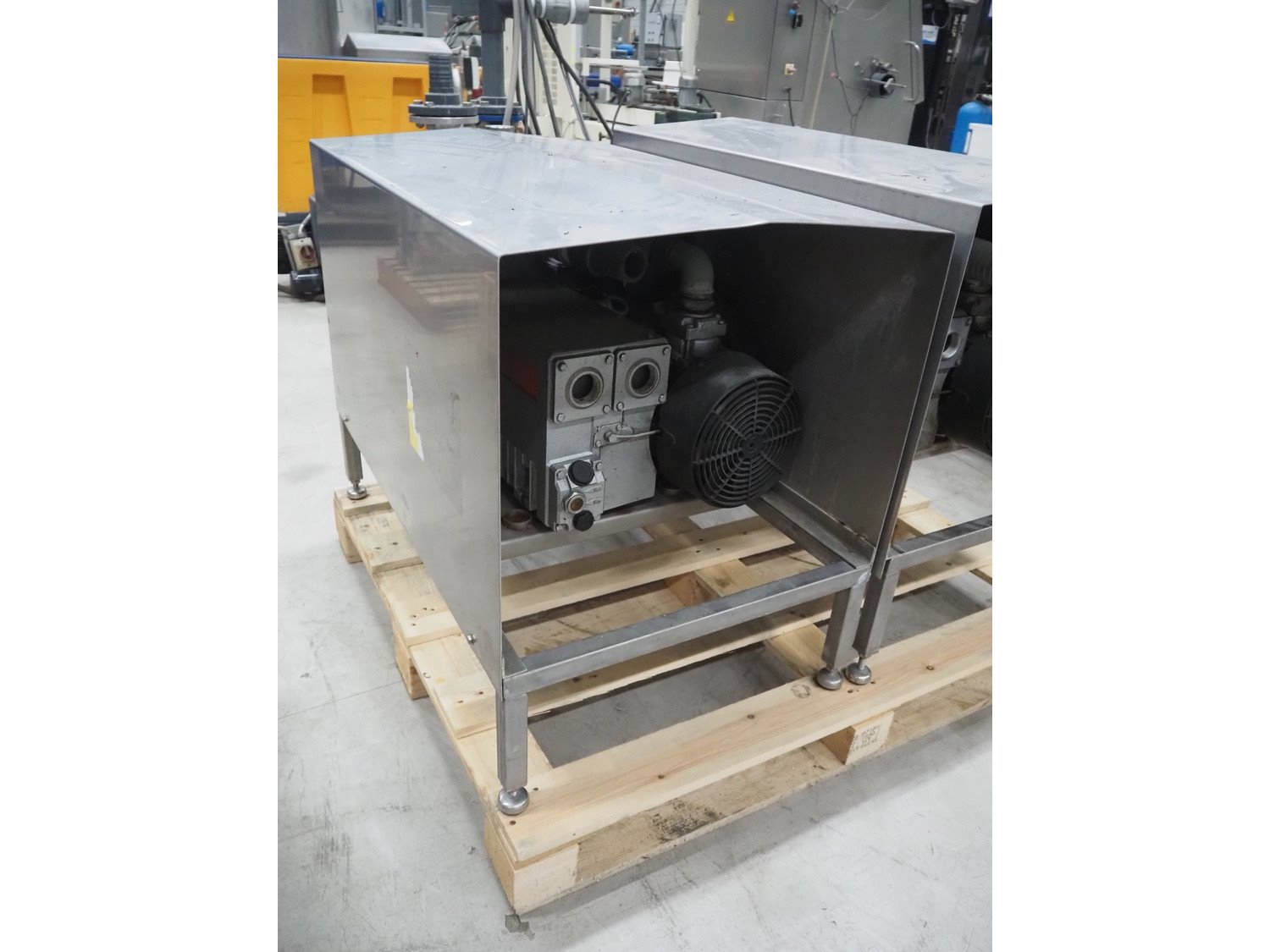 Busch vacuum pump in s/s cover, type: RA 0100 F 503, number: 120012781, year of construction: 2012, capacity: 100 m³ per hour, dimensions: 900 mm x 570 mm x 720 mm.