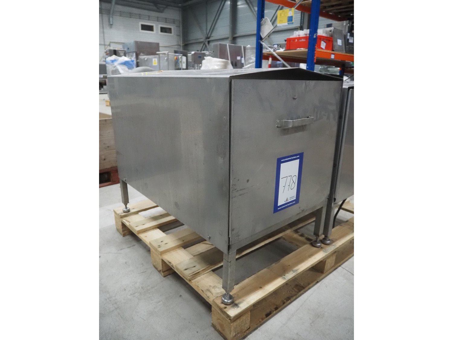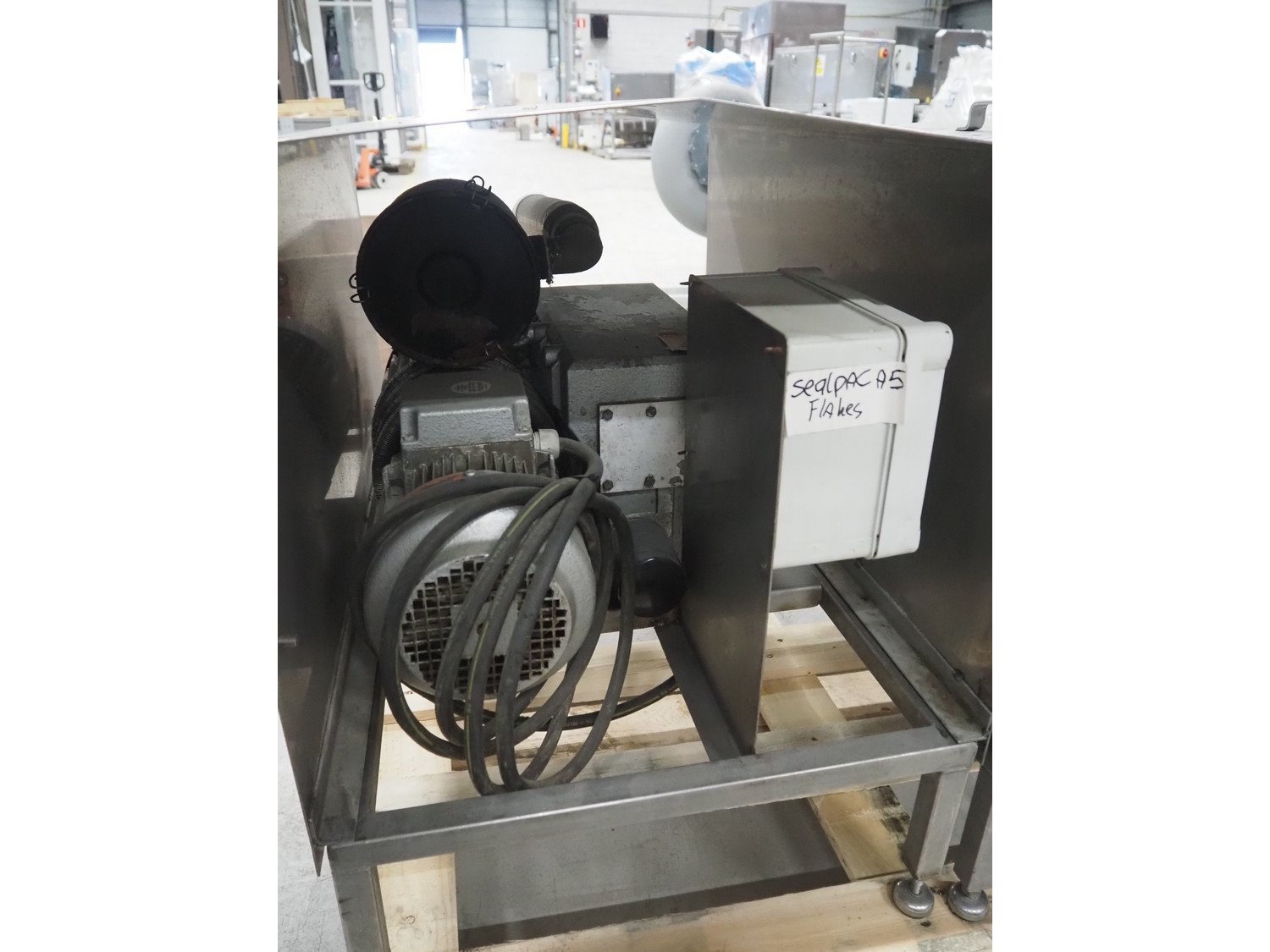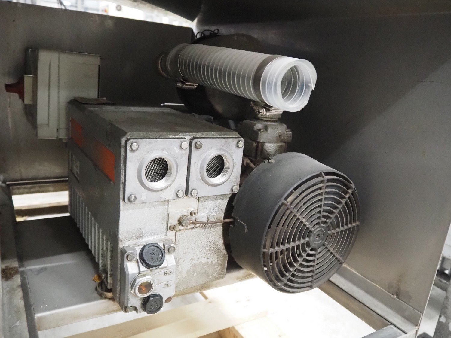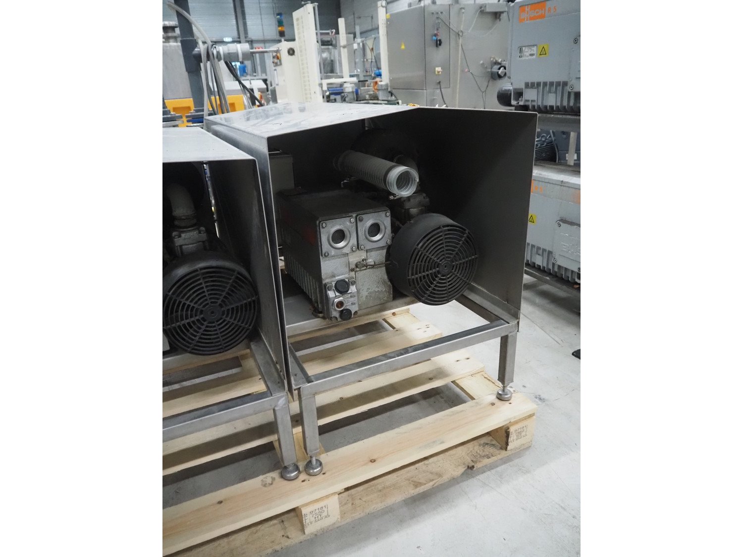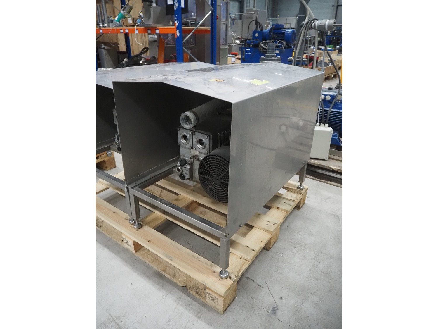 Busch vacuum pump in s/s cover, type: RA 0100 F 503, number: 110056500, year of construction: 2011, capacity: 100 m³ per hour, dimensions: 900 mm x 570 mm x 720 mm.
