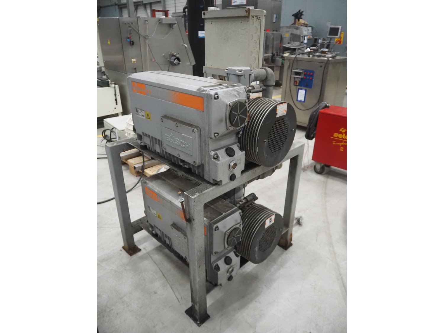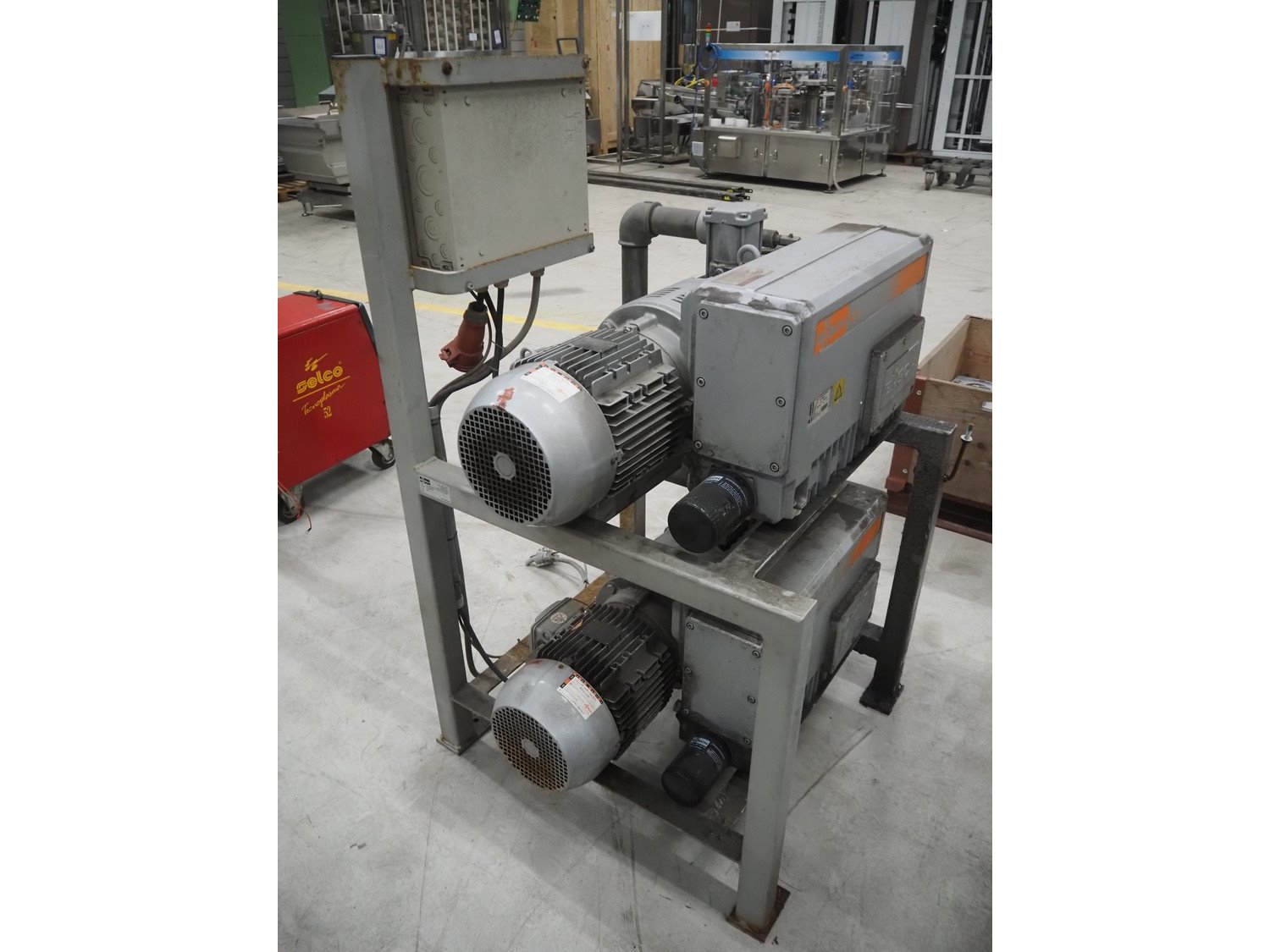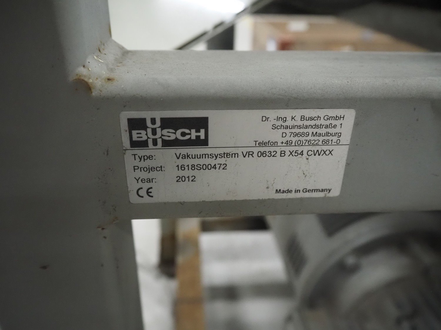 S/s frame with 2 Busch vacuum pumps, type: RA 0302 D 5Z3 CWXZ, number: C1211000500 and C1211000501, year of construction: 2012, capacity: 300 m³ per hour each, dimensions: 1000 mm x 1000 mm x 1520 mm.