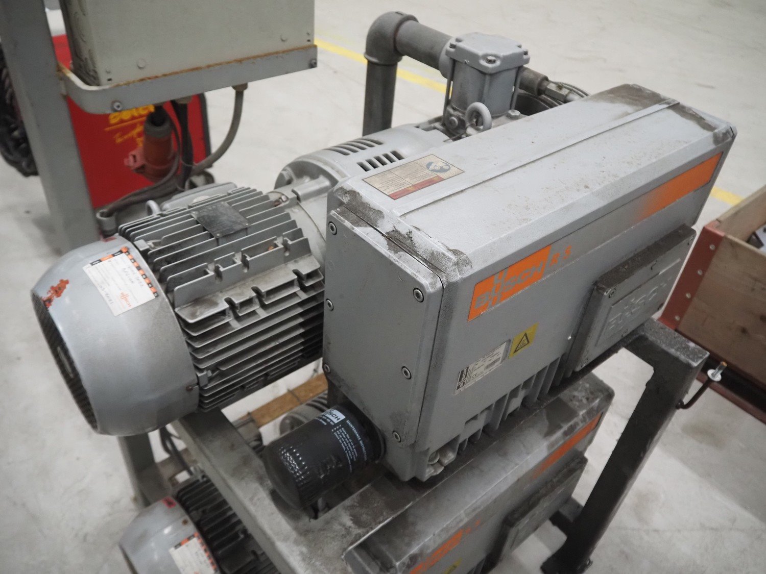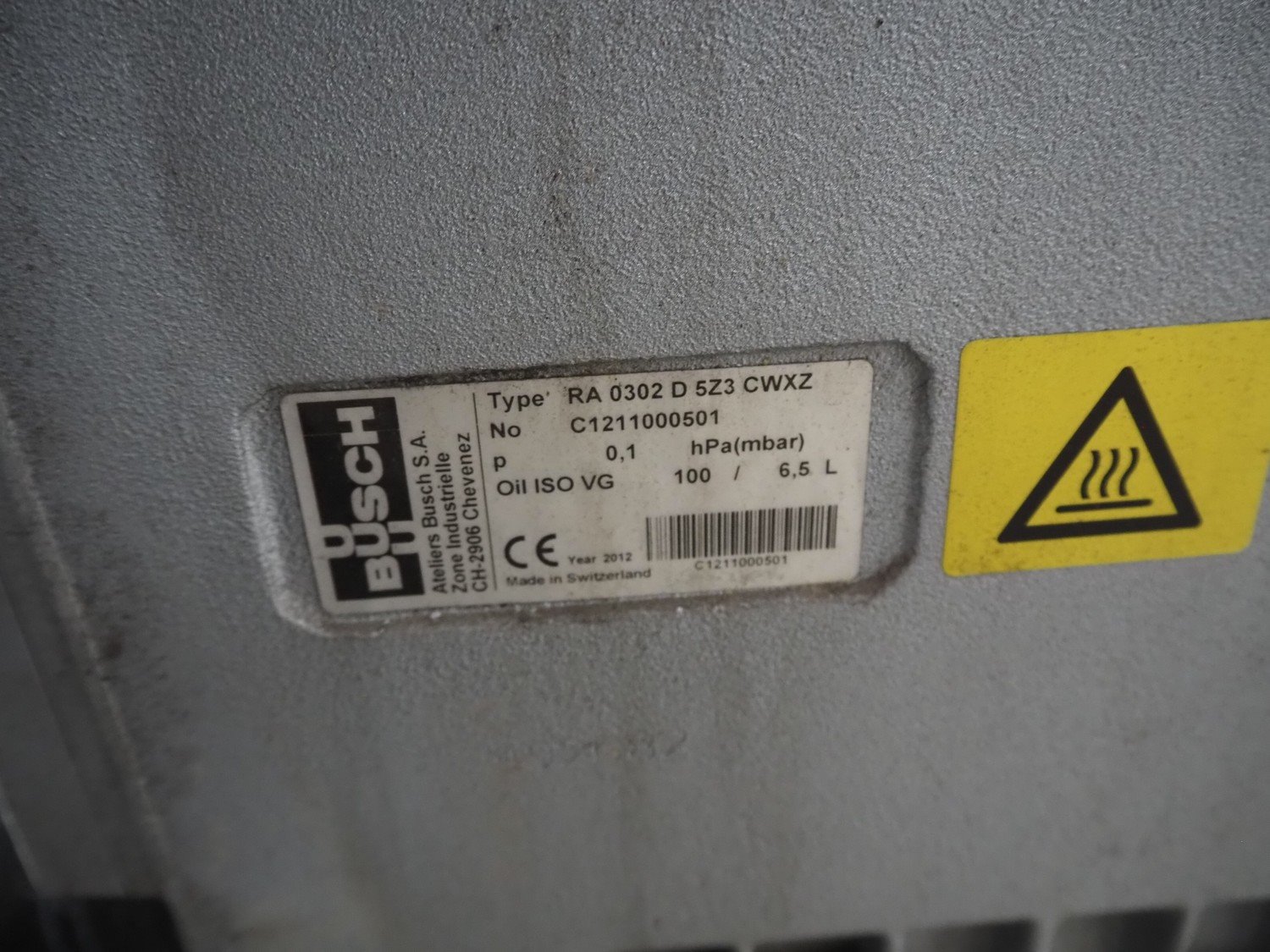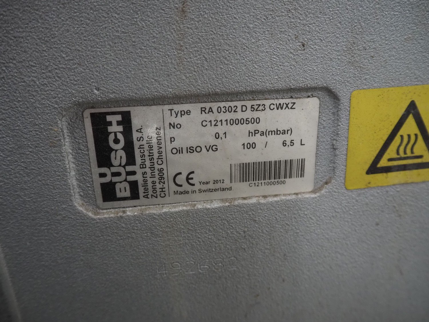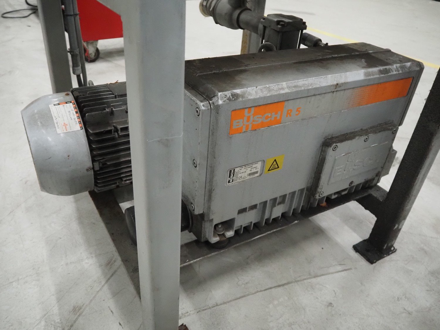 S/s frame with 2 Busch vacuum pumps, type: RA 0302 D 5Z3 CWXZ, number: C1211000500 and C1211000501, year of construction: 2012, capacity: 300 m³ per hour each, dimensions: 1000 mm x 1000 mm x 1520 mm.