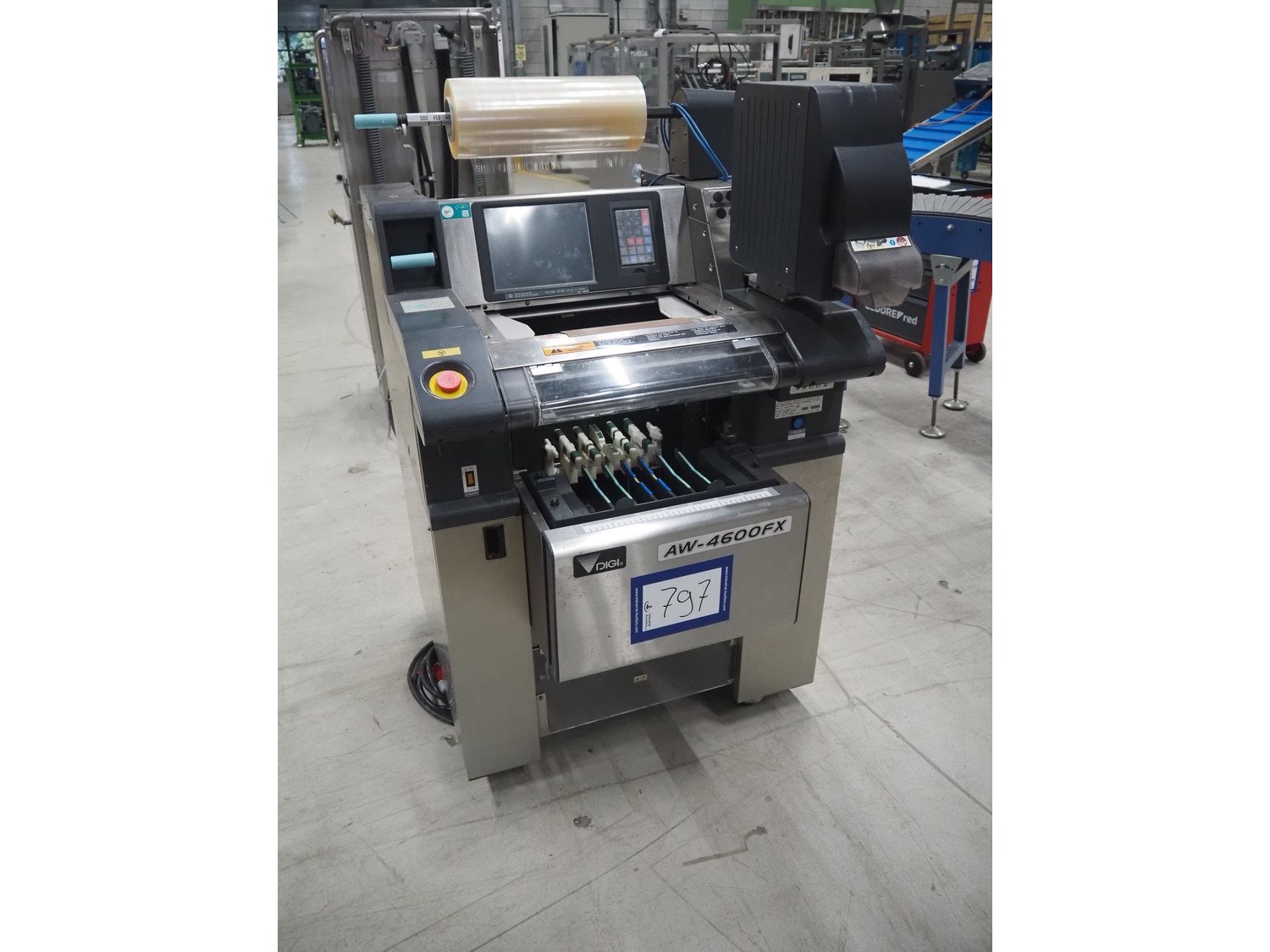Teraoka Seiko Co., Ltd packaging machine, type: AW-4600FX, serial number: 14167964, year of construction: 2014, 380/400/415/440 V, 3 Ph, 50/60 Hz, 0.9 kW, weighing range: 20g - 3/6 kg, e=1/2g, T=2.999 kg, film width: 400 mm, total dimensions: 950 mm x 860 mm x 1400 mm.