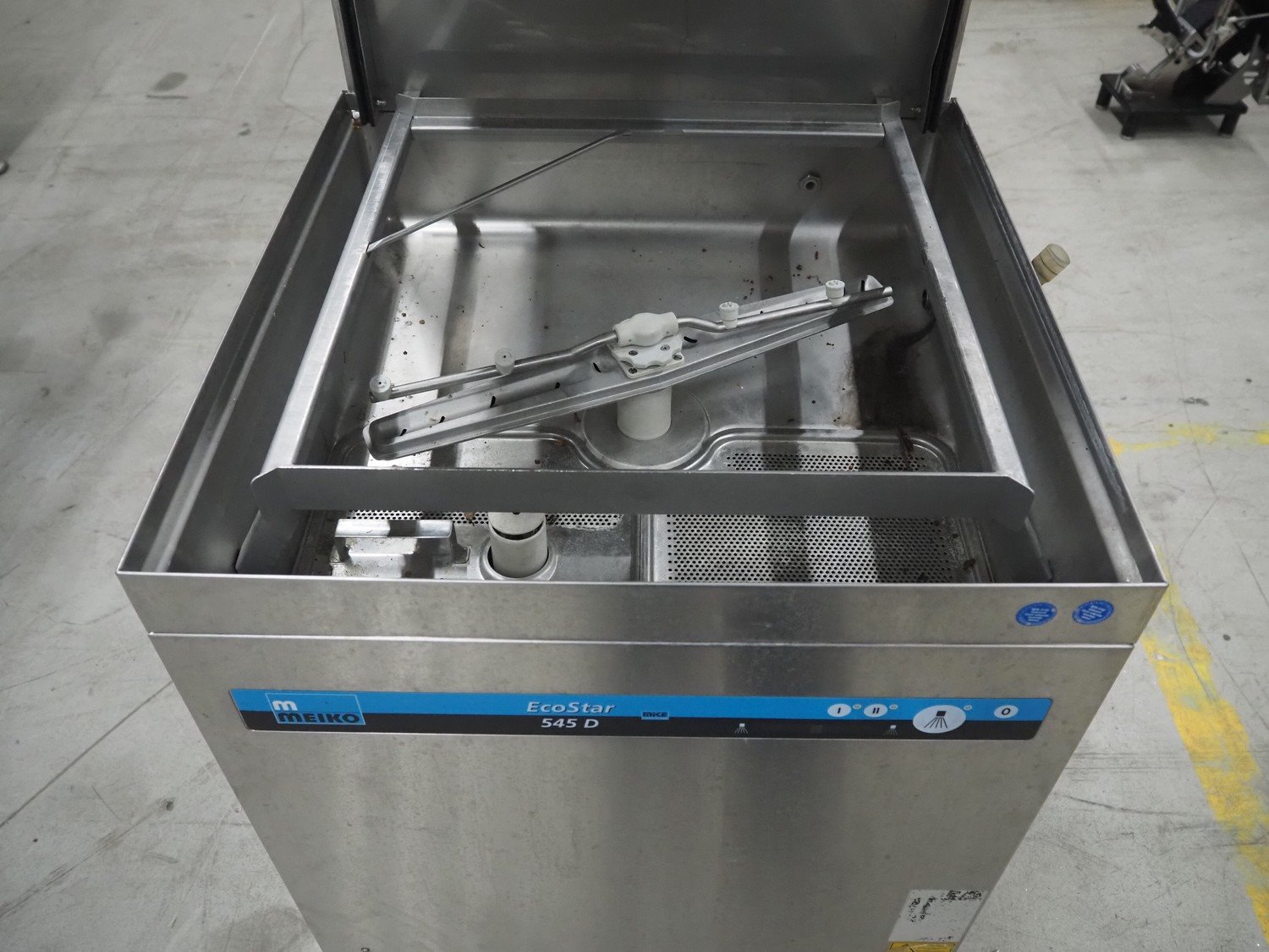 Meiko dishwasher, model: EcoStar 545 D, clearence: 500 mm x 500 mm, total dimensions: 850 mm x 700 mm x 1640 mm.