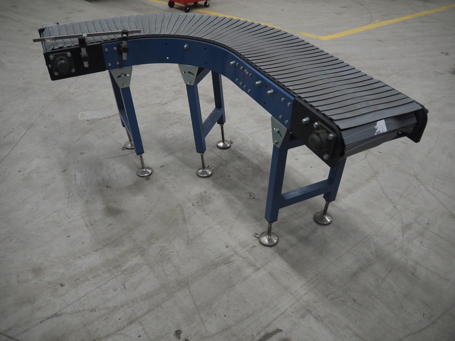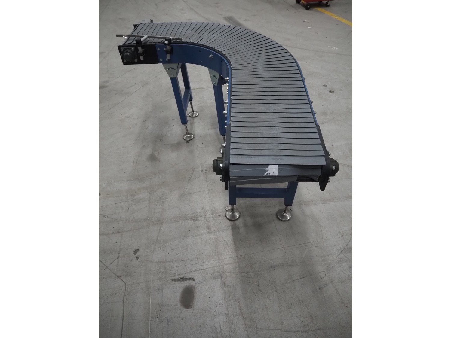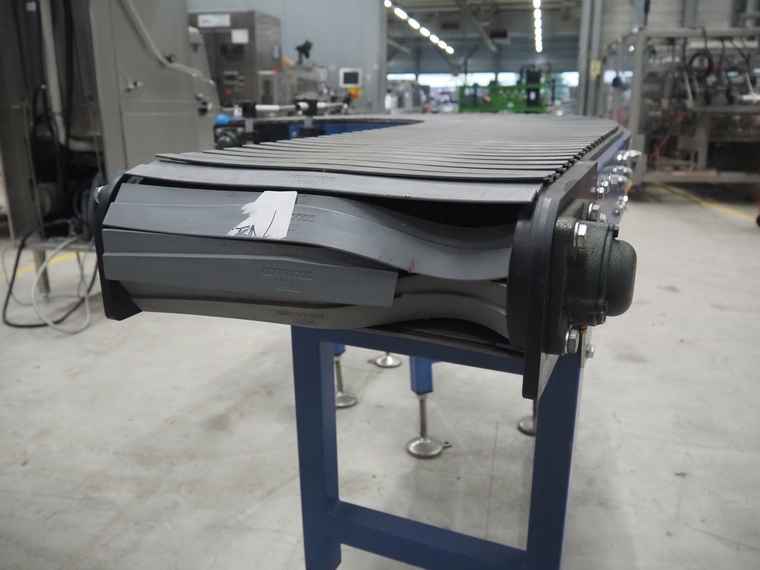 Itra 90° curve conveyor, number: ORD18-0675, year of construction: 11/2018, steel frame, plastic belt, belt width: 400 mm, total dimensions: 1800 mm x 1350 mm x 920 mm.