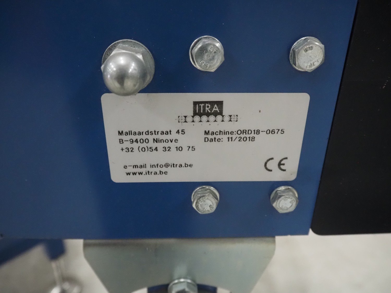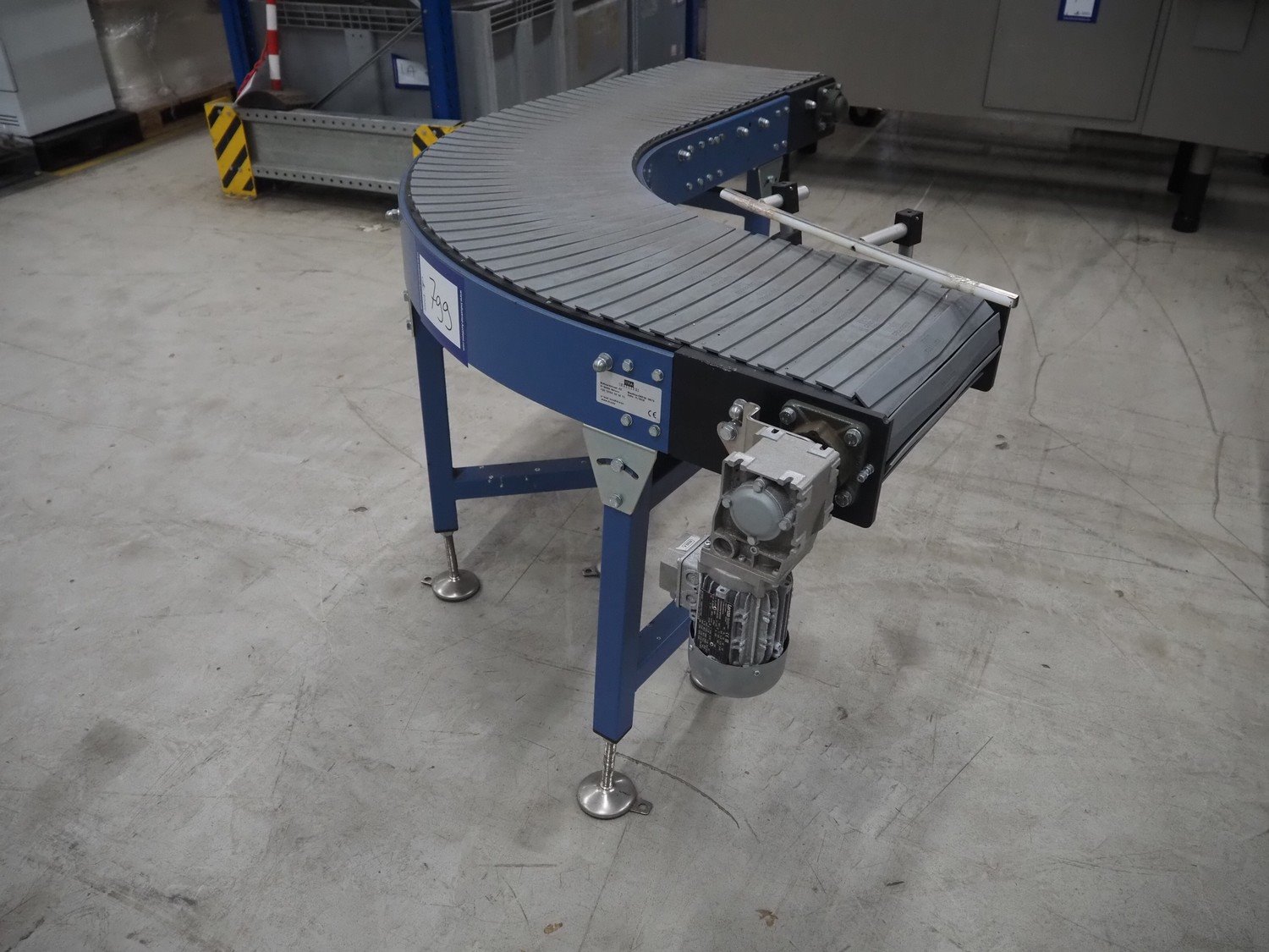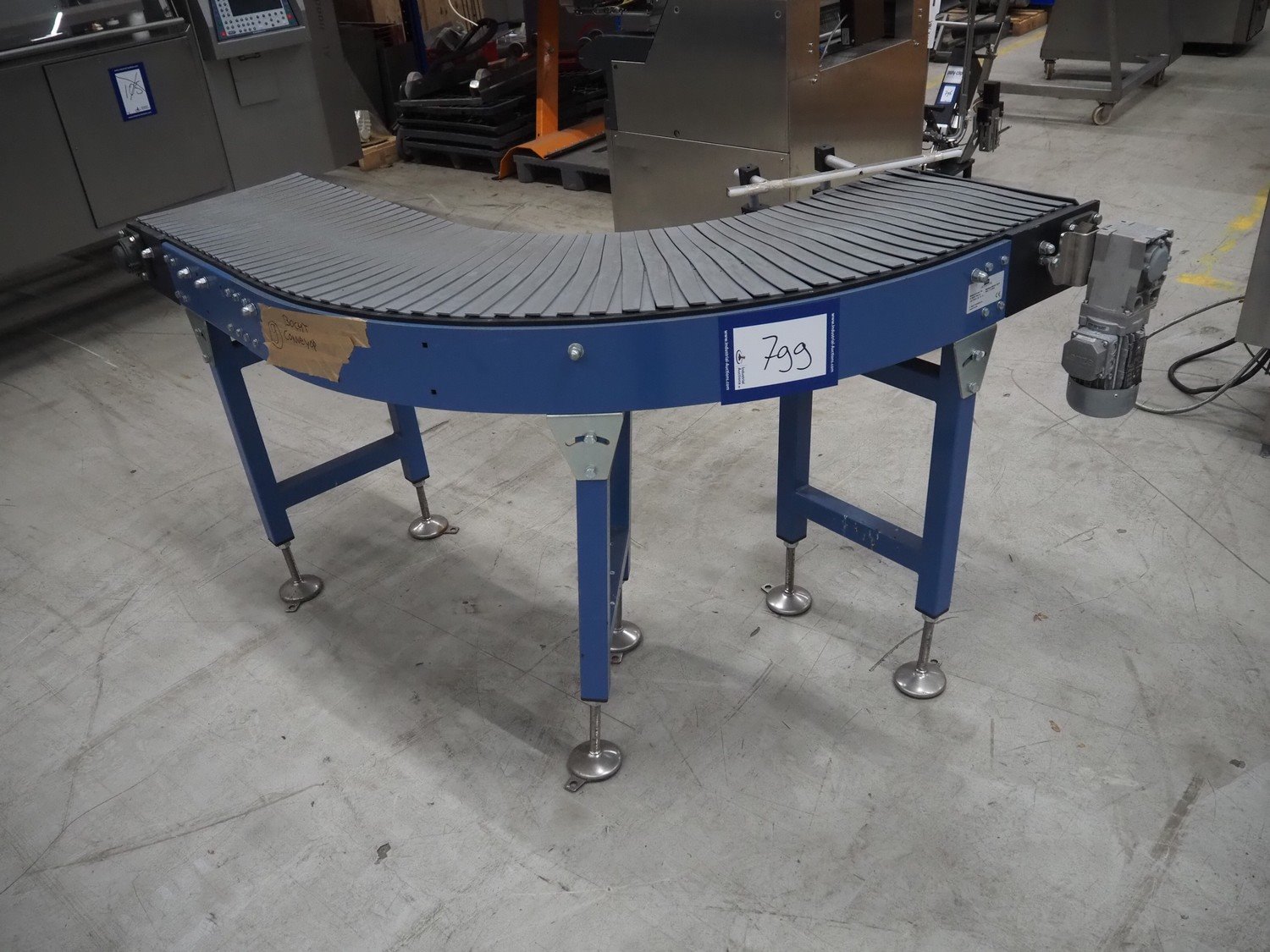 Itra 90° curve conveyor, number: ORD18-0675, year of construction: 11/2018, steel frame, plastic belt, belt width: 400 mm, total dimensions: 1800 mm x 1350 mm x 920 mm.