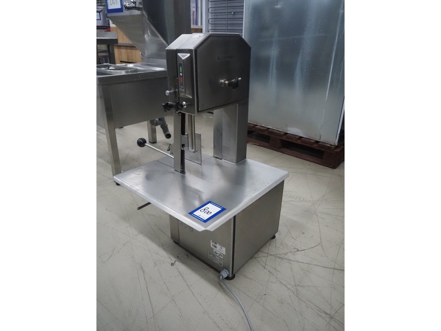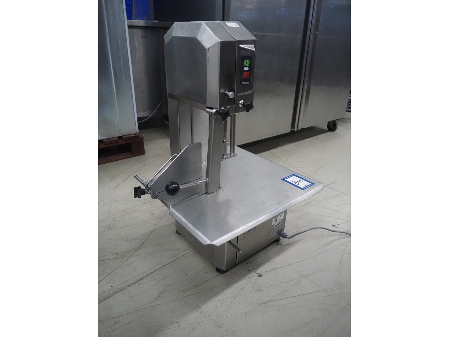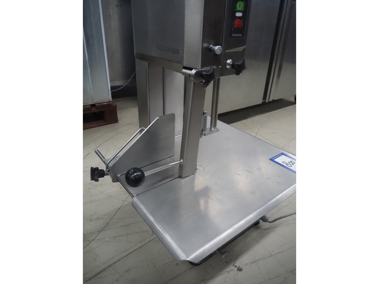 Bizerba bandsaw, model: FK 23, number: 10558007, year of construction: 2009, 400 V, 3 Ph, 50 Hz, 2.3 A, dimensions: 530 mm x 520 mm x 830 mm.