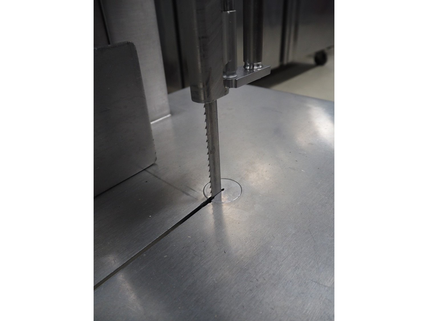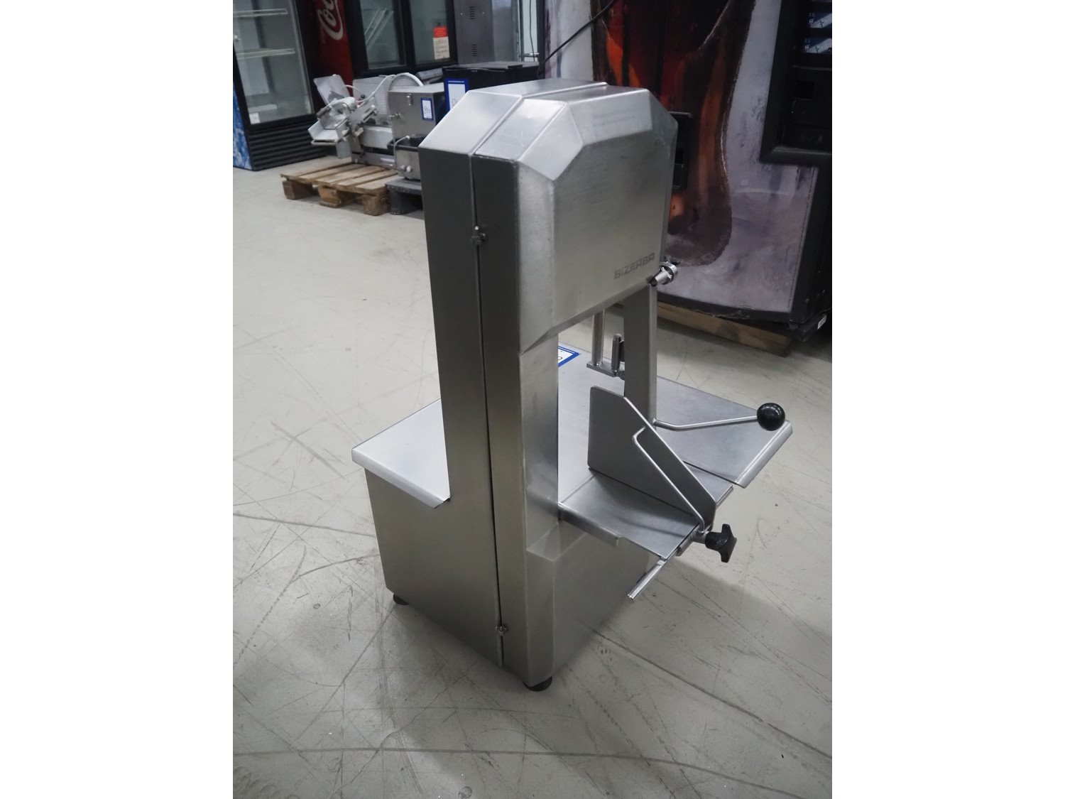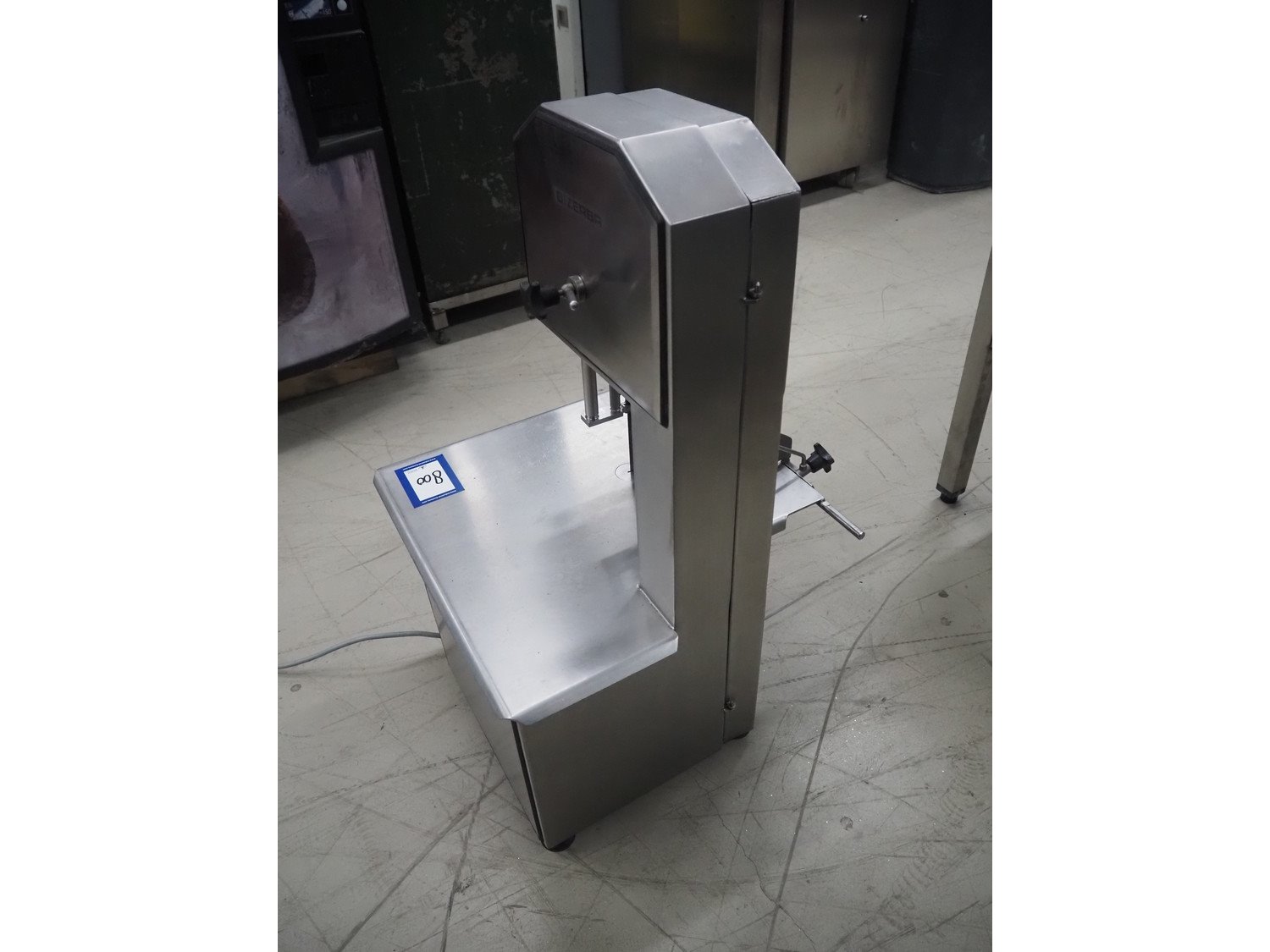 Bizerba bandsaw, model: FK 23, number: 10558007, year of construction: 2009, 400 V, 3 Ph, 50 Hz, 2.3 A, dimensions: 530 mm x 520 mm x 830 mm.