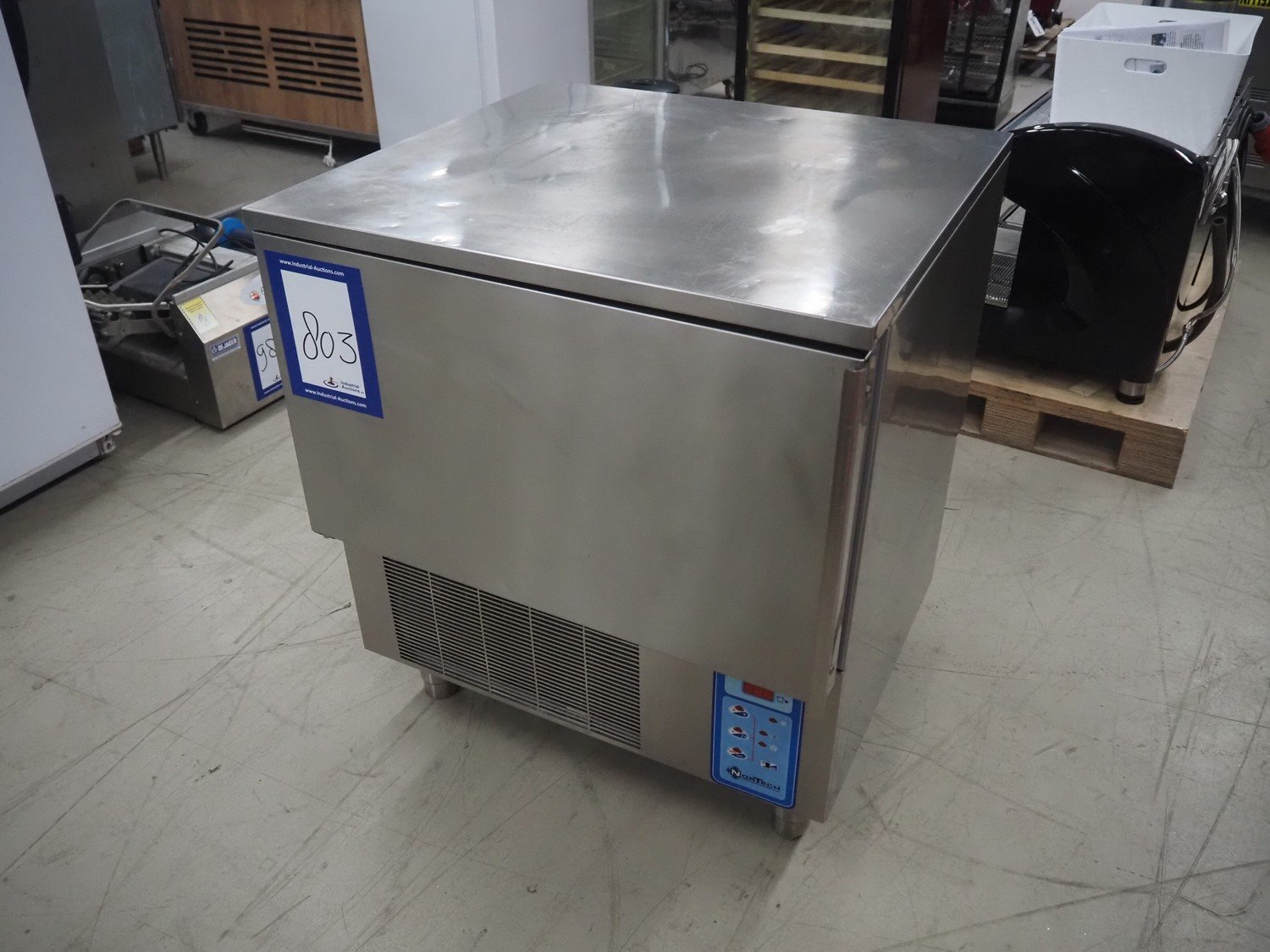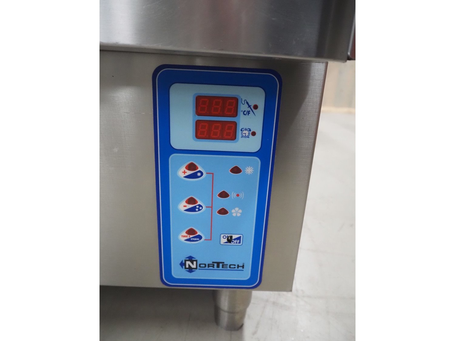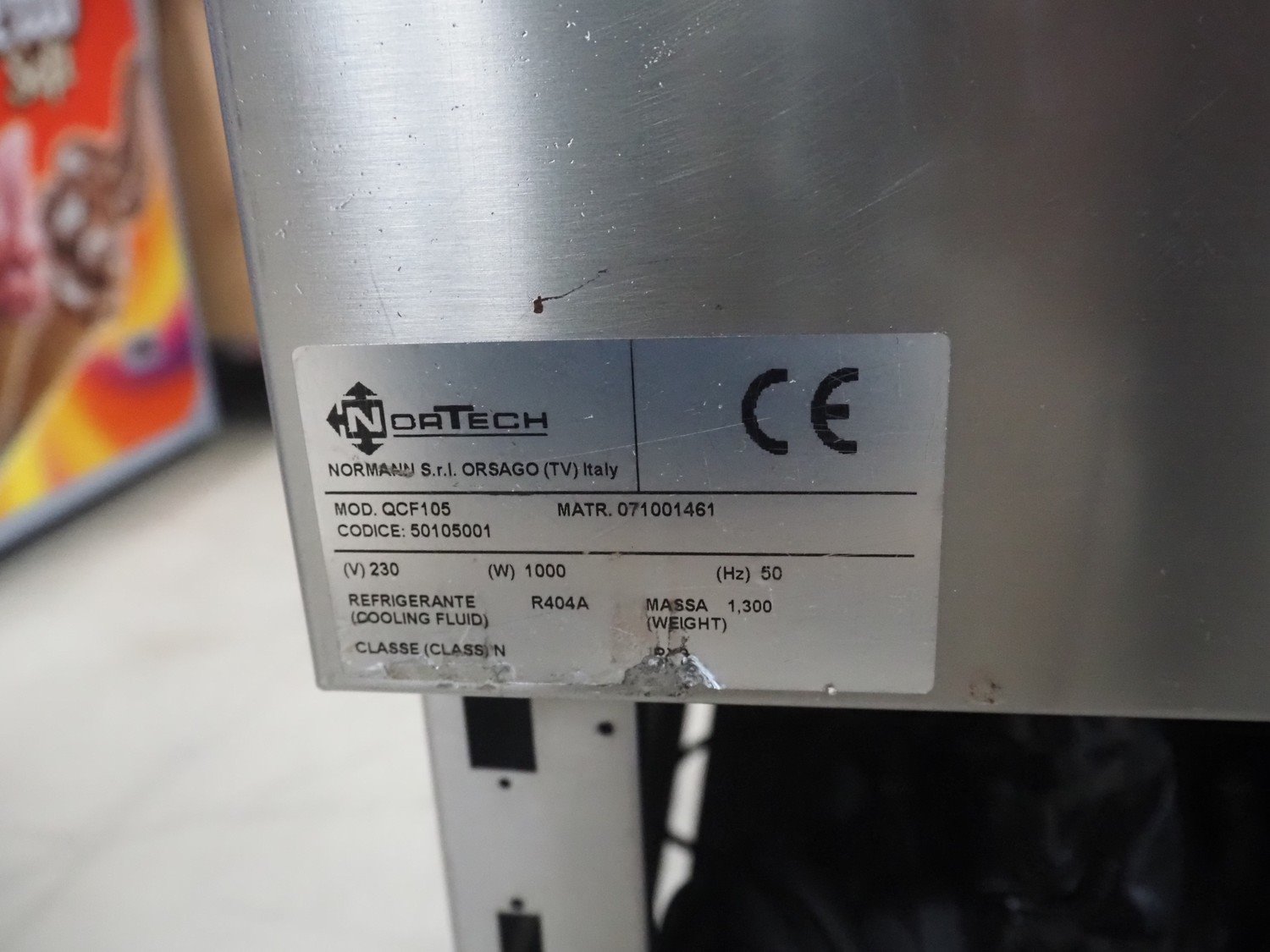 Nortech blast chiller, model: QCF105, serial number: 071001461, 230 V, 50 Hz, 1000 W, refrigerant: R404A, 1300 gram, dimensions: 750 mm x 720 mm x 860 mm.