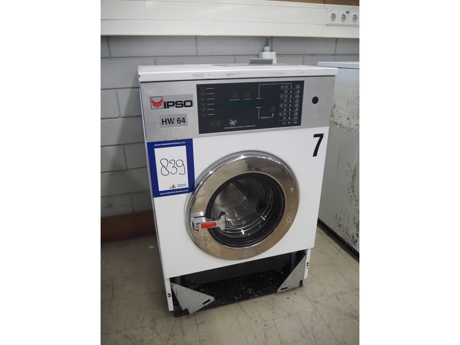 IPSO washing machine, type: HW 64, number: 64007638, year of construction: 2003, 220 V, 1 Ph, 50 Hz, 6 A, 0.75 kW, capacity: 6 kg, weight: 200 kg, dimensions: 660 mm x 820 mm x 1030 mm.