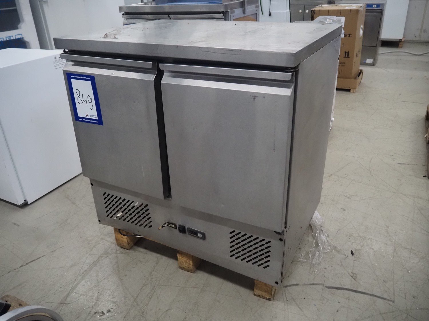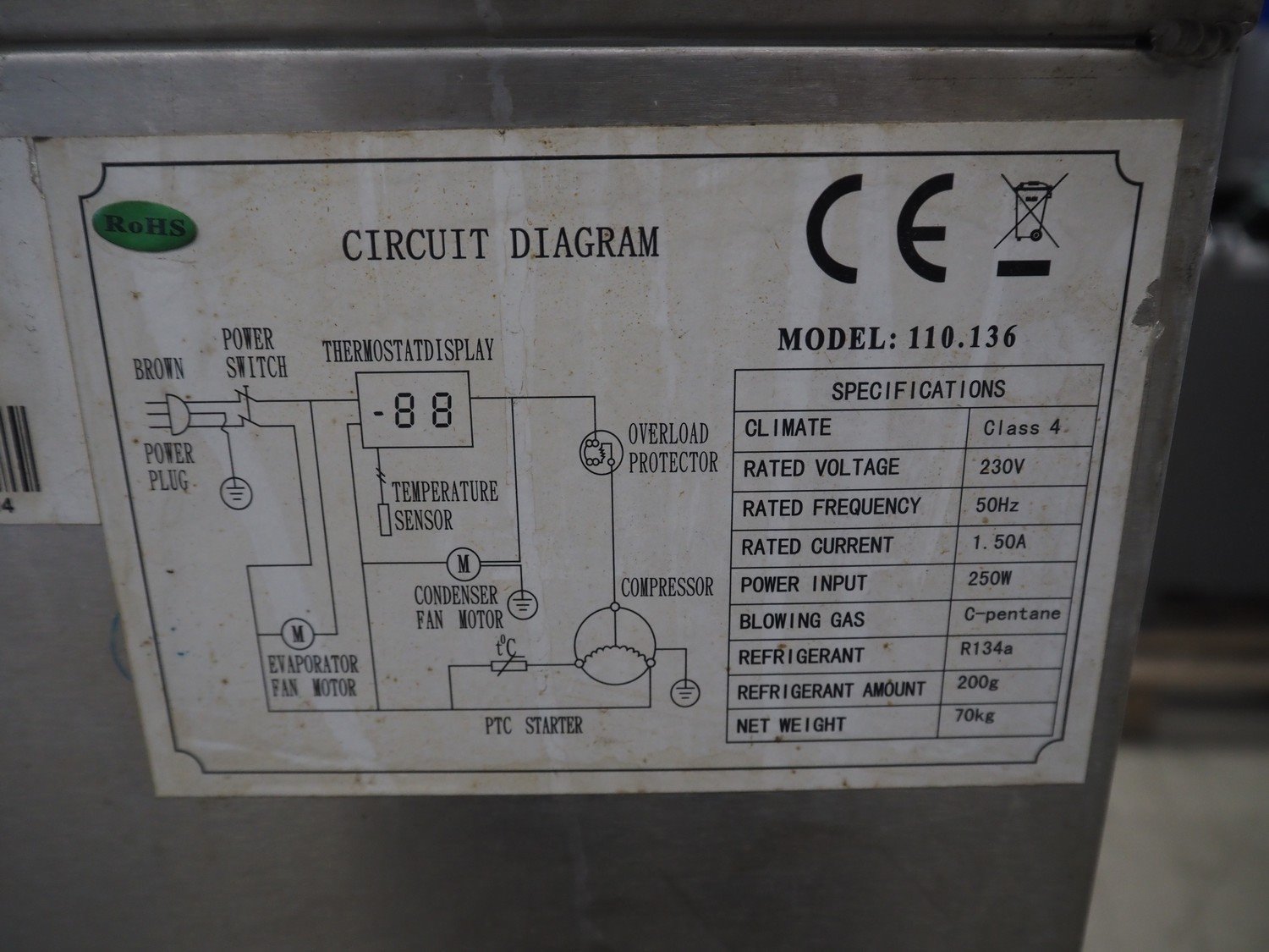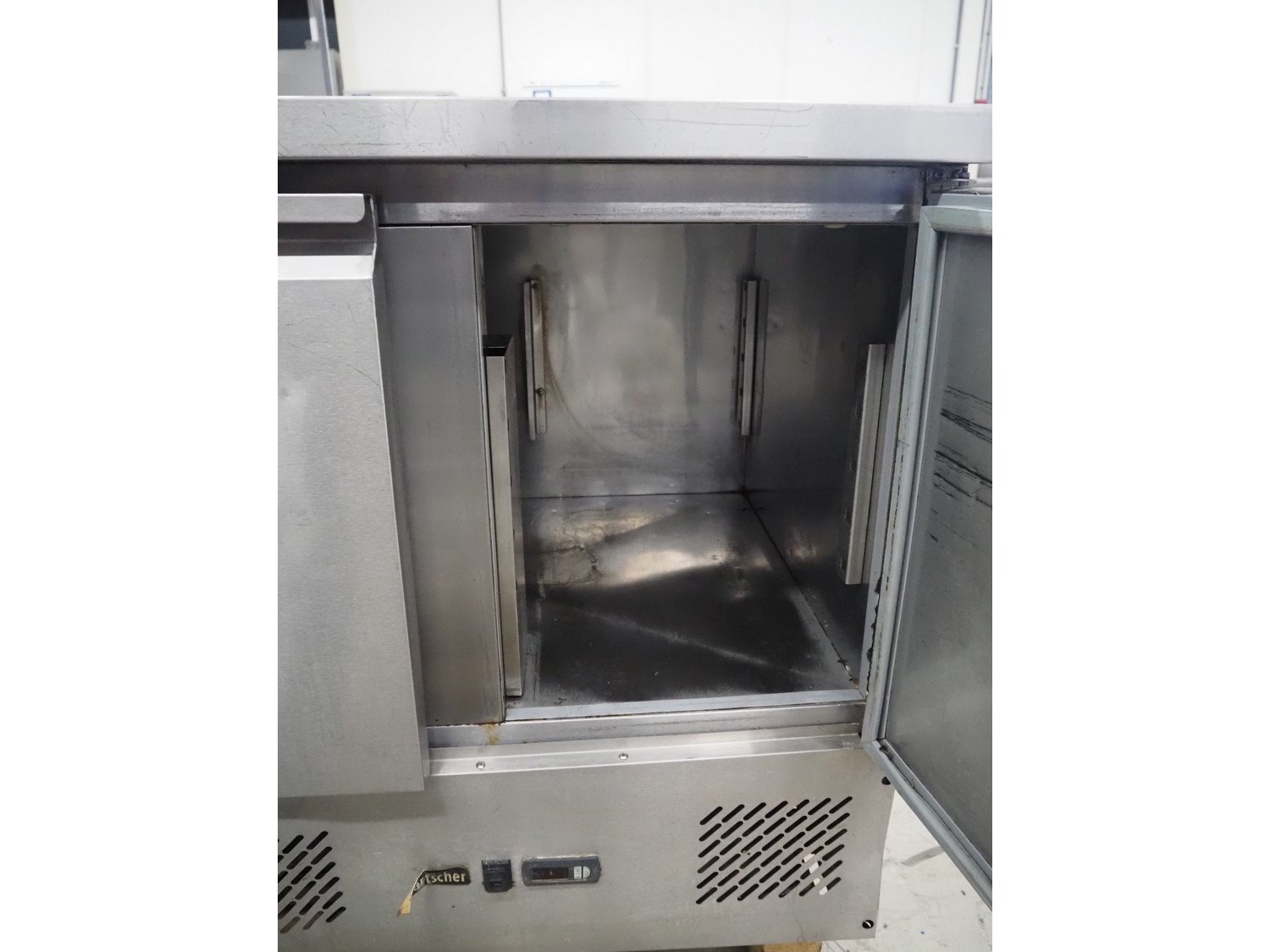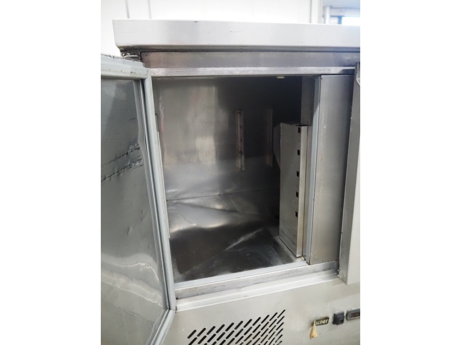 Bartscher refrigerated counter, type: S901, article number: 110136/0909, 230 V, 50 Hz, 1.5 A, 0.25 kW, refrigerant: R134a, 200 gram, dimensions: 900 mm x 700 mm x 1000 mm.