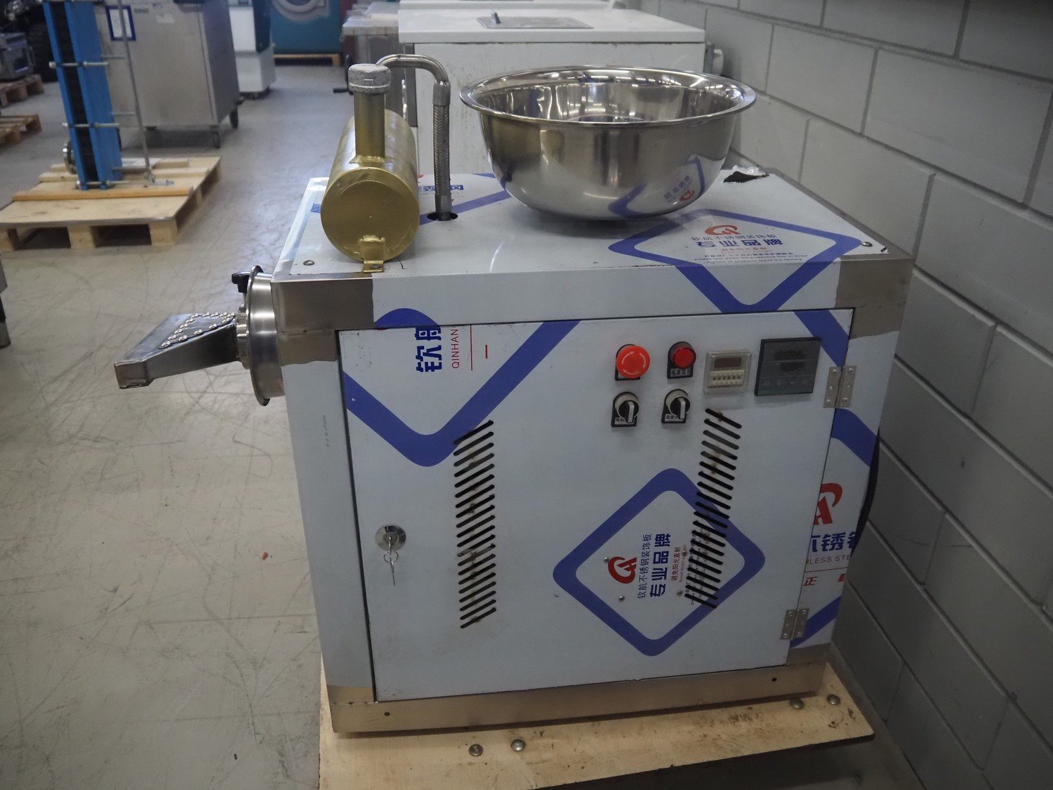 Pasta machine on rollie, dimensions: 1000 mm x 450 mm x 880 mm.