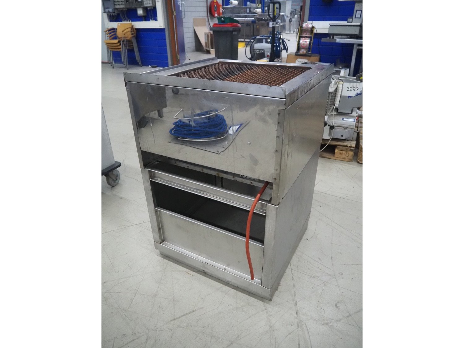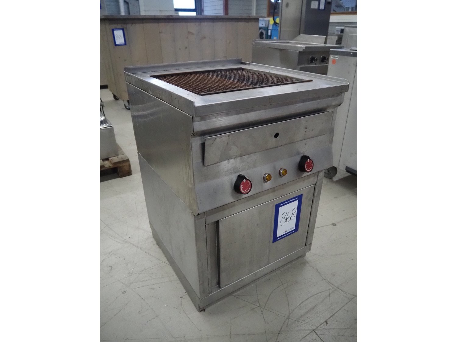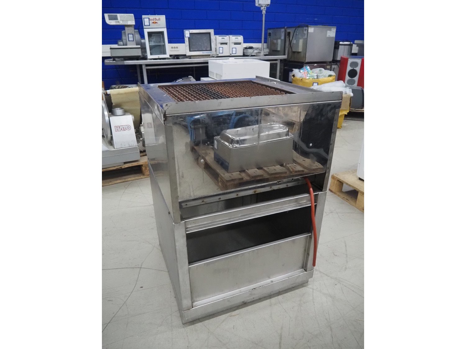 Lido-Bertuch GmbH grill, number: 1043, year of construction: 7/1982, 380/220V, 2.8/3.2/6.0 kW, grill dimensions: 450 mm x 450 mm, total dimensions: 660 mm x 600 mm x 880 mm.