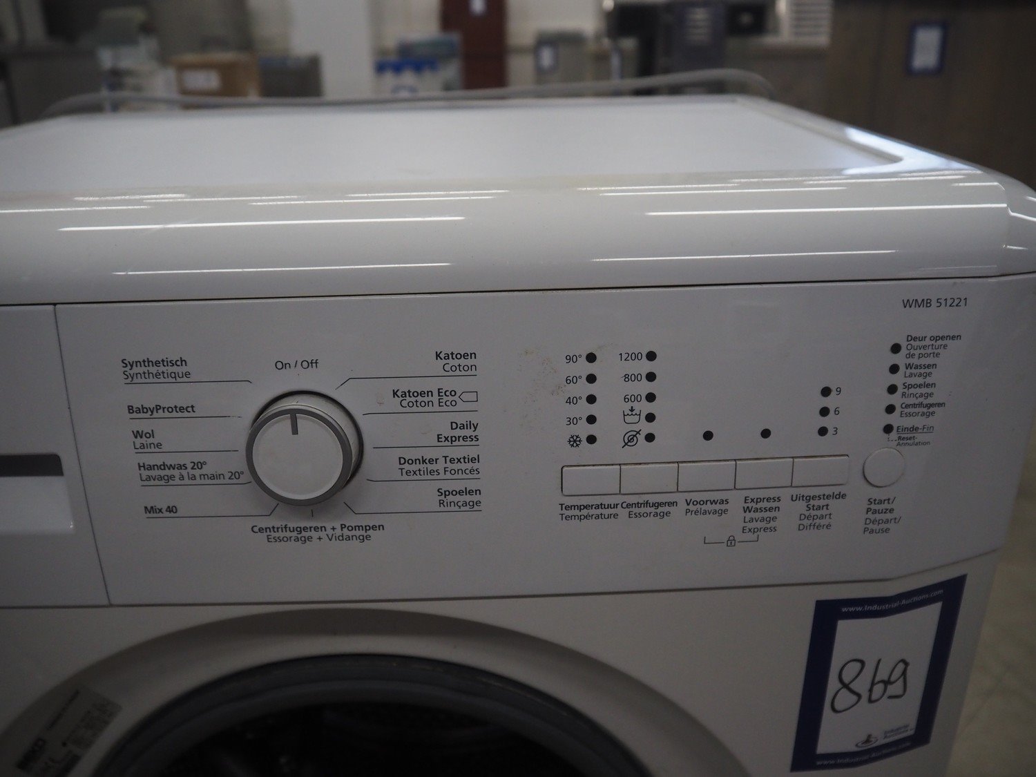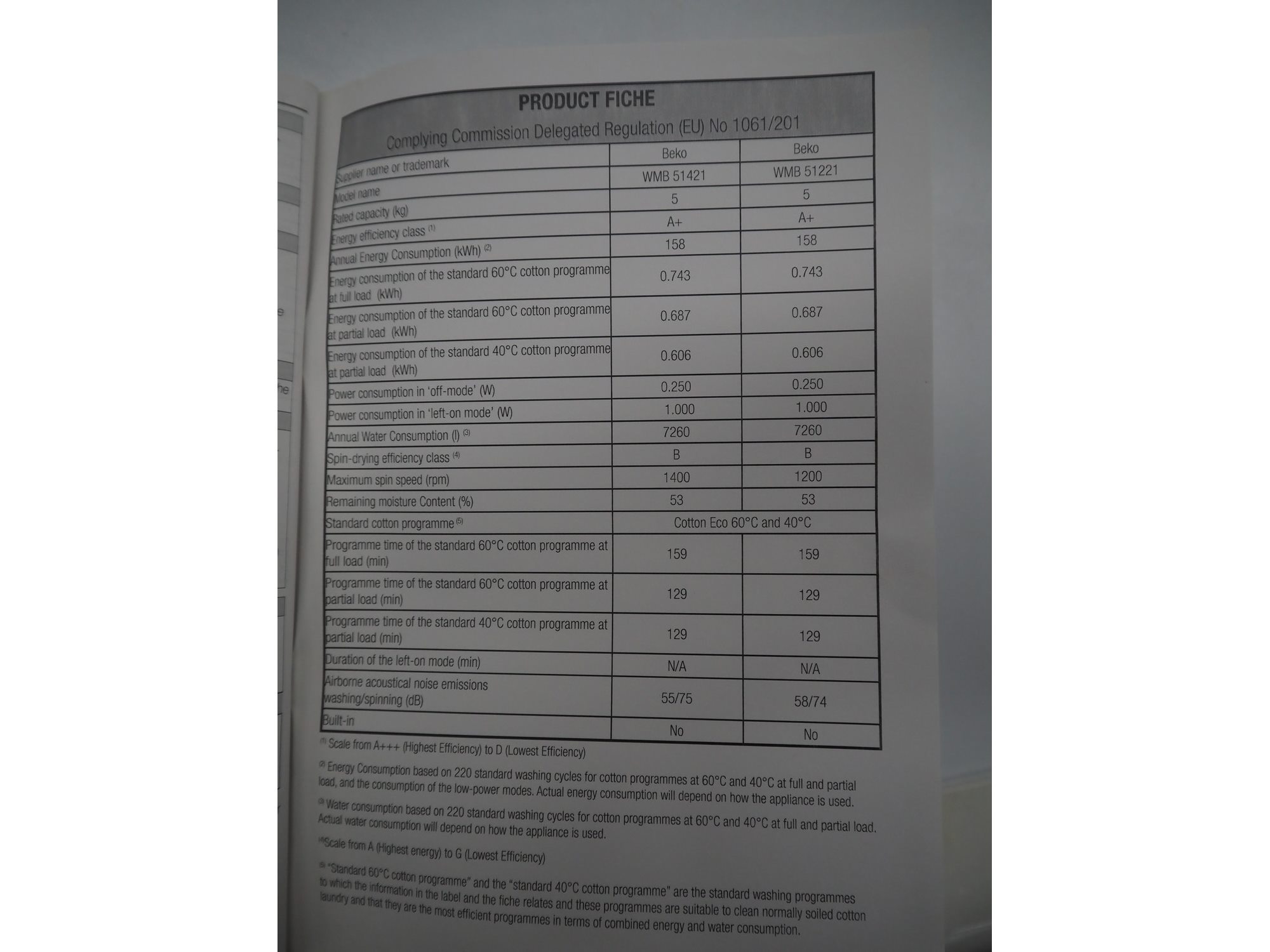 Beko dryer, model: WMB 51221, serial number: 12-601318-12, 230 V, 50 Hz, 16 A, 2200 Watt, capacity: 5 kg, dimensions: 600 mm x 450 mm x 840 mm.