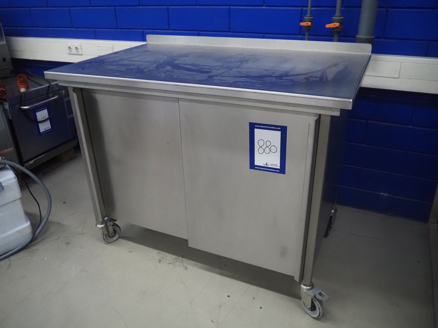 Mobile s/s cabinet, 2 floors, floor dimensions: 545 mm x 1050 mm, total dimensions: 1300 mm x 820 mm x 1055 mm.