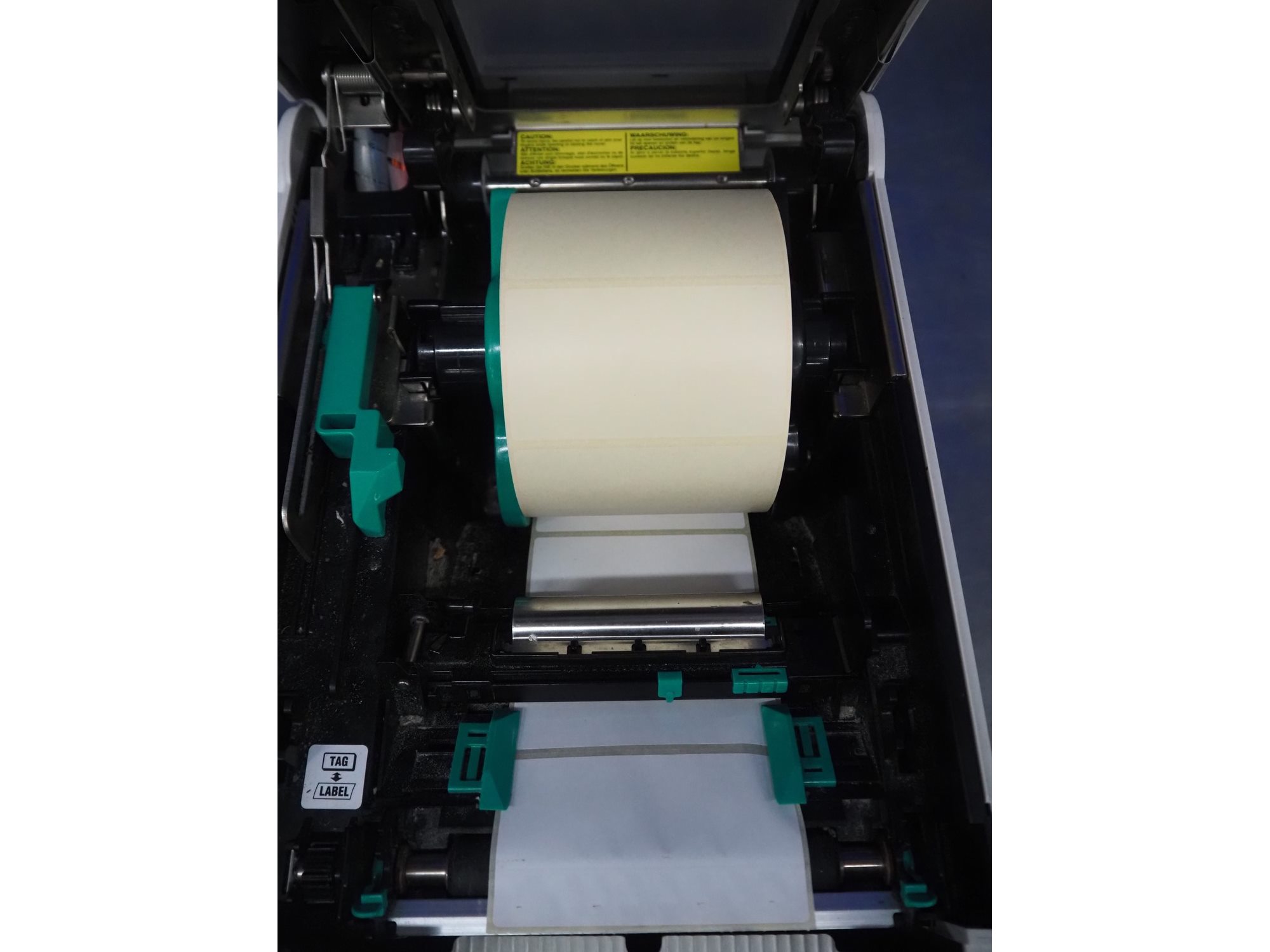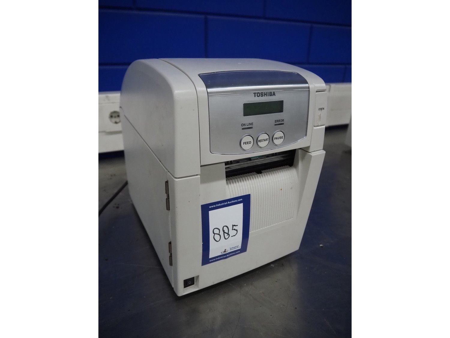 Toshiba label printer, model: B-SA4TP, serial number: 2319E120531, 100-240 V, 50-60 Hz, 2.1-1.1 A, dimensions: 350 mm x 250 mm x 1200 mm.