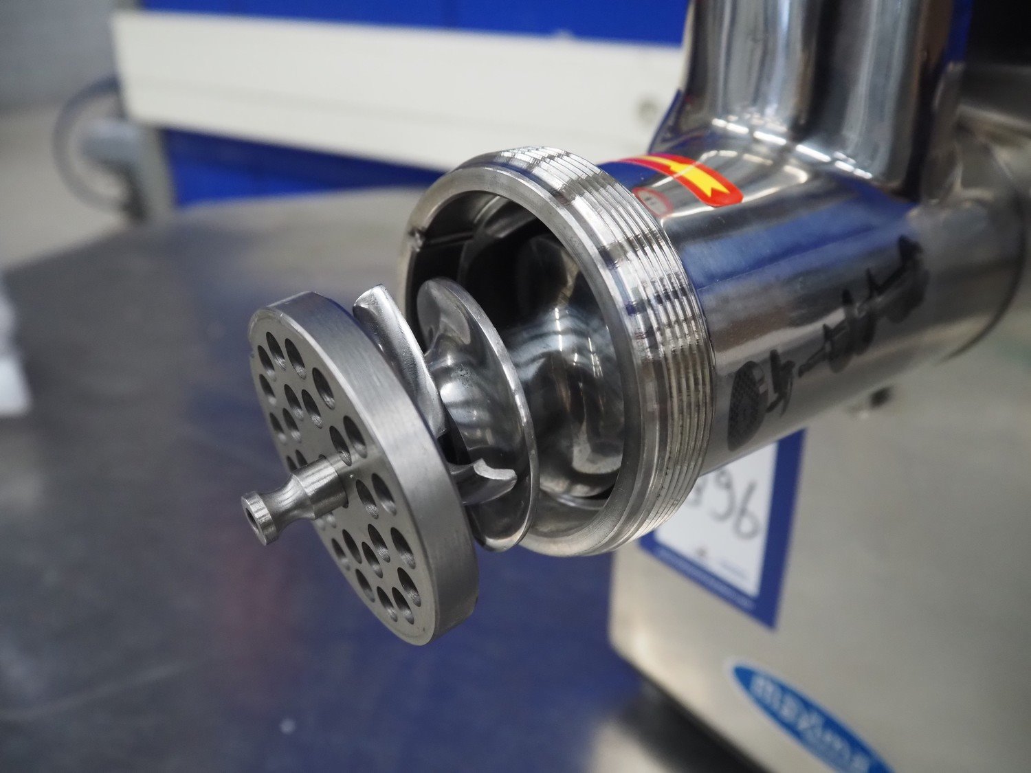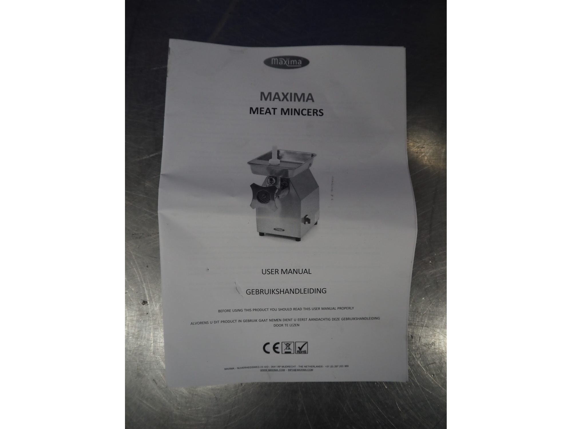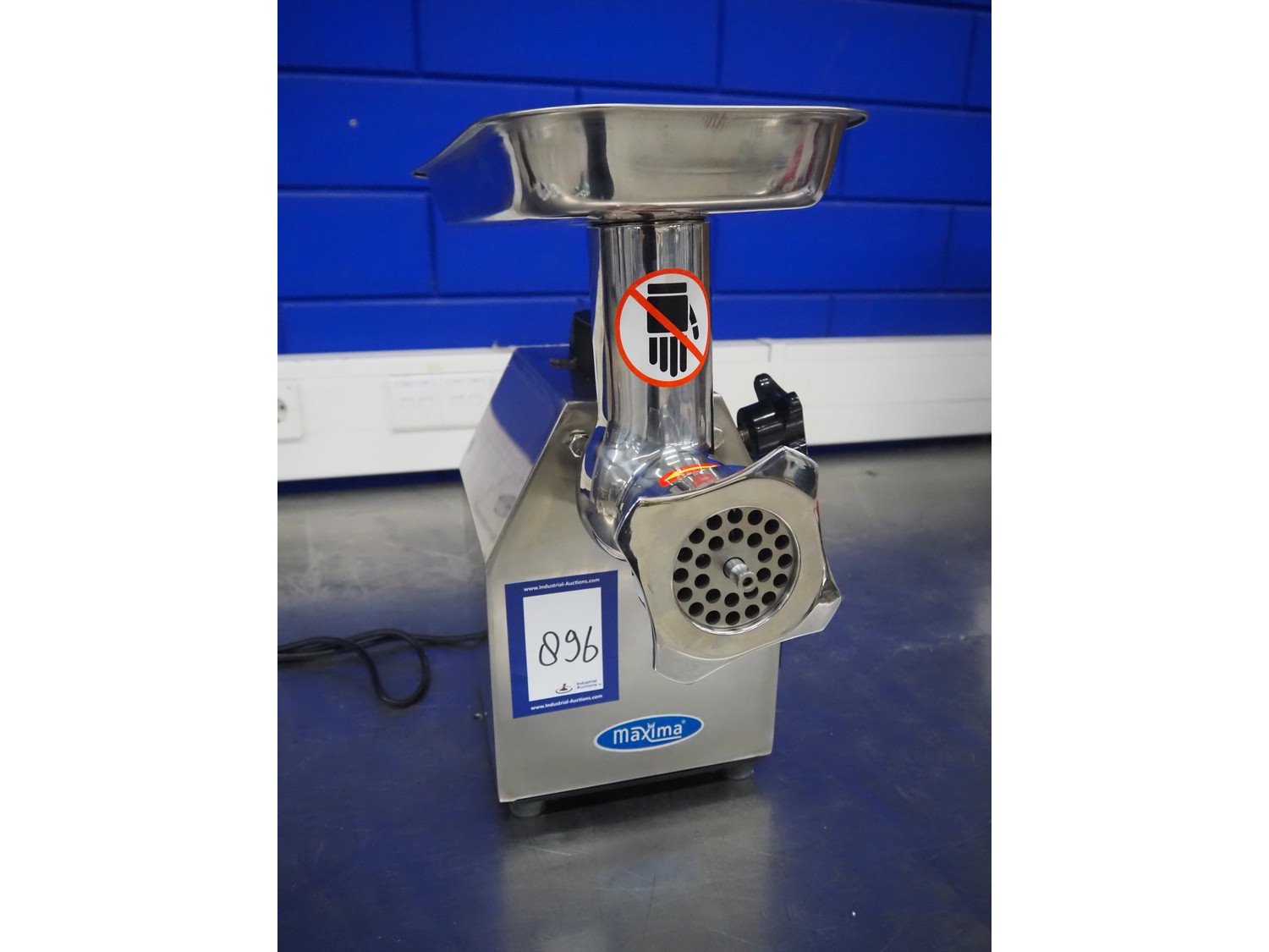 Maxima table model grinder, model: 09300445, serial number: MMM12-S597-01202410-015, 230 V, 1 Ph, 50 Hz, 750 W, weight: 23 kg, plate diameter: 70 mm, total dimensions: 440 mm x 250 mm x 460 mm.