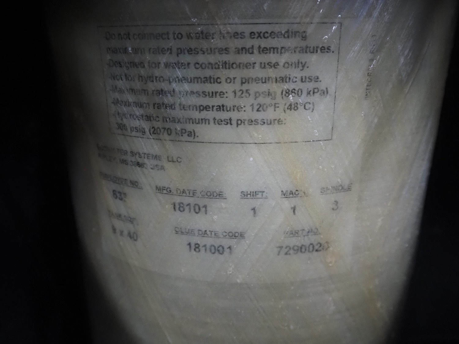 Water softener, model: VDR 30-400, serial number: 7238890-18137-1004, year of construction: 2011, dimensions: 600 mm x 450 mm x 1250 mm.