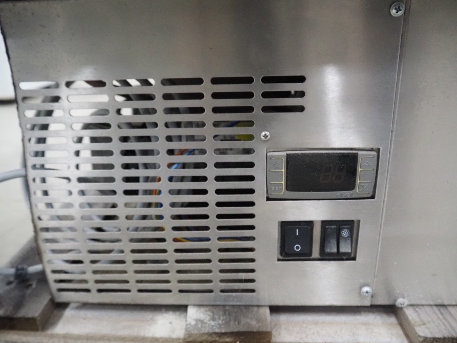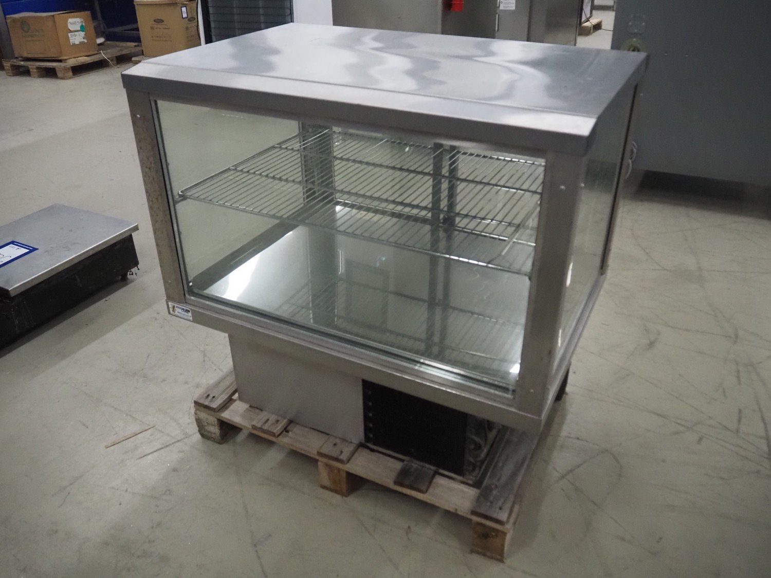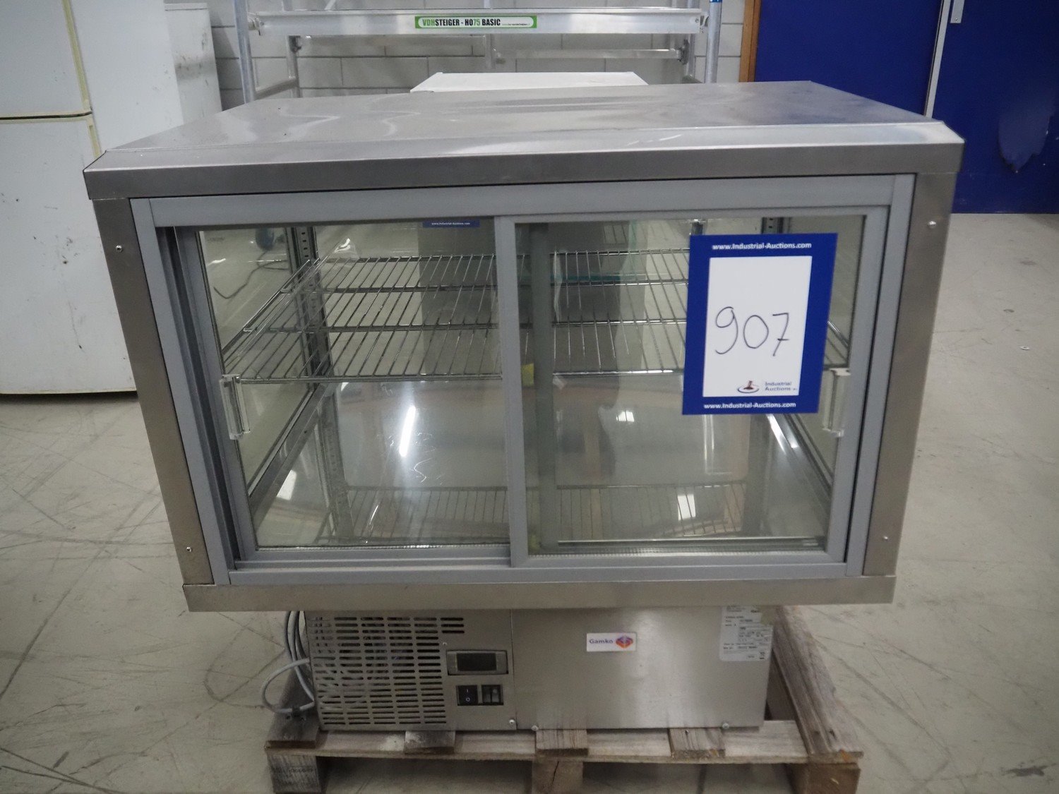 Gamko refrigerated display, type: AV/MU84N, year of construction: 2010, 220-240 V, 50 Hz, 2.5 A, 380 W, dimensions: 850 mm x 600 mm x 750 mm.