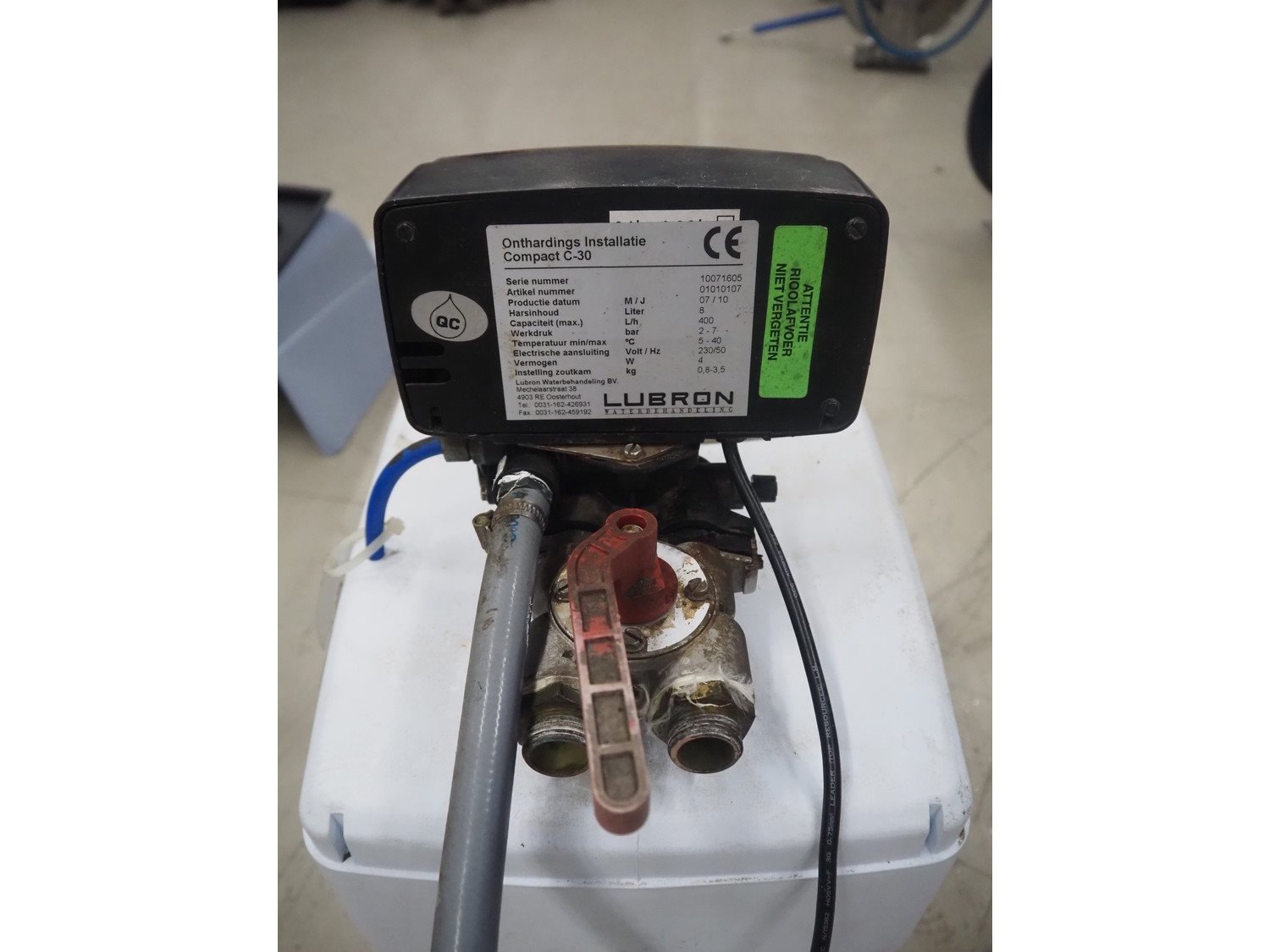 Lubron water softener, model: Compact C-30, serial number: 10071605, year of construction: 07/2010, capacity: 400 liter per hour, dimensions: 500 mm x 300 mm x 600 mm.