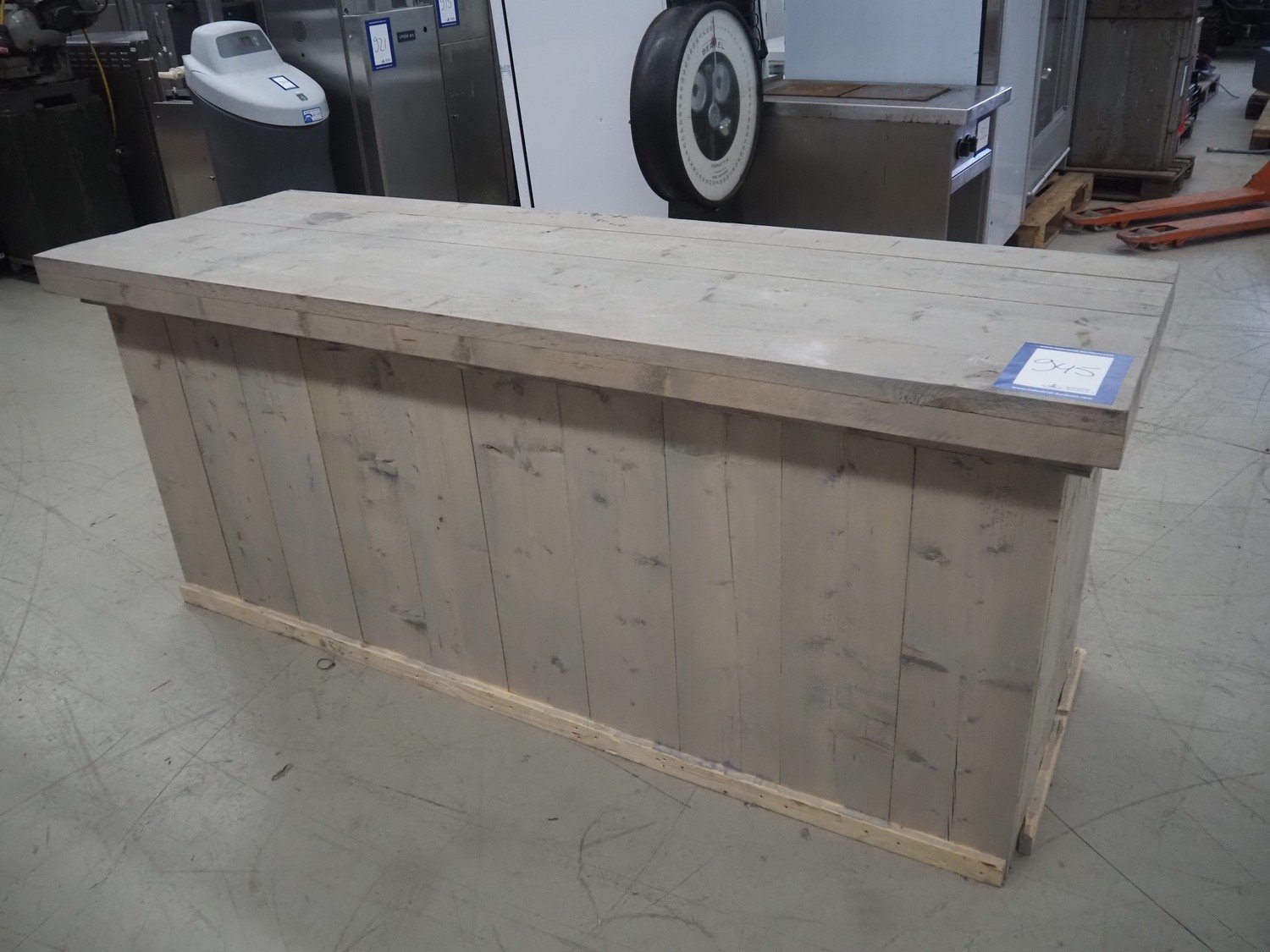 Wooden counter, dimensions: 2160 mm x 750 mm x 910 mm.