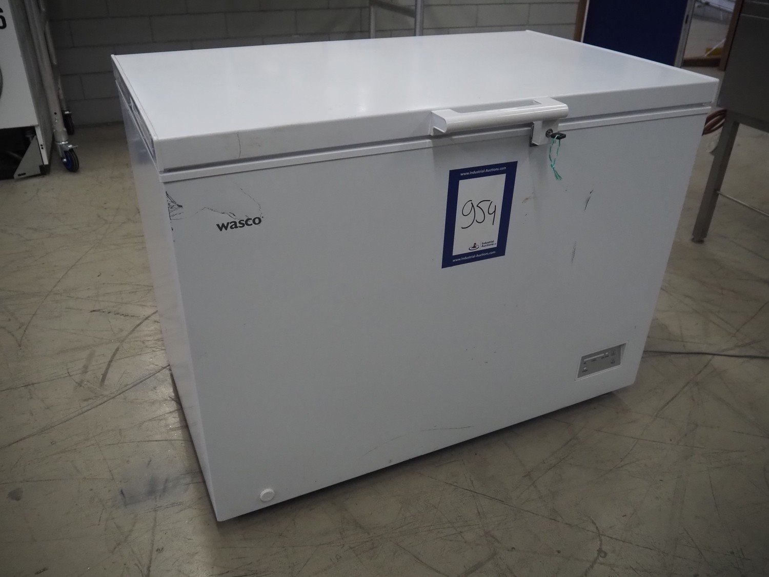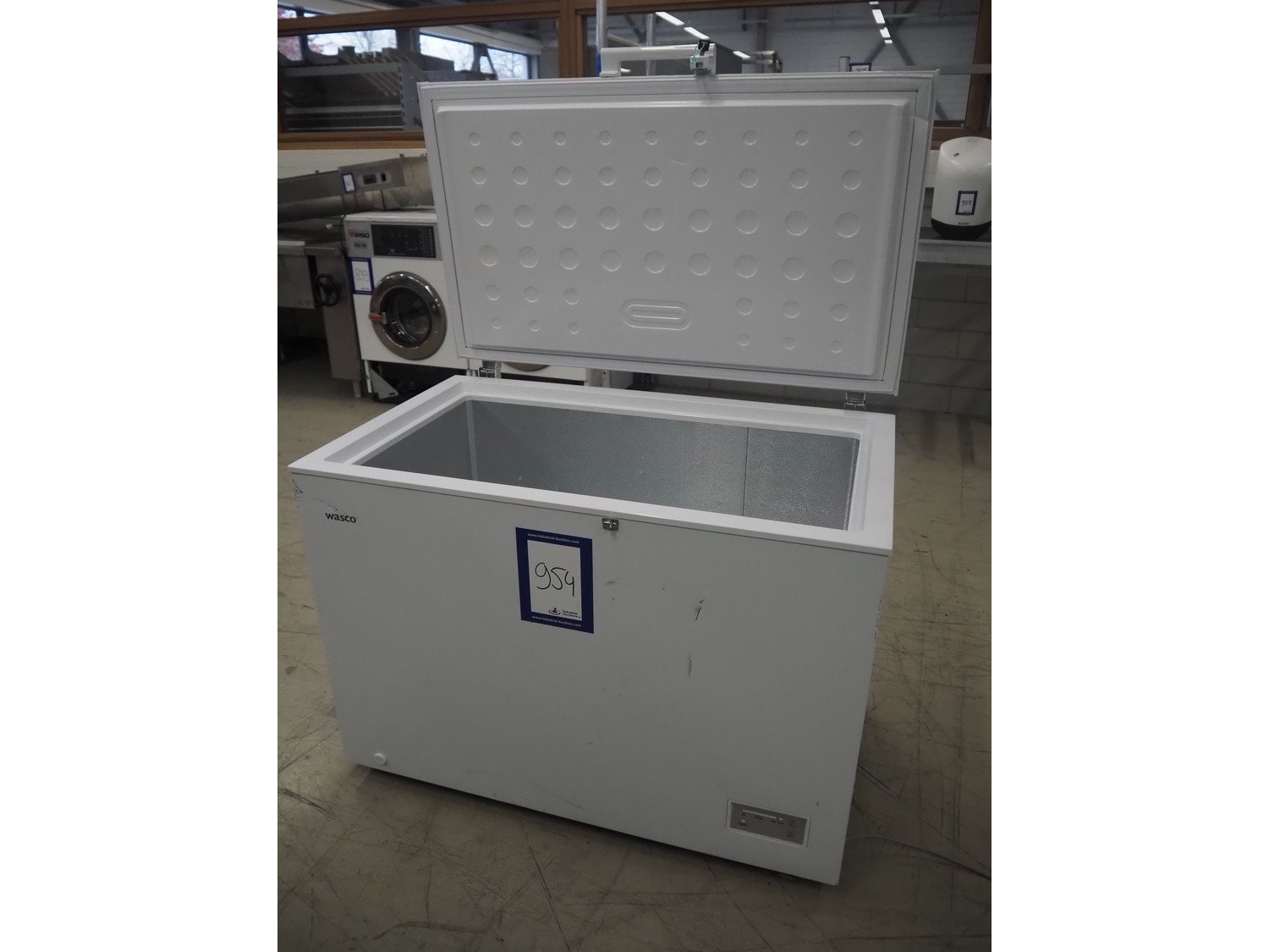 Wasco freezer, model: FB316A, serial number: 20520017, 220-240 V, 50 Hz, 1.45 A, 155 W, refrigerant: R600a, 60 gram, volume: 308 liter, dimensions: 1120 mm x 740 mm x 850 mm.