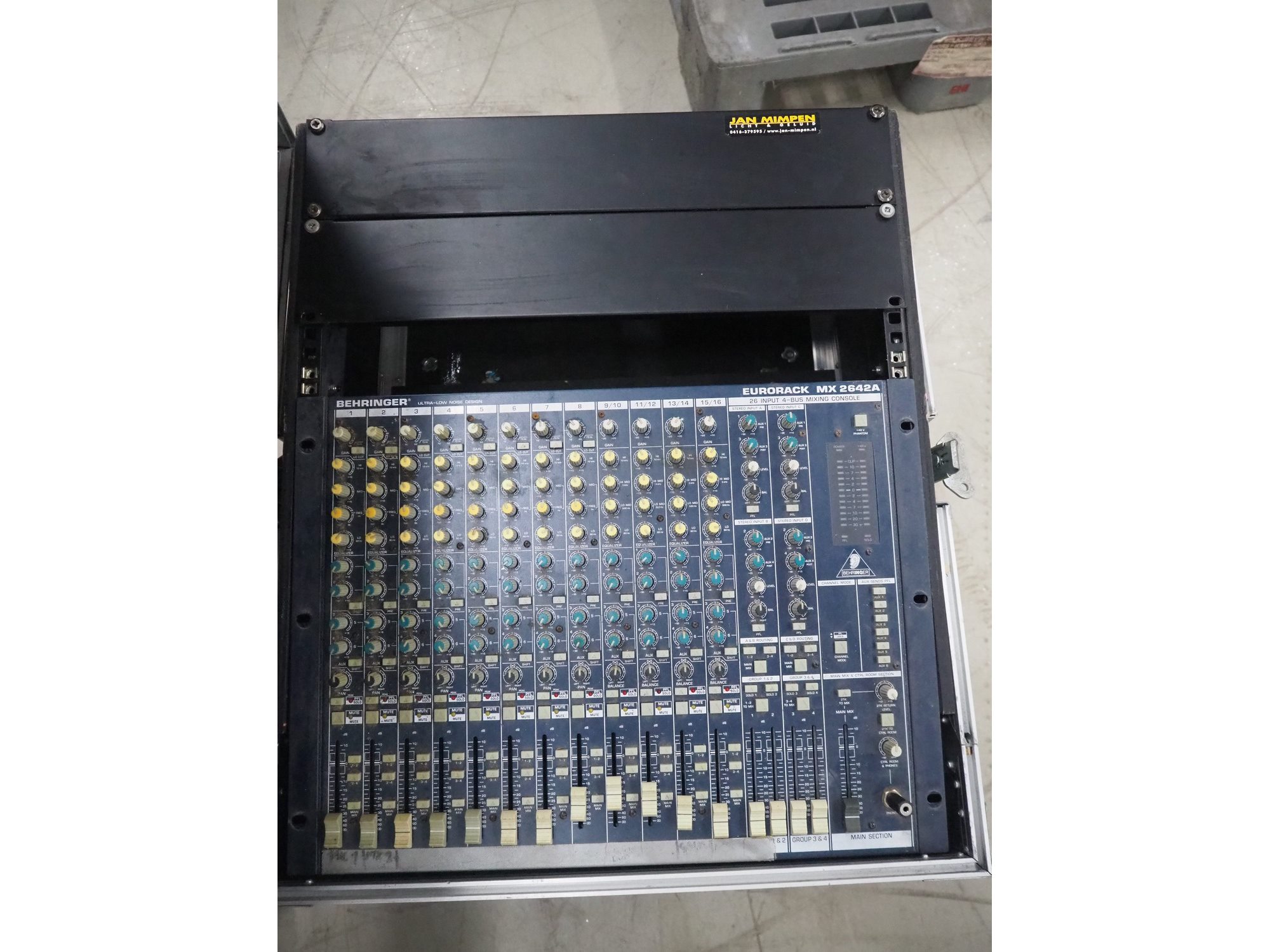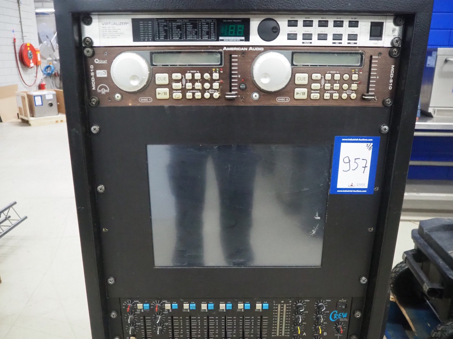 DJ set, consisting of: Quik Lok Systems sound installation, Behringer virtualizer, Behringer Eurorack MX 2642A, model DSP 1000, Antari smoke generator, model: Z-3000, Showtec DMX controller and various lights and flightcases.