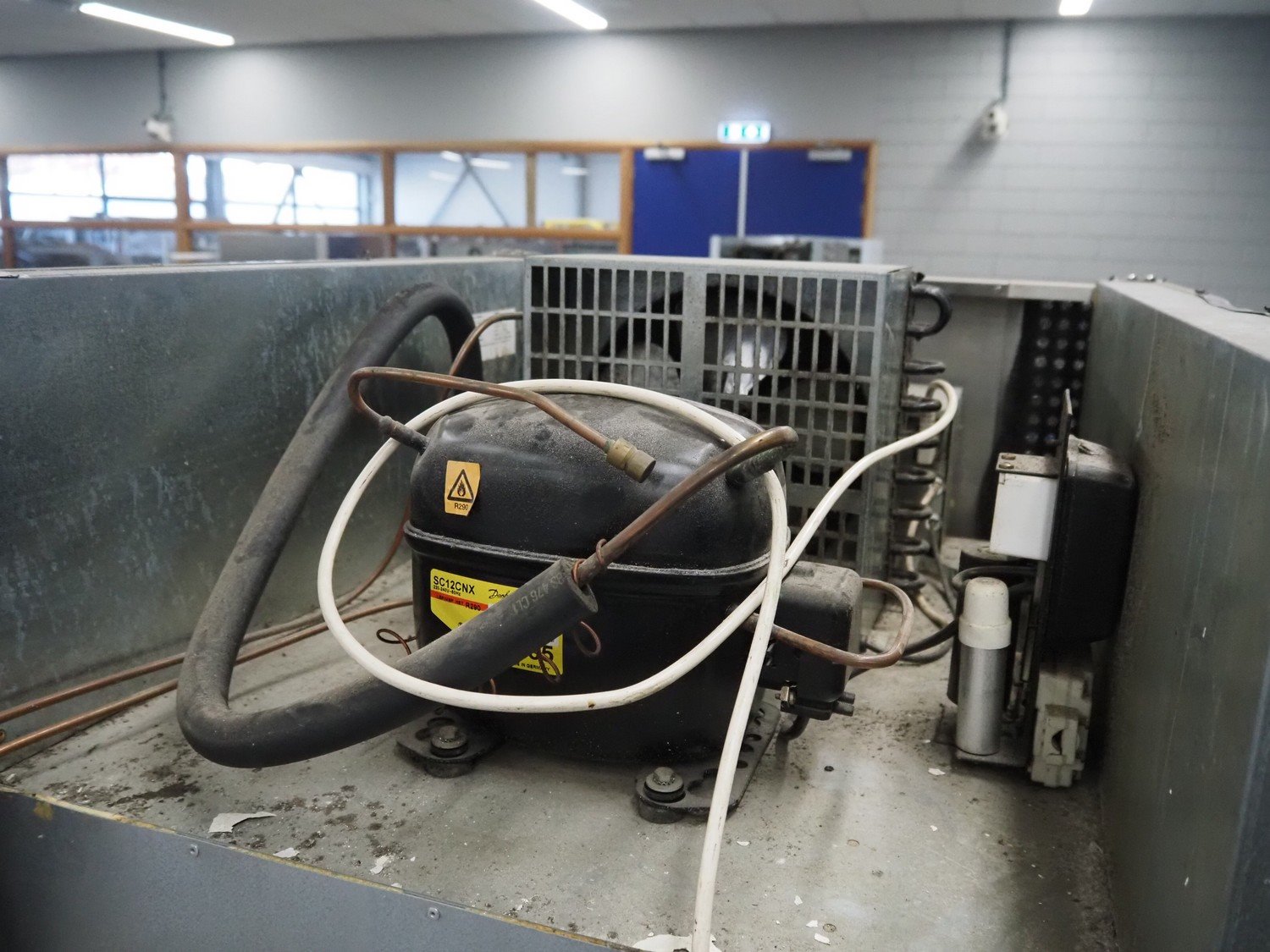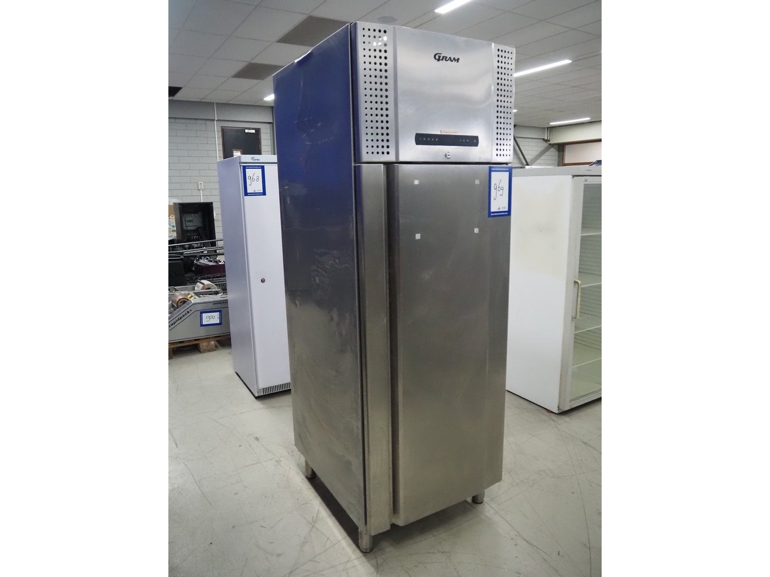 Gram refrigerator, type: PLUS F 600 CSG 4N, serial number: 233, 230 V, 50 Hz, 2.5 A, 510 W, refrigerant: R290 / 92 grm, dimensions: 900 mm x 700 mm x 2010 mm.