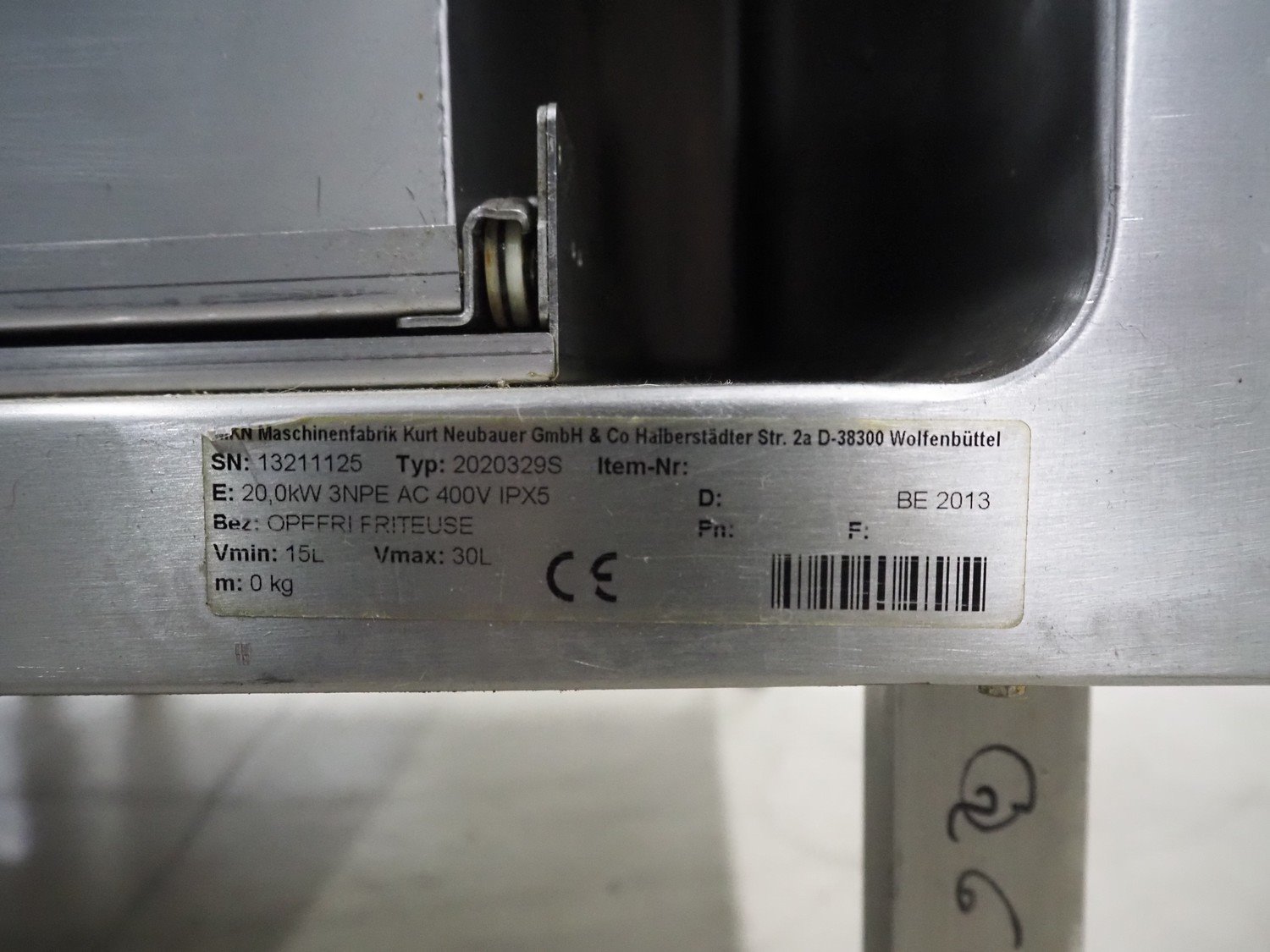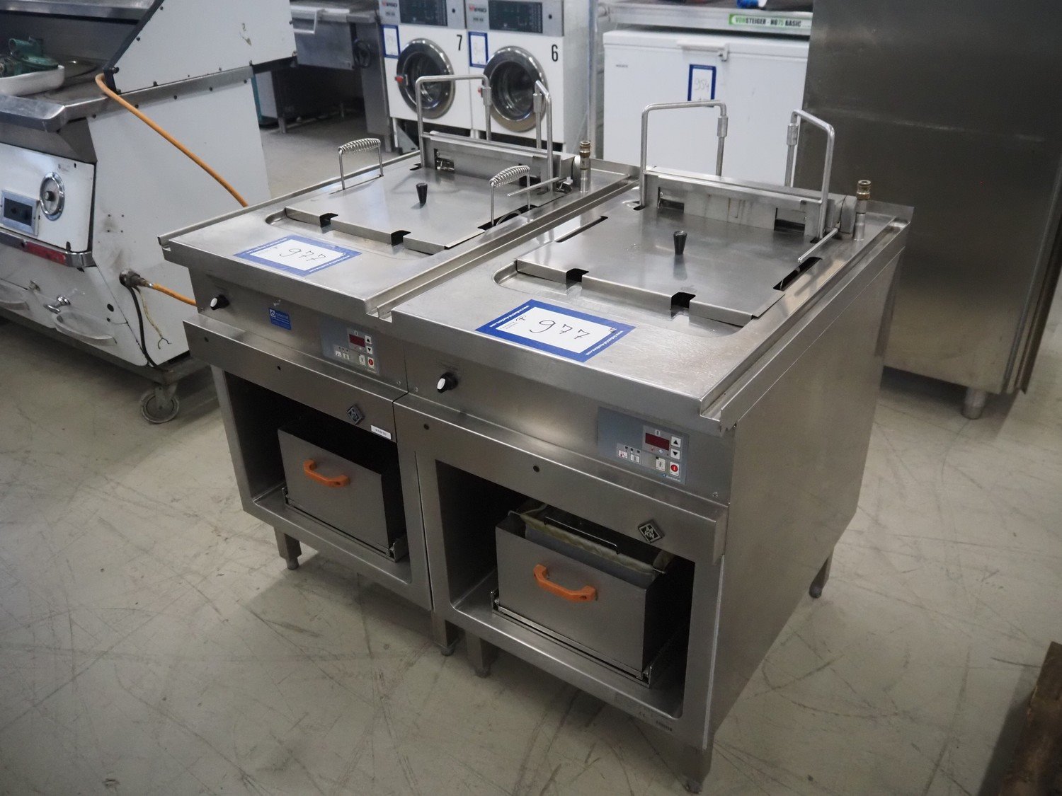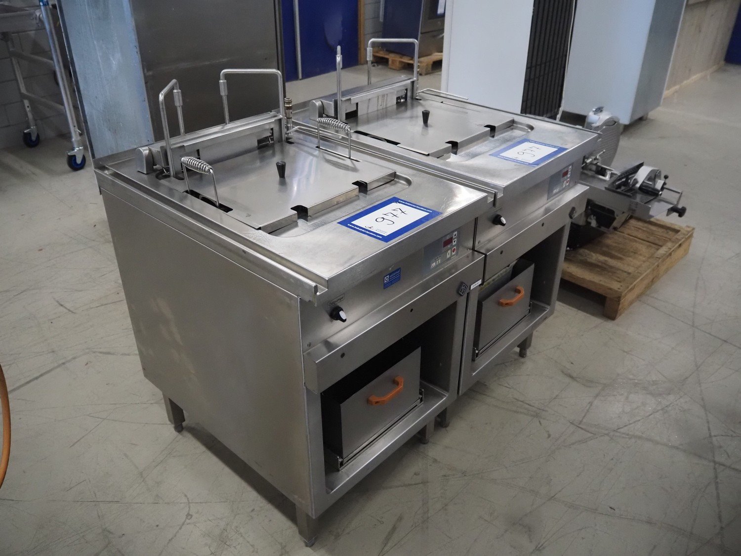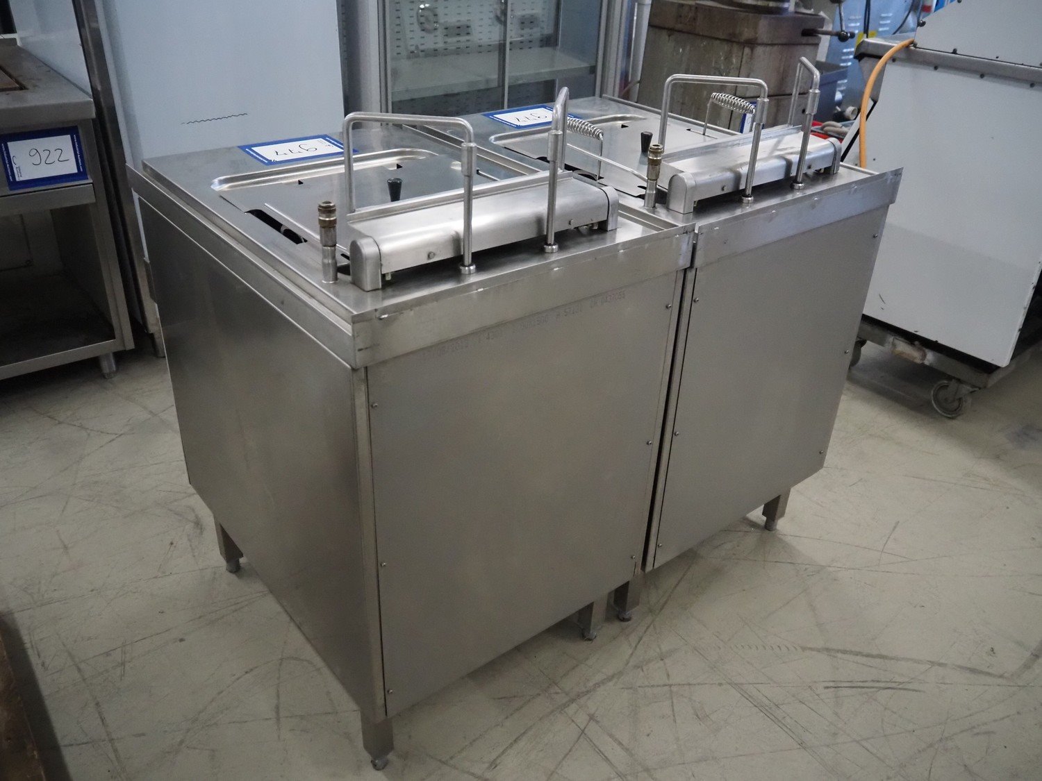 MKN double fryer, type: 2020329S, serial number: 13211125, year of construction: 2013, 400 V, 3 Ph, 20.0 kW, minimum volume: (2x) 15 liter, maximum volume: (2x) 30 liter, dimensions: (2x) 850 mm x 600 mm x 1150 mm.