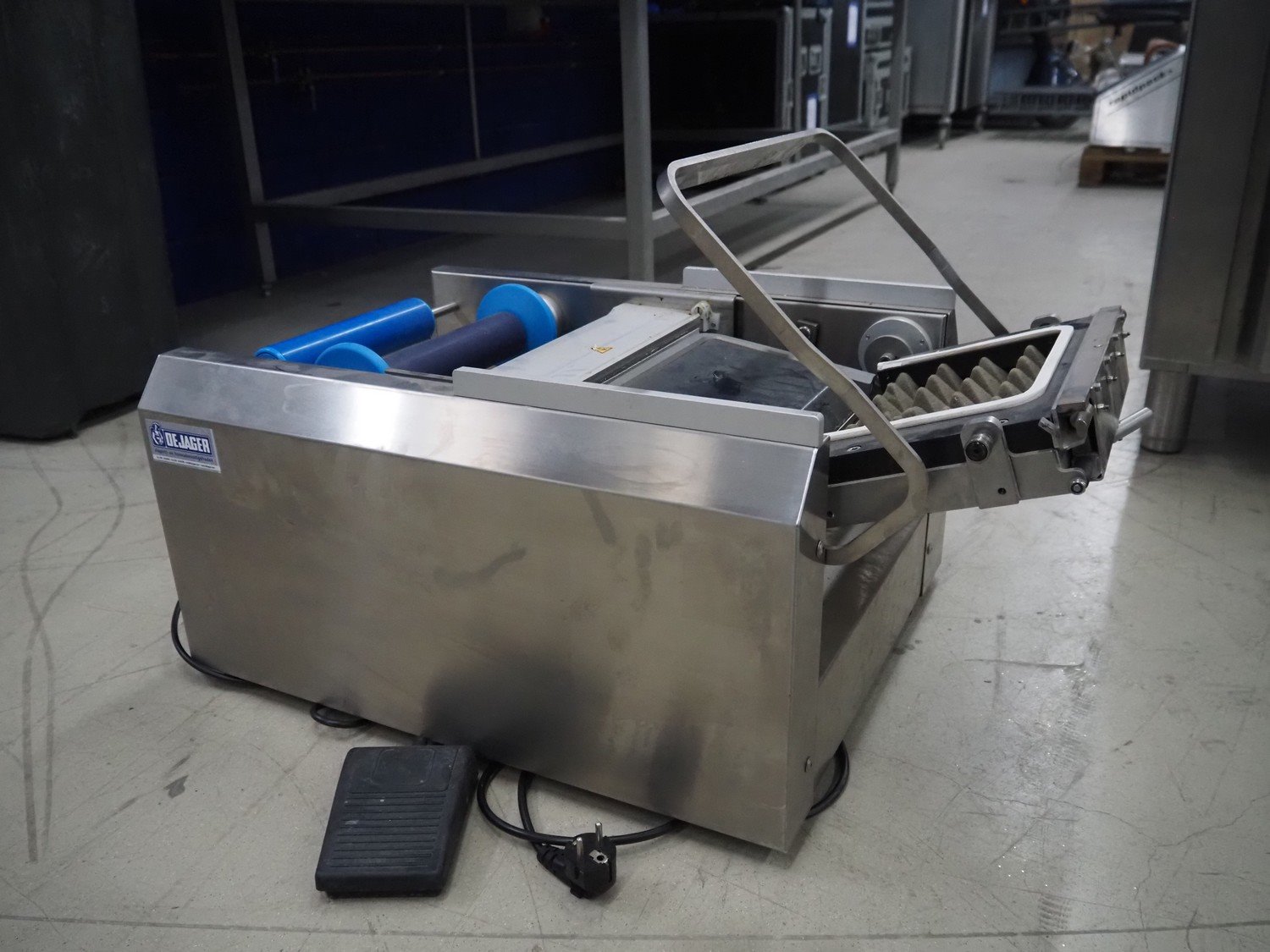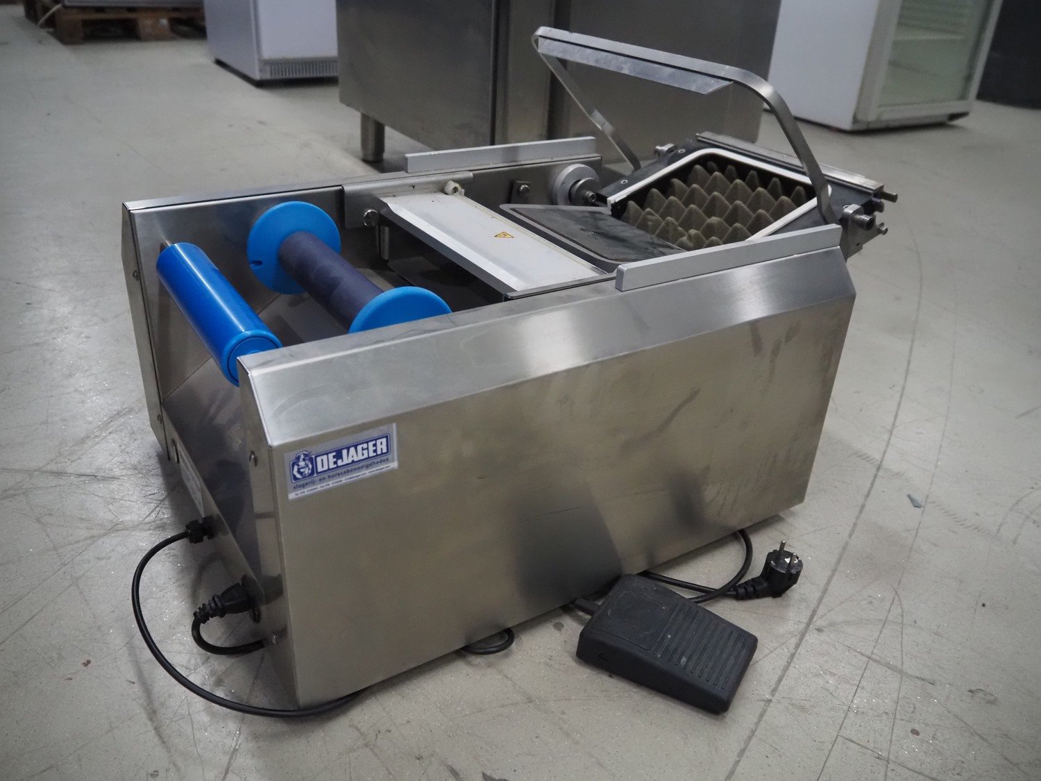 De Jager packaging machine, type: JADOPACK Master I, machine number: 20150326, year of construction: 2015, 220 V, 560 W, film width: 230 mm, seal: 220 mm x 170 mm, total dimensions: 730 mm x 520 mm x 450 mm.
