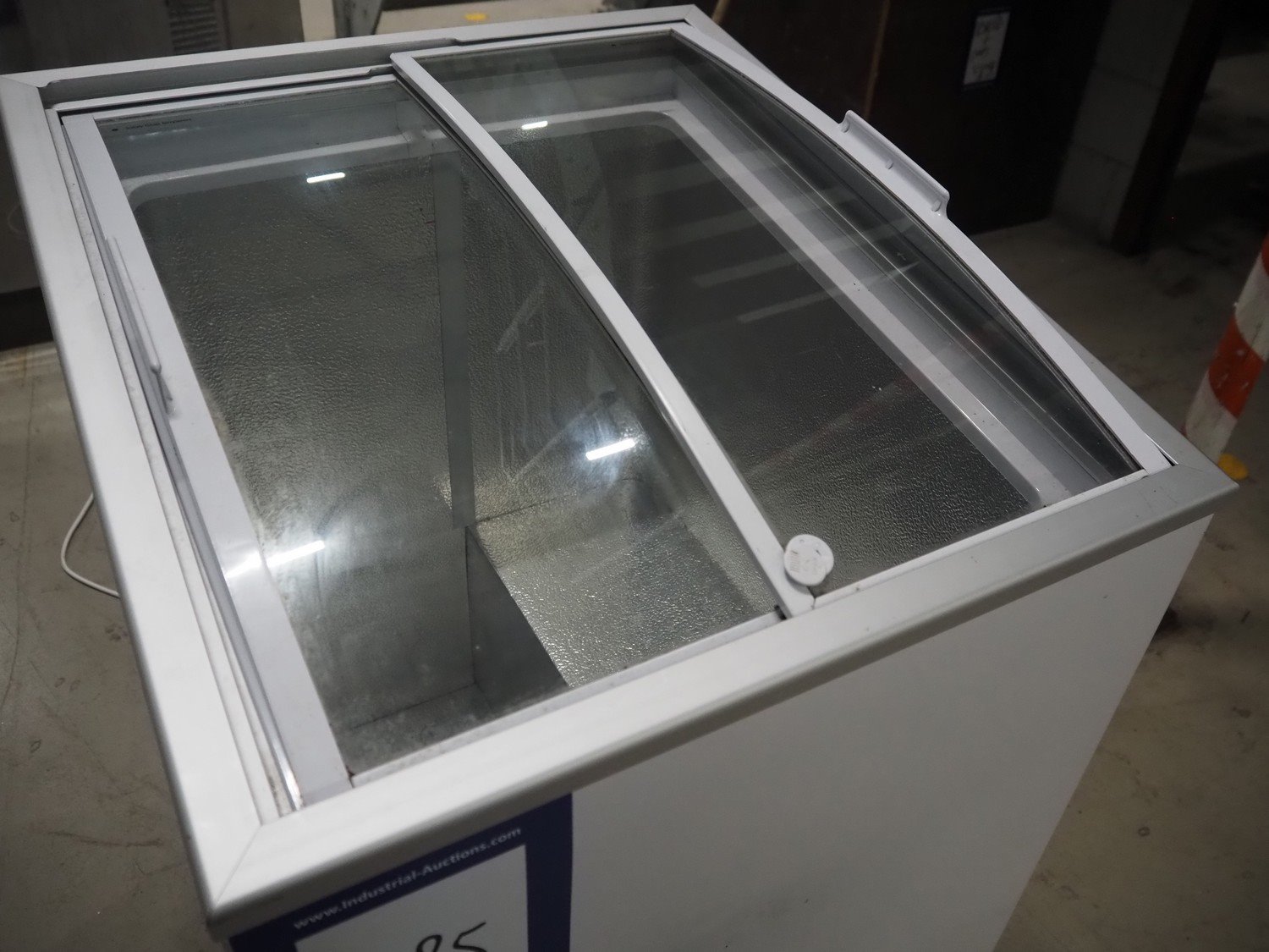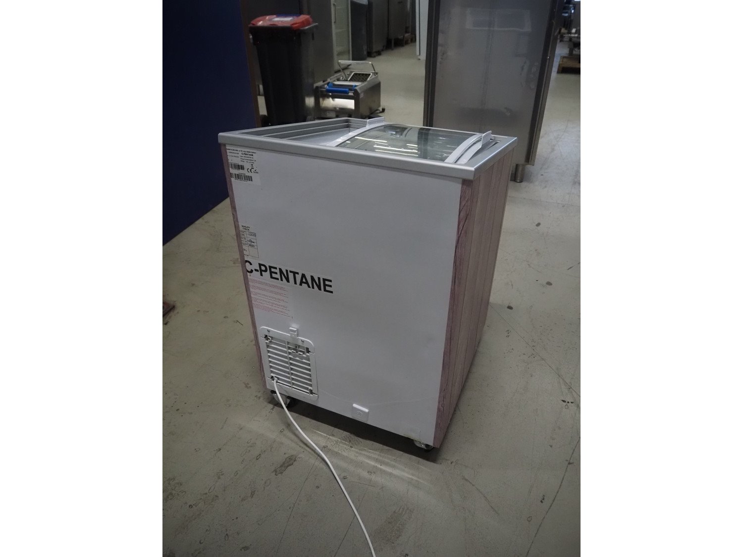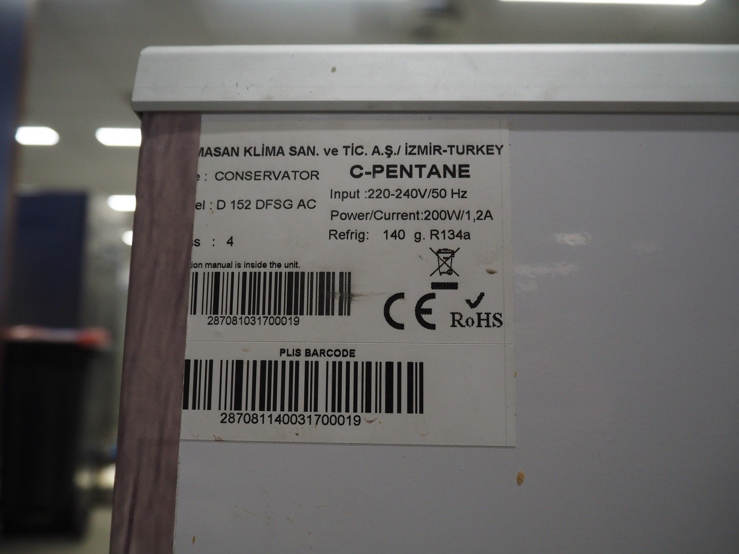 Masan Klima San freezer, model: D 152 DFSG AC, 220-240 V, 50 Hz, 1.2 A, 200 W, refrigerant: R134a / 140 gram, dimensions: 640 mm x 590 mm x 900 mm.