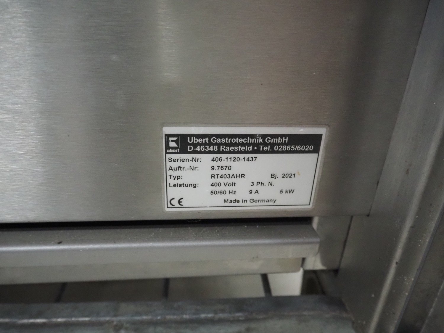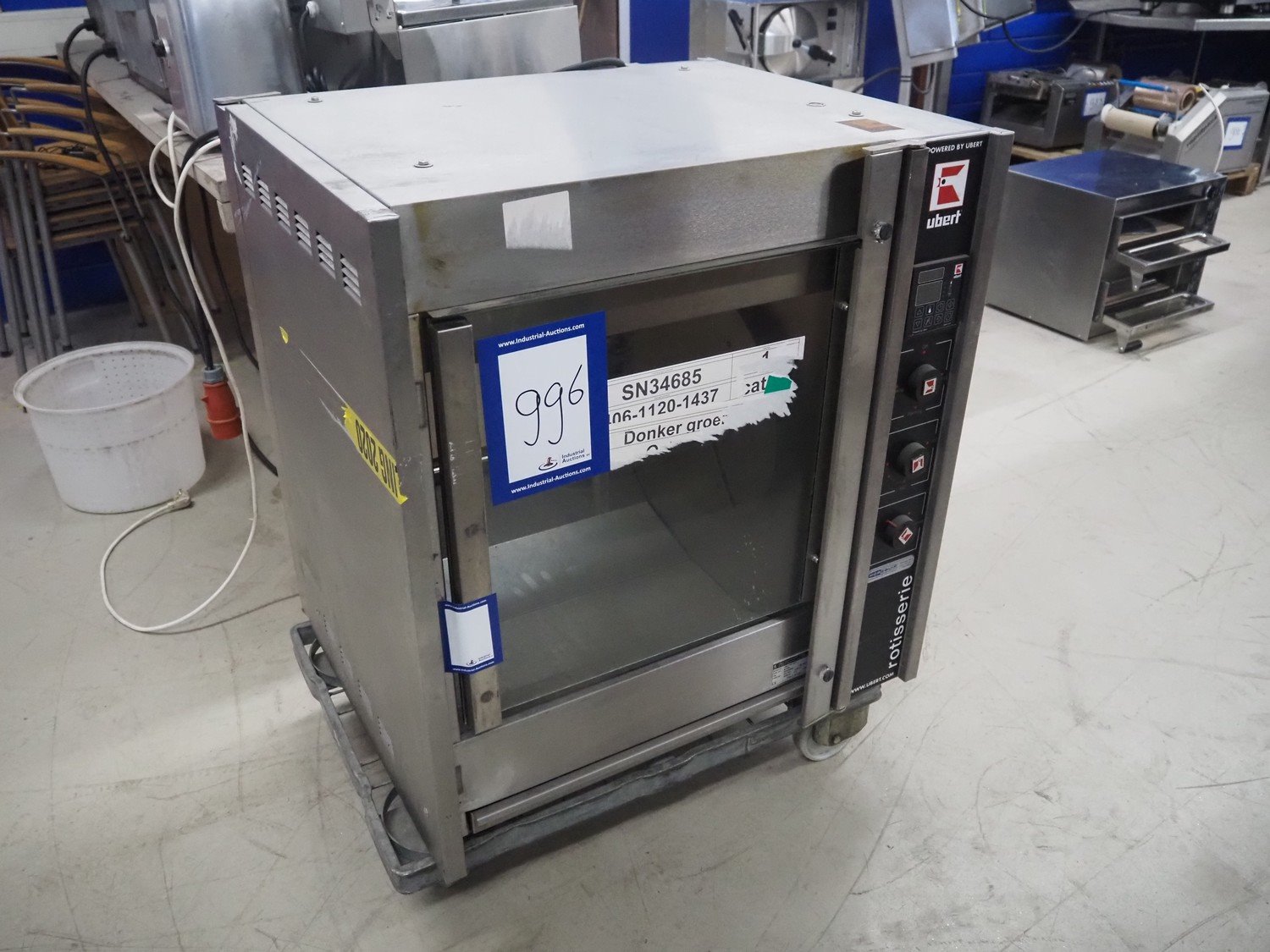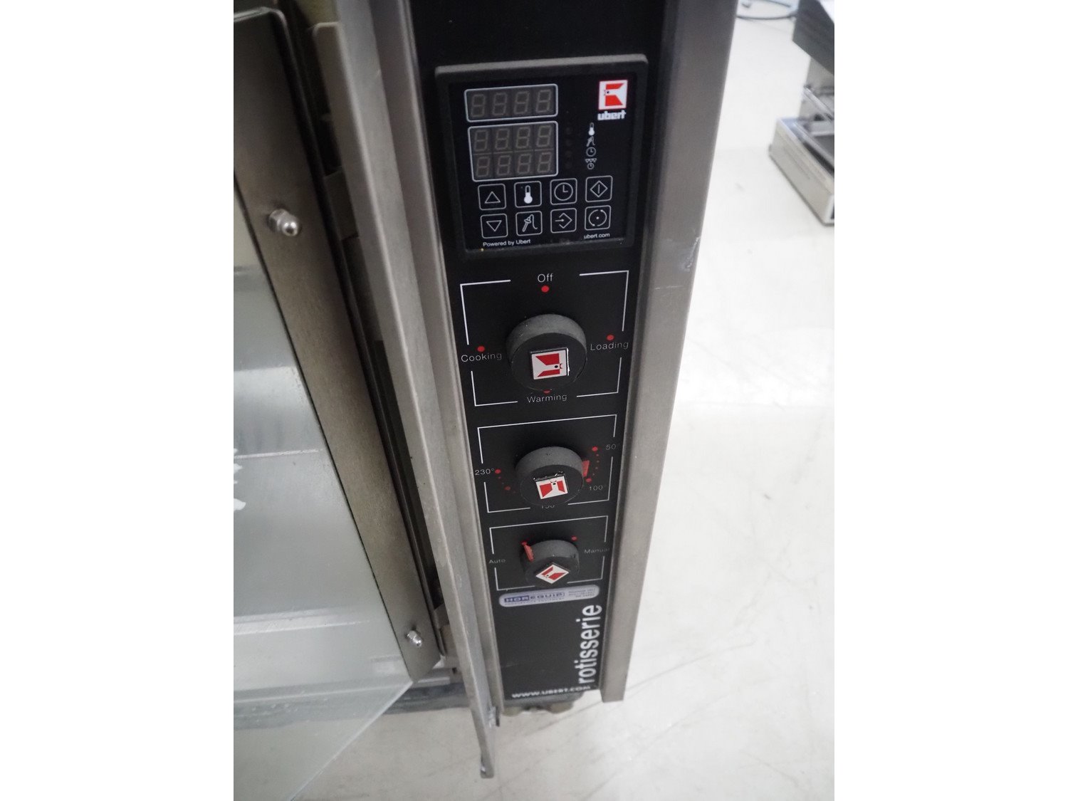 Ubert Gastrotechnik GmbH rotissery grill, type: RT403AHR, serial number: 406-1120-1437, year of construction: 2021, 400 V, 3 Ph, 50/60 Hz, 9 A, 5 kW, dimensions: 800 mm x 730 mm x 850 mm. Without rollie.