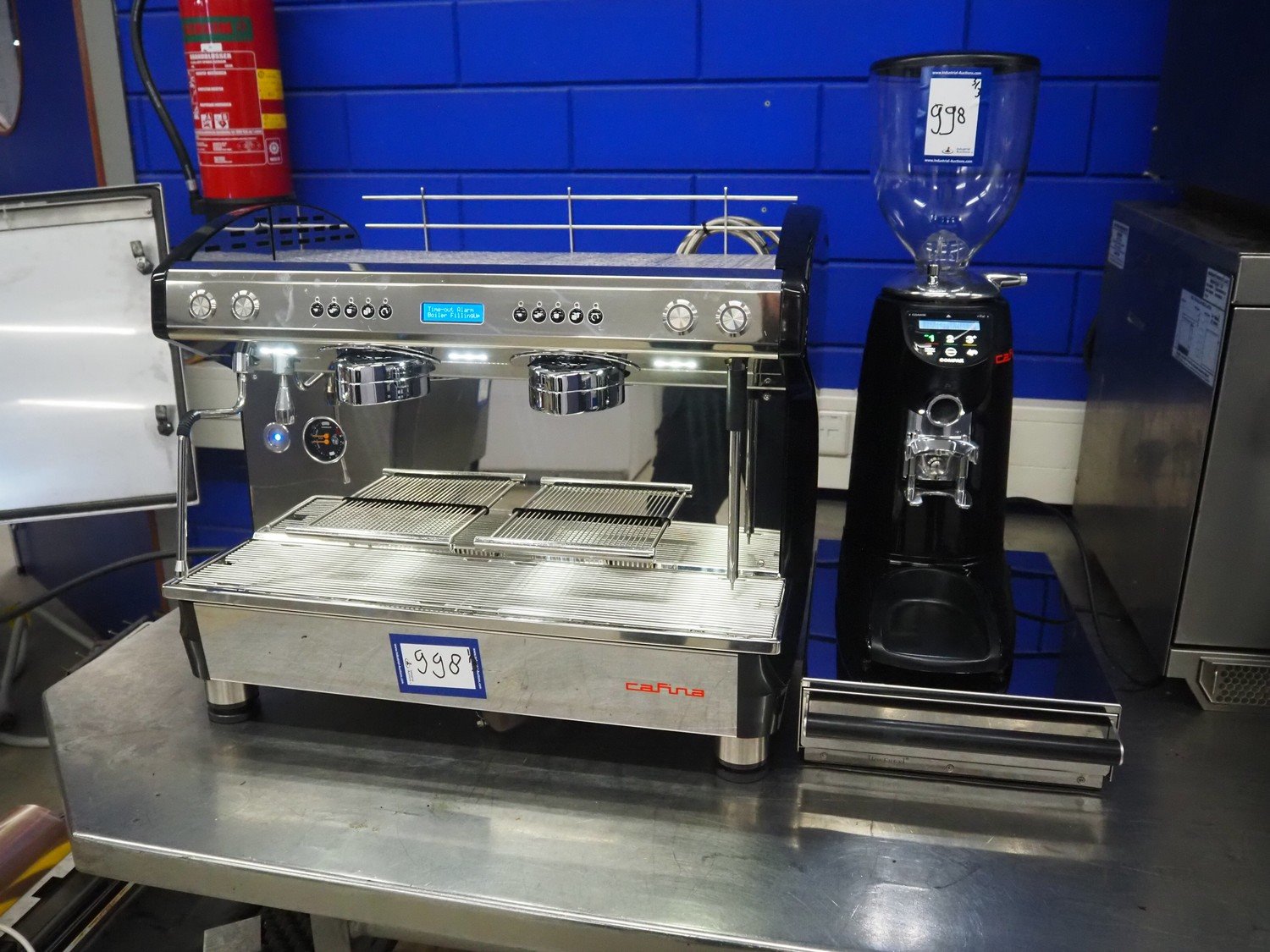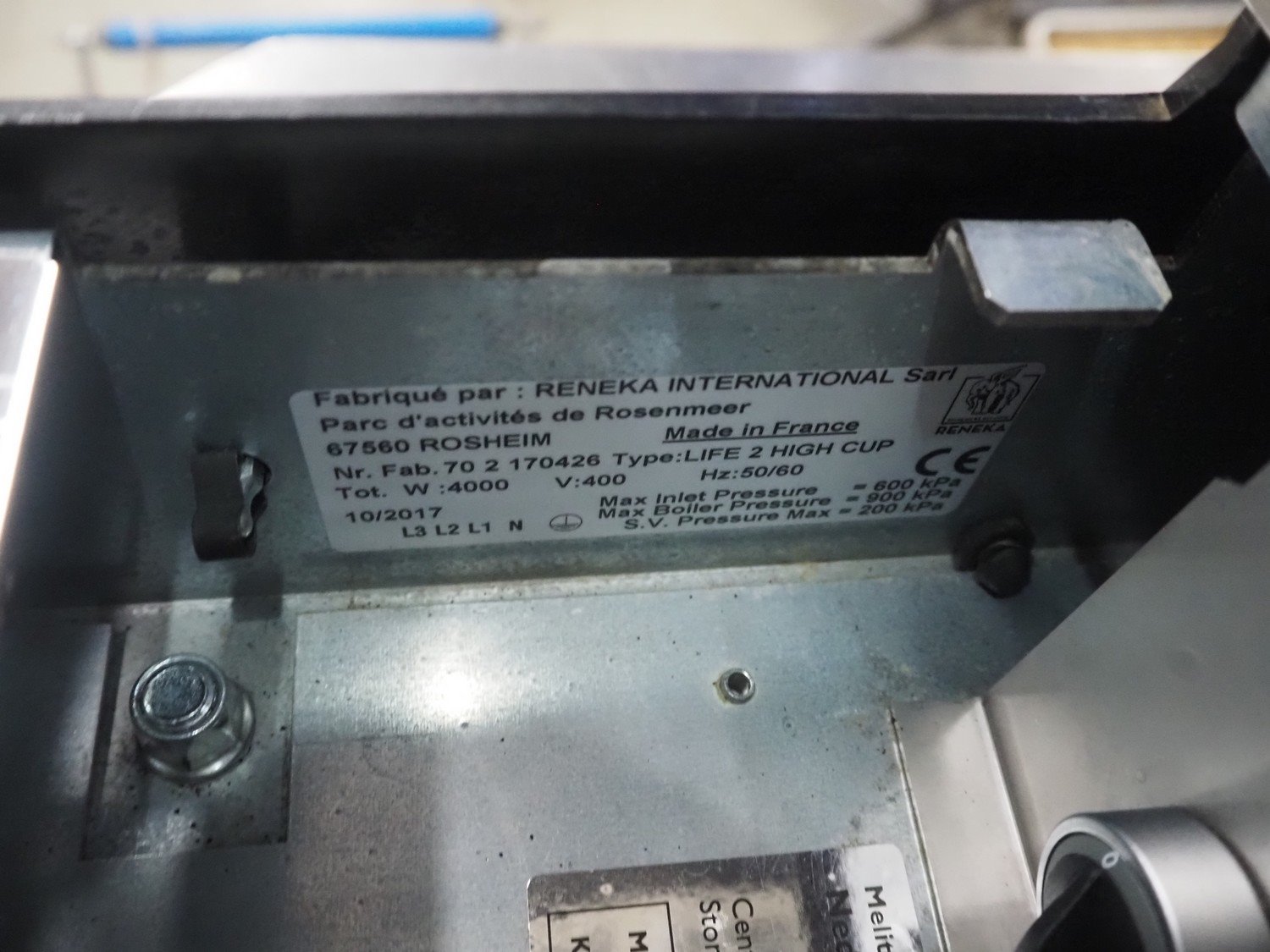 Reneka International Sarl coffee machine with Compak bean grinder and drawer for used coffee grounds, type coffee machine: Life 2 High Cup, fabrication number: 70 2 170426, year of construction: 10/2017, 400 V, 50/60 Hz, 4000 W, dimensions coffee machine: 710 mm x 500 mm x 580 mm, type bean grinder: E8 SCHWARZ, number: 636563, year of construction: 01/2018, 230 V, 50 Hz, 350 W, dimensions bean grinder: 370 mm x 200 mm x 640 mm.