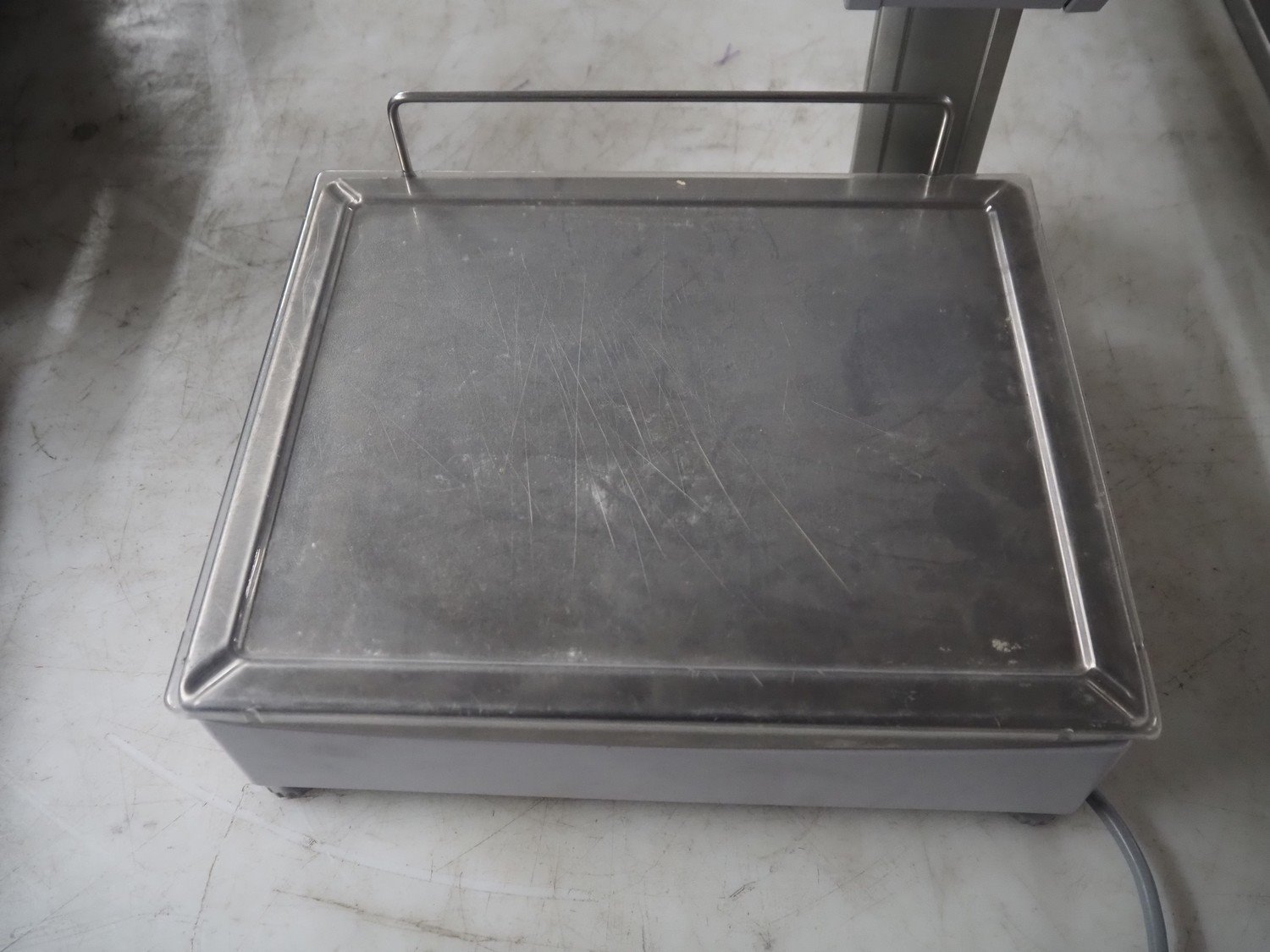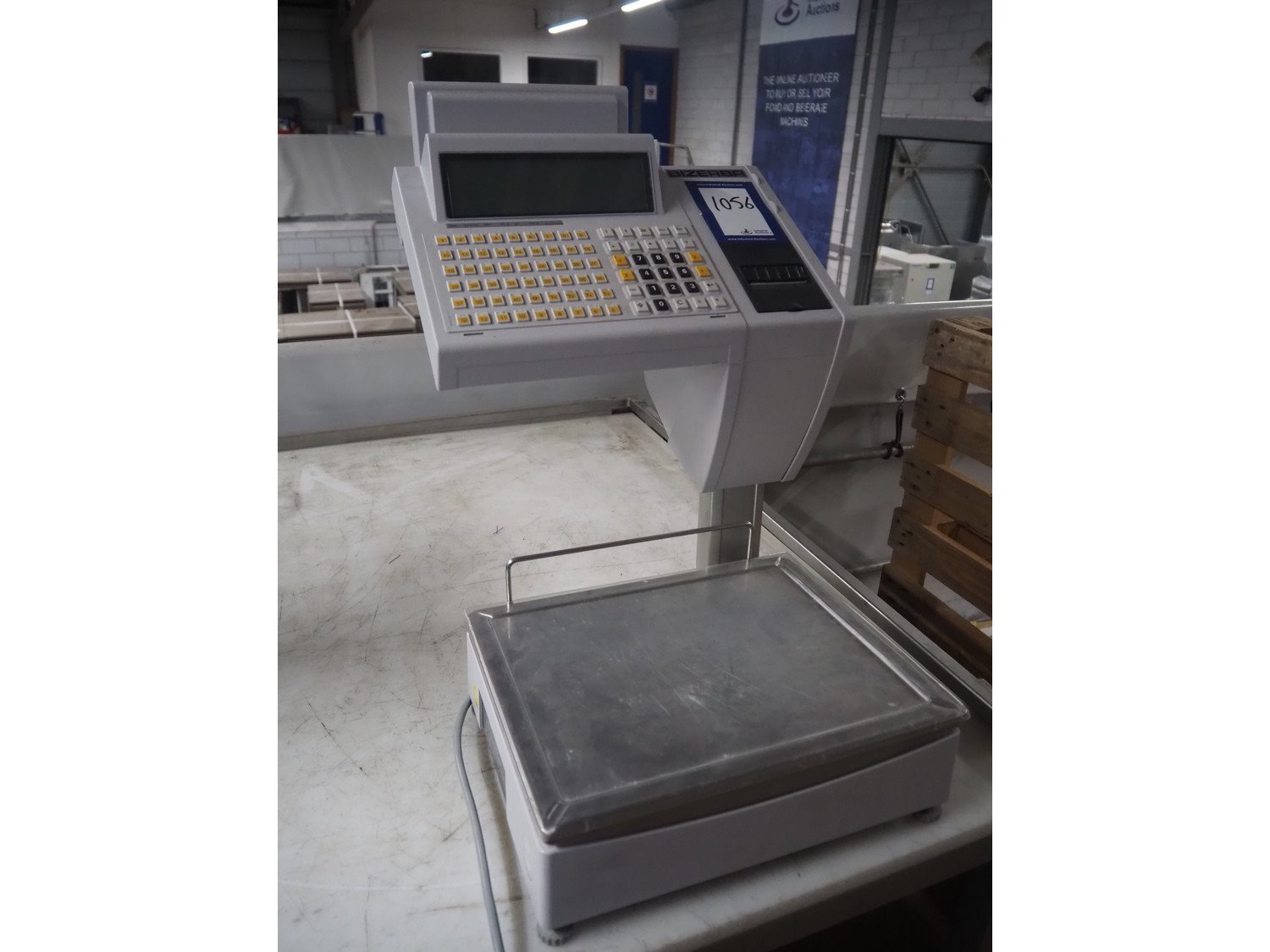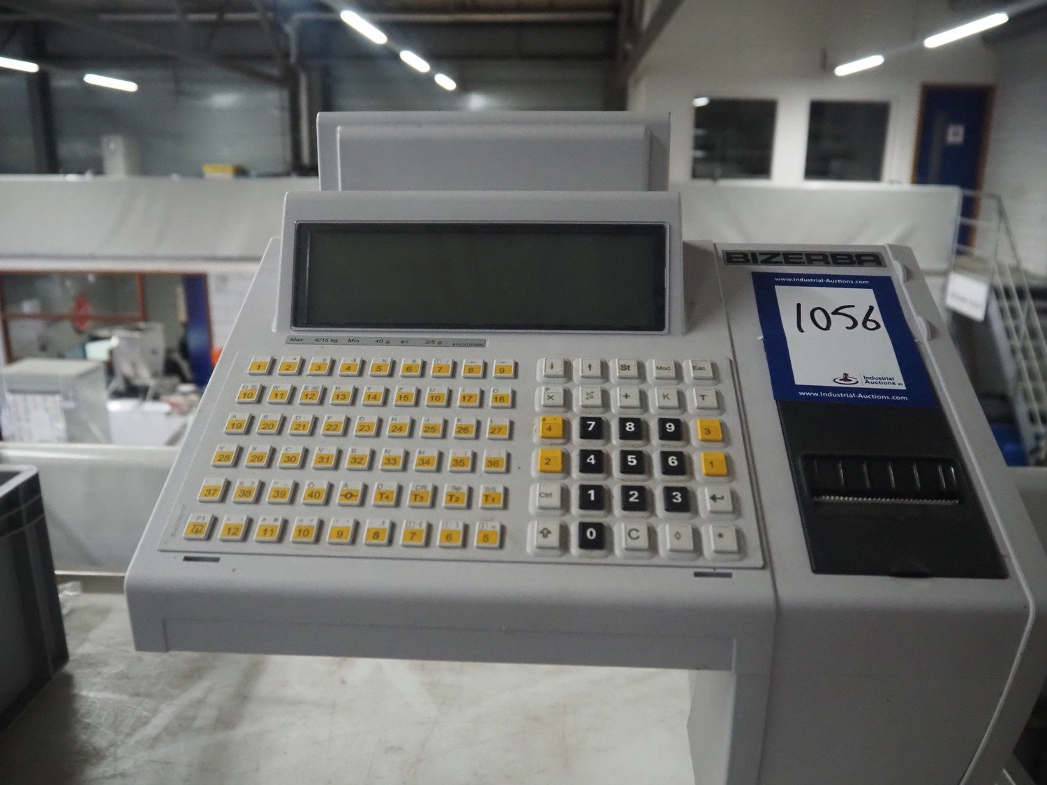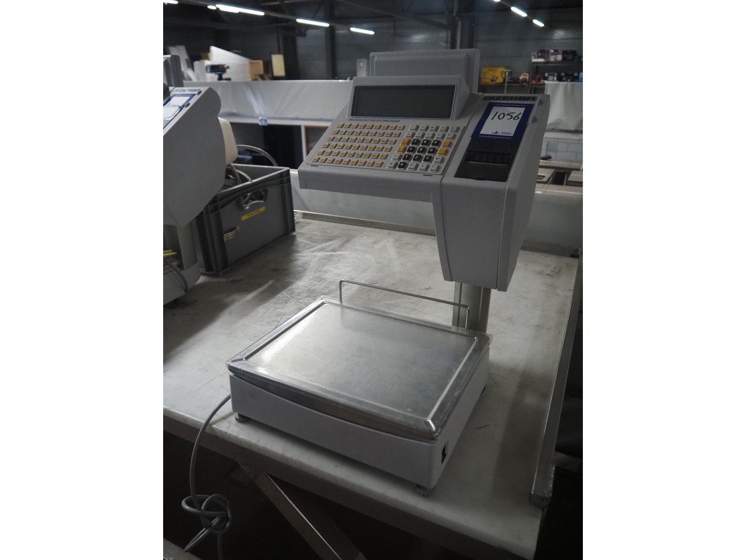 Bizerba weighing scale with label printer, type: SC II 800, serial number: 11854190, 120/240 V, 50/60 Hz, 0.35-0.25 A, minimum weight: 40 gram, maximum weight: 6/15 Kg, e= 2/5 gram, scale dimensions: 350 mm x 270 mm, total dimensions: 480 mm x 350 mm x 560 mm.