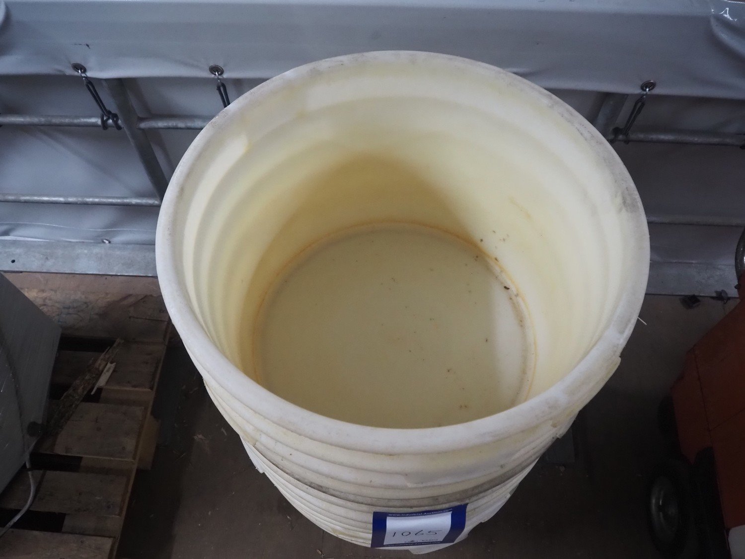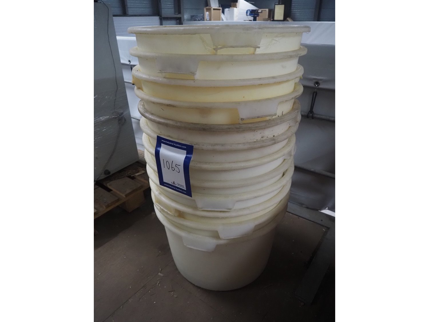 12 plastic tubs, inside dimensions: 600 mm x 600 mm x 380 mm, total dimensions: 640 mm x 640 mm x 1100 mm.