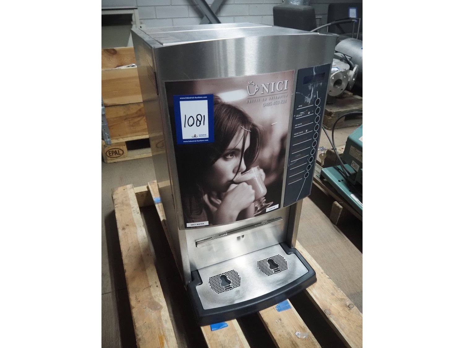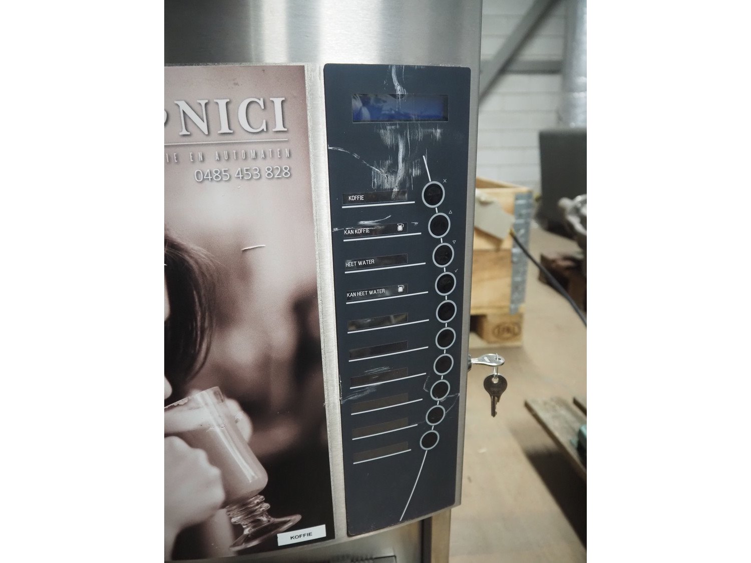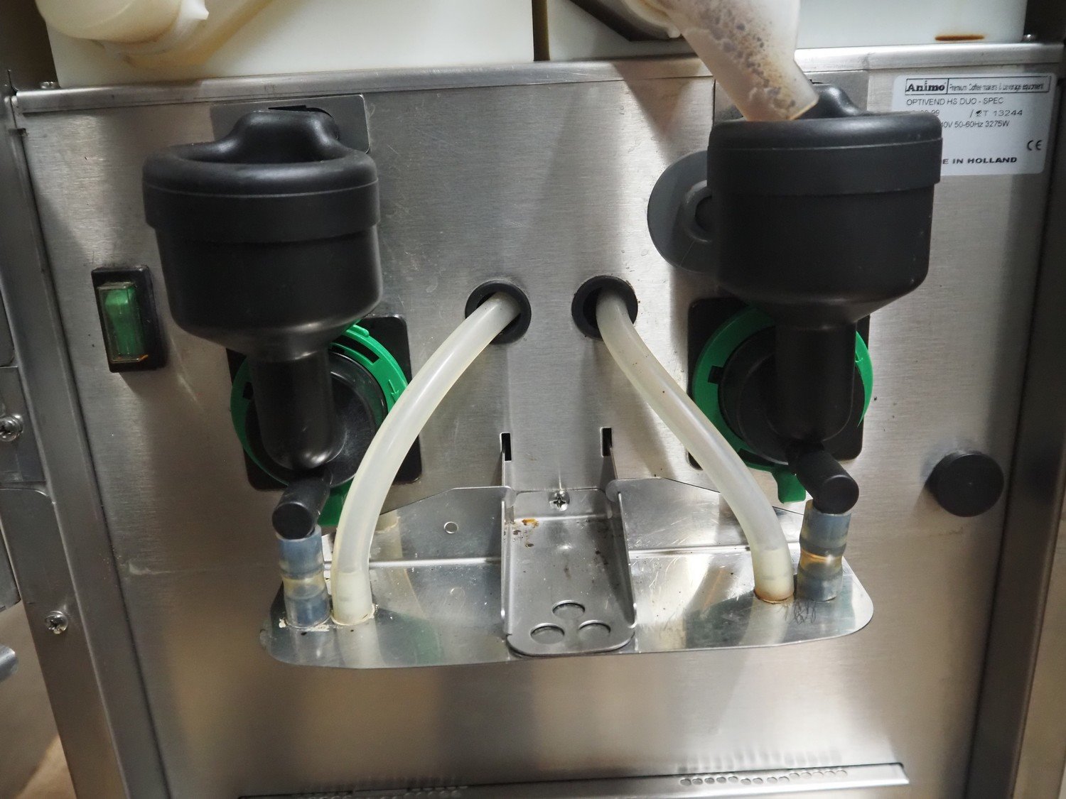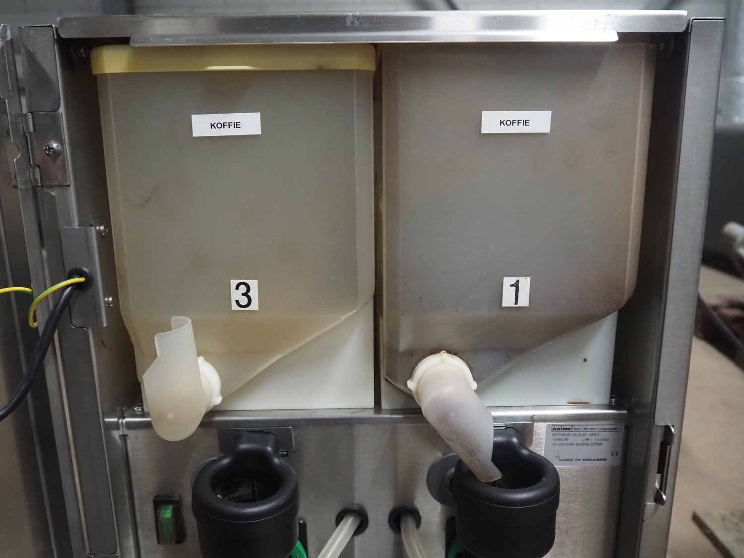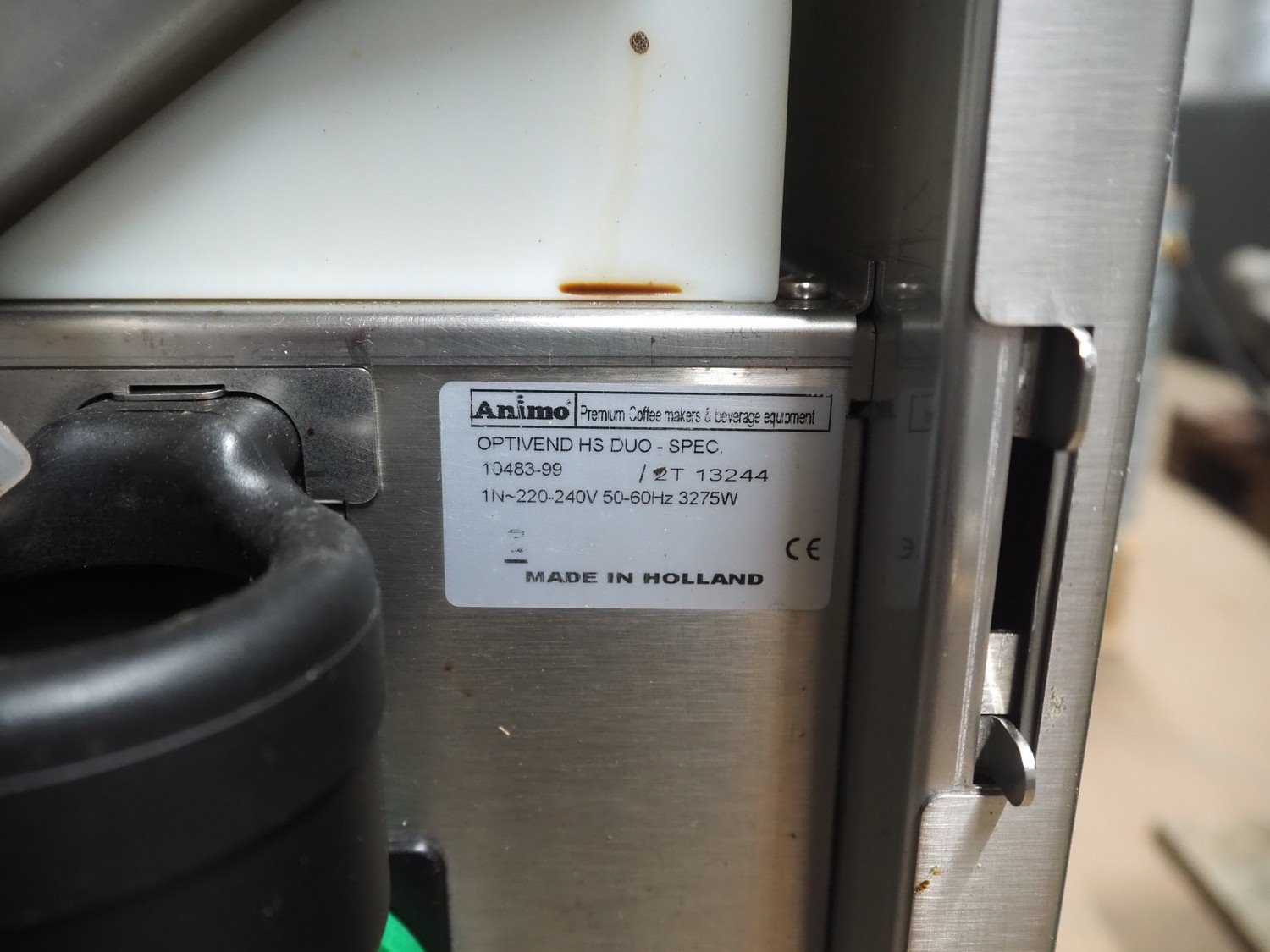 Animo coffee machine, type: OPTIVEND HS DUO-SPEC, number: 10483-99, 220-240 V, 1 Ph, 50-60 Hz, 3275 W, dimensions: 520 mm x 380 mm x 7030 mm.