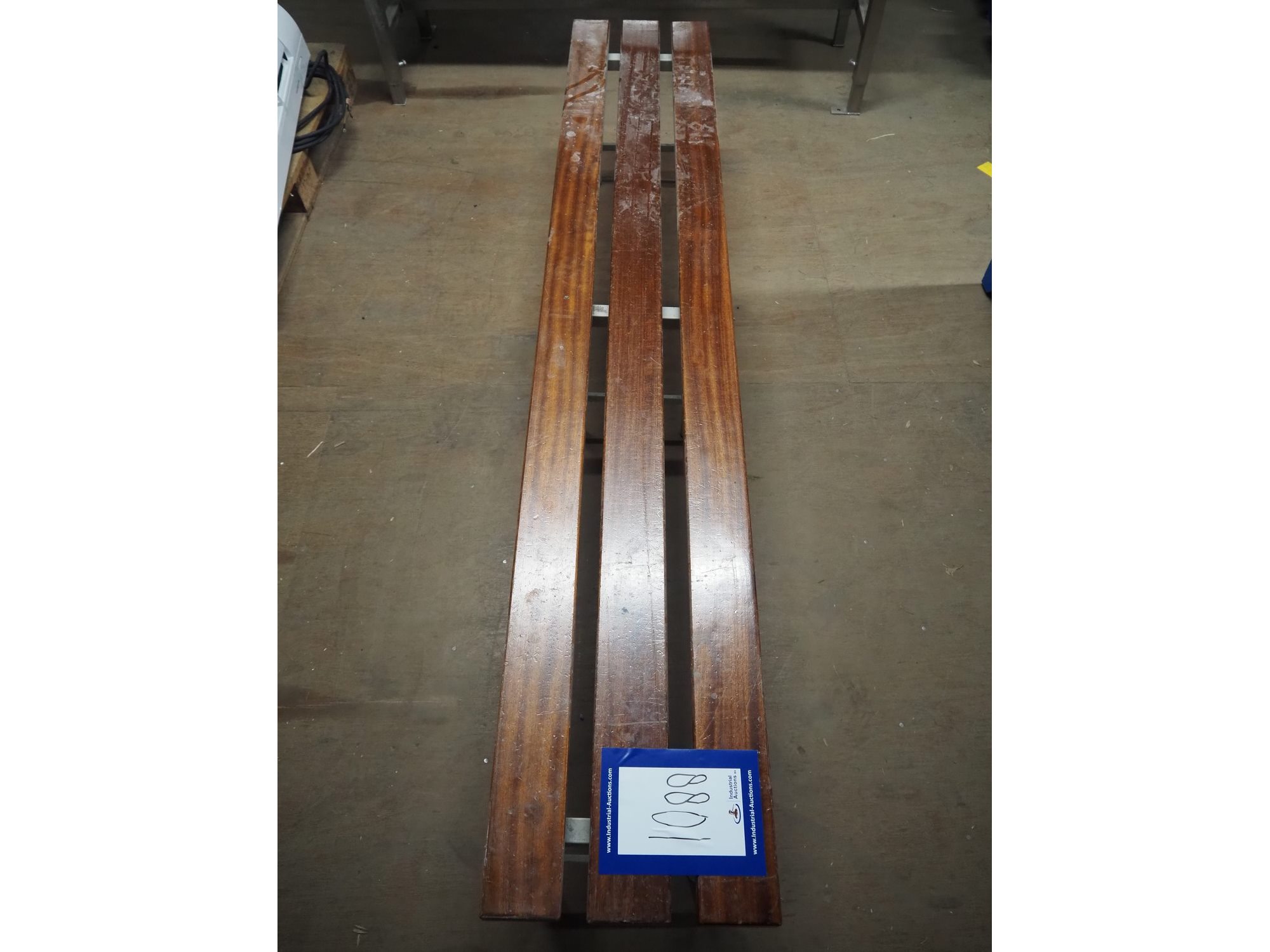 Wooden bench with steel frame, dimensions: 2000 mm x 350 mm x 420 mm.