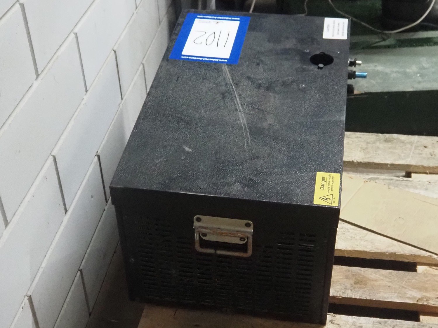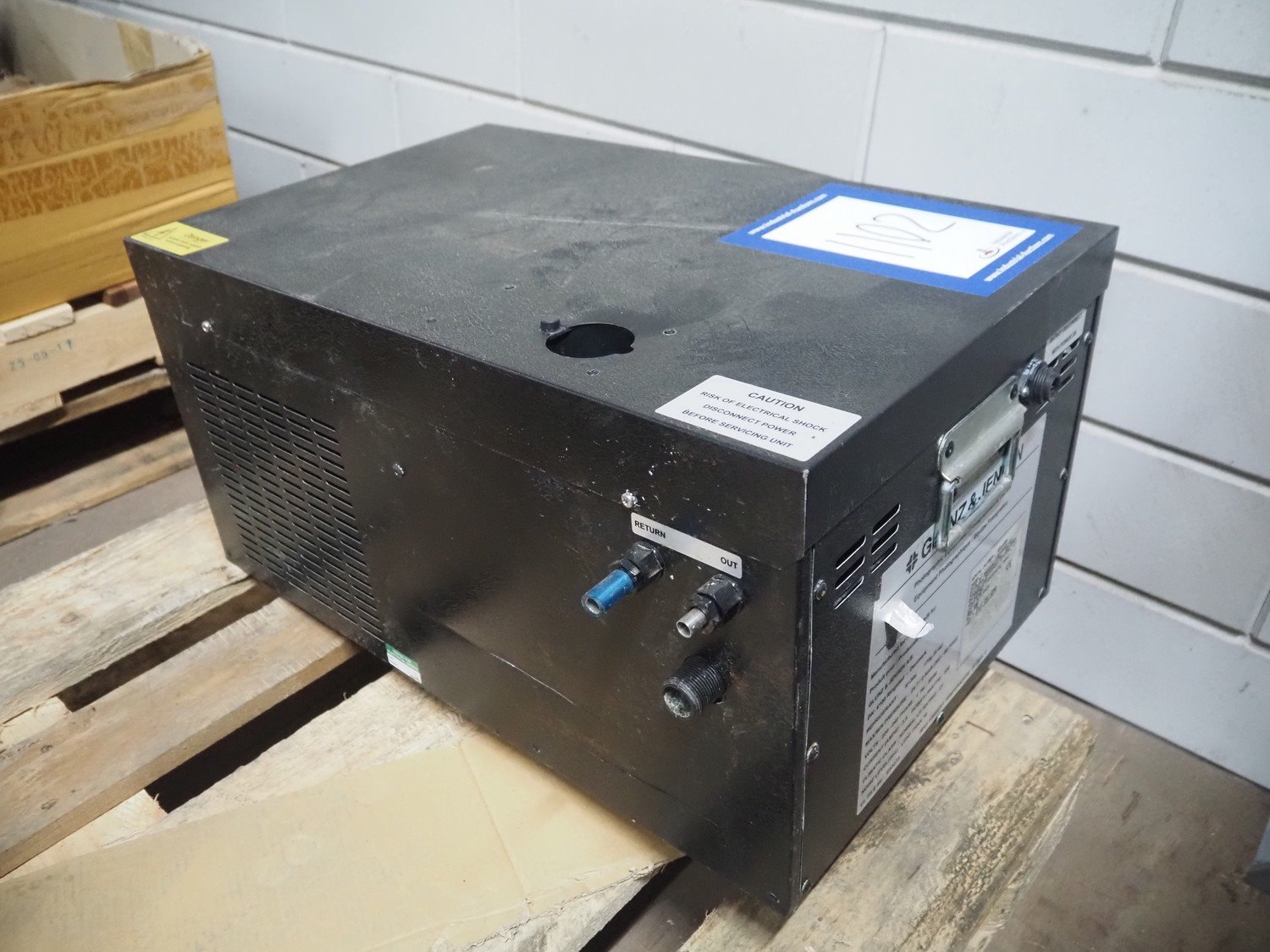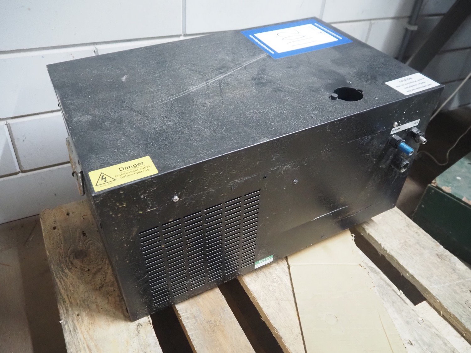 Glunz & Jensen chiller, model: 07-0301-01, serial number: E01655, year of construction: 07/2004, 220-240 V, 1 Ph, 50/60 Hz, 3.5 A, 600 W, refrigerant: R134A, weight: 170 g, dimensions: 620 mm x 380 mm x 350 mm.