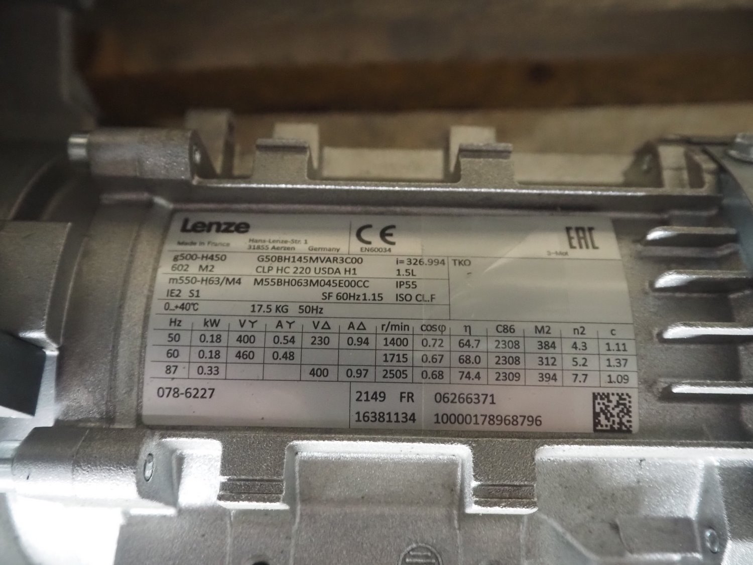 Lenze motor, dimensions: 480 mm x 200 mm x 220 mm.