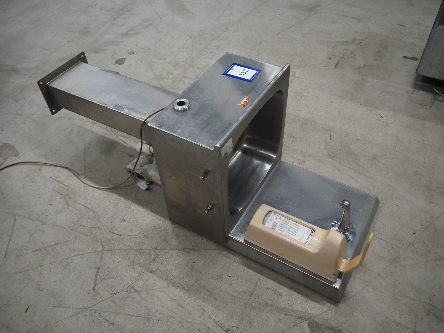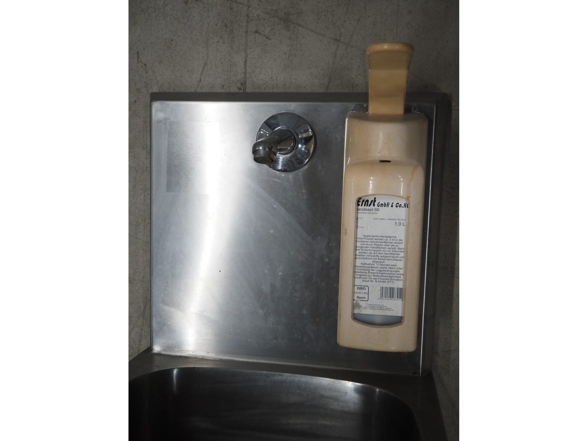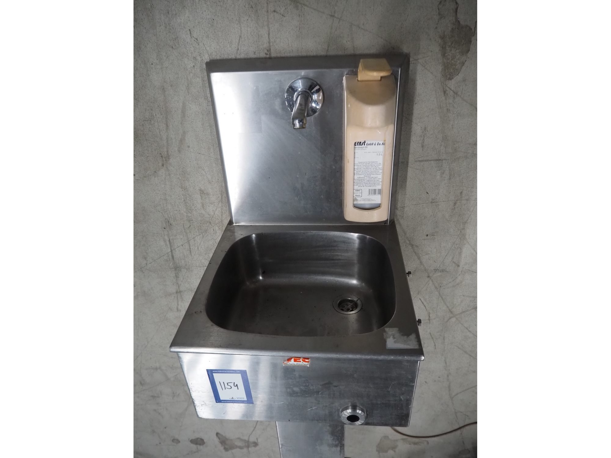 Itec s/s sink, sensor operated, with soap dispenser and 1 paper dispenser, dimensions: 600 mm x 470 mm x 1380 mm.