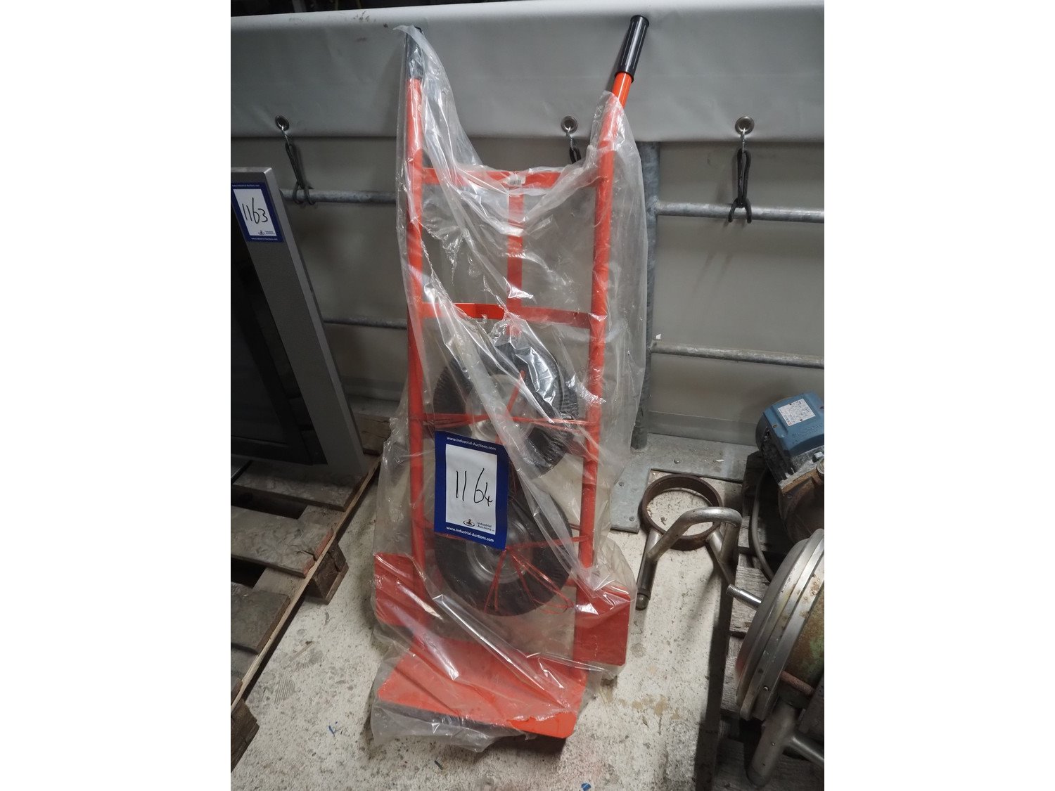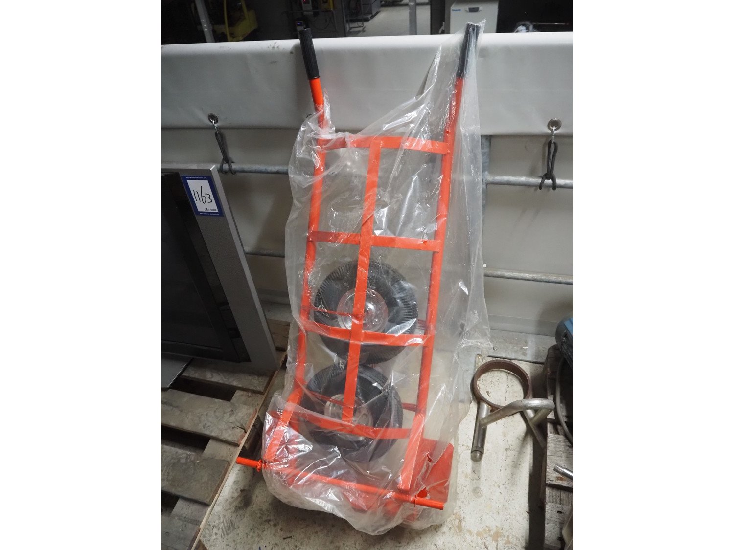 Steel hand truck, dimensions: 500 mm x 350 mm x 1000 mm.
